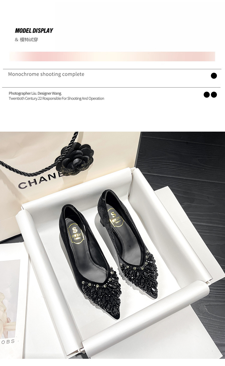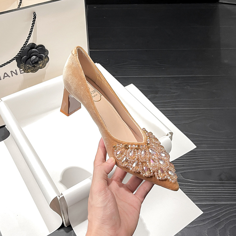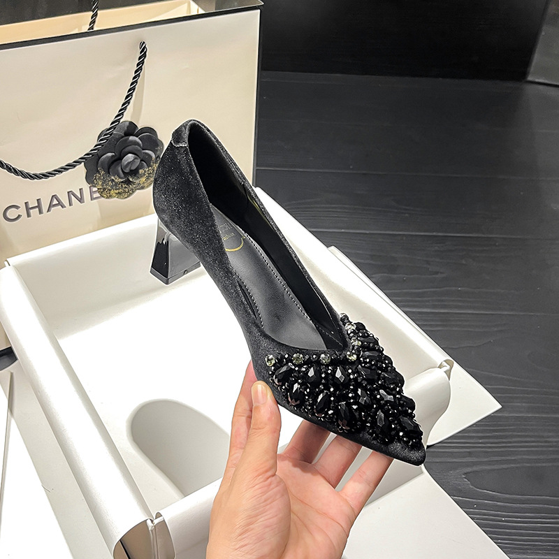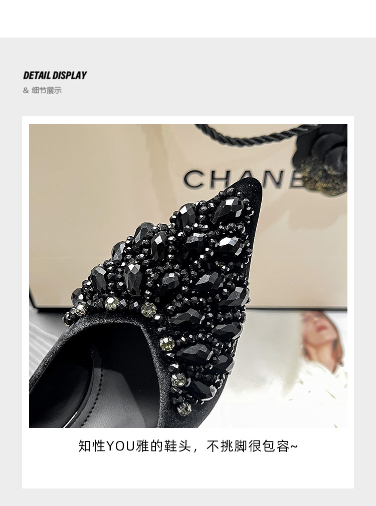 688-1 가을 2024 새로운 수제 싱글 신발 여성용 틈새 뾰족한 라인스톤 프랑스 하이힐 파인 힐 라이트 럭셔리 여성 신발스토어 가기