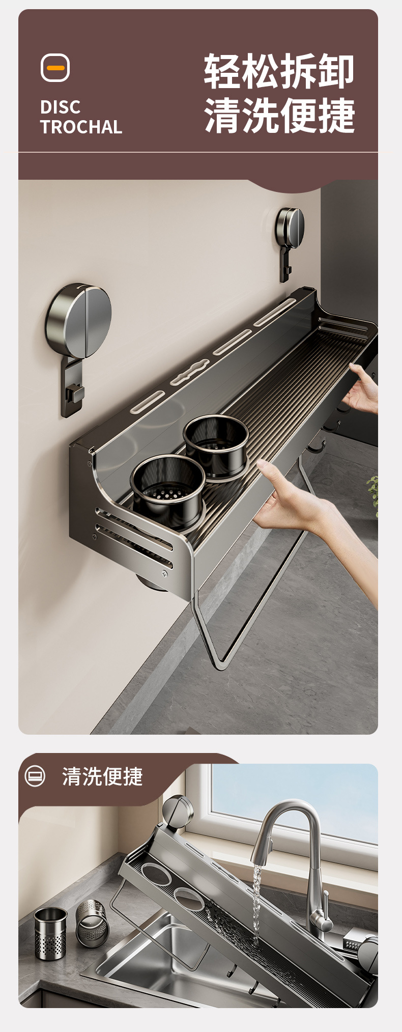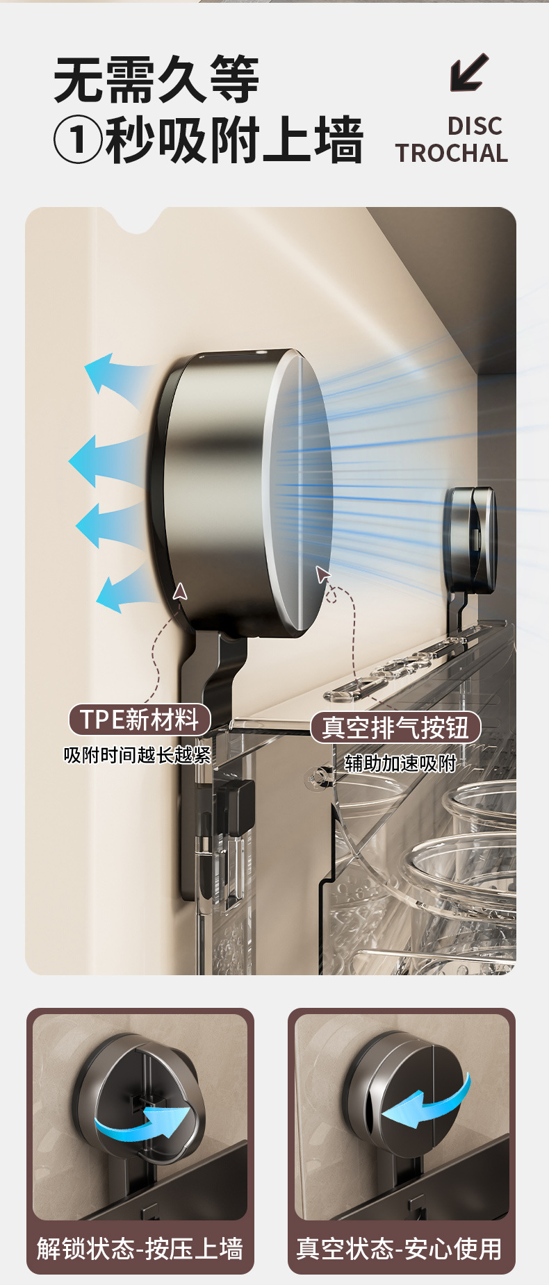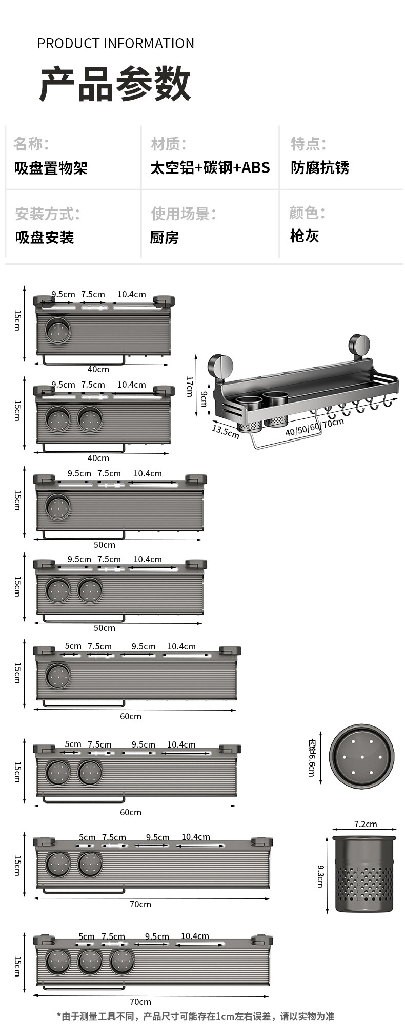 • 흡입 컵-60cm 칼 홀더 랙 싱글 컵