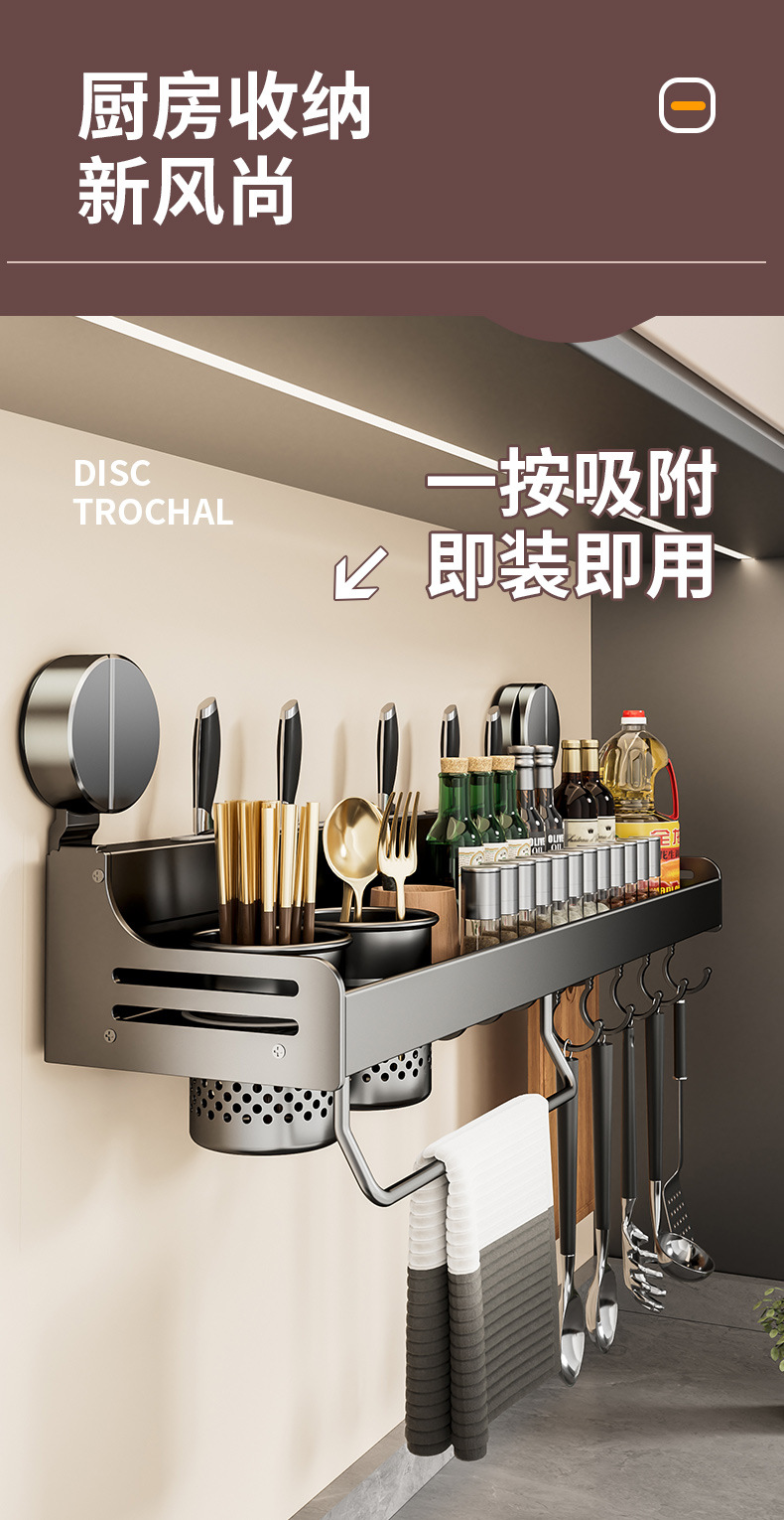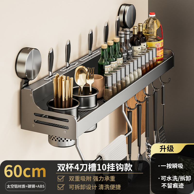 석션 컵 주방 보관 랙 펀치없는 다기능 양념 랙 가정용 벽 장착 조미료 보관 칼 랙