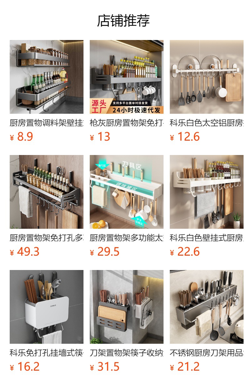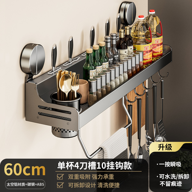 석션 컵 주방 보관 랙 펀치없는 다기능 양념 랙 가정용 벽 장착 조미료 보관 칼 랙스토어 가기