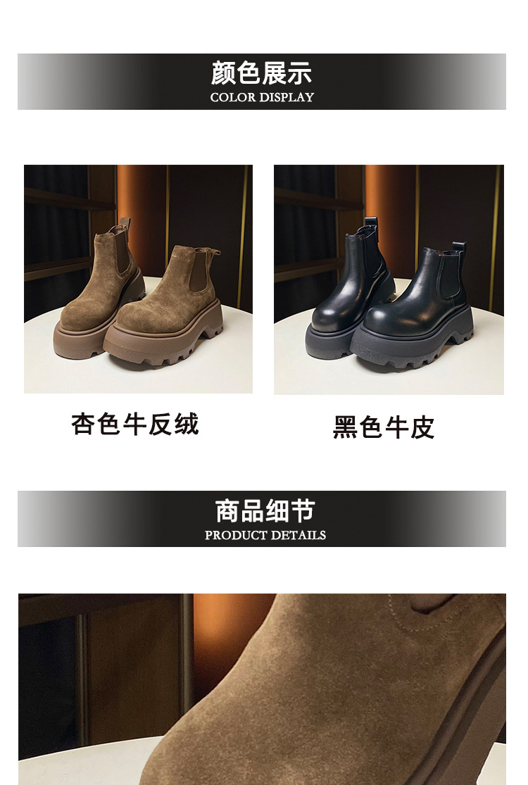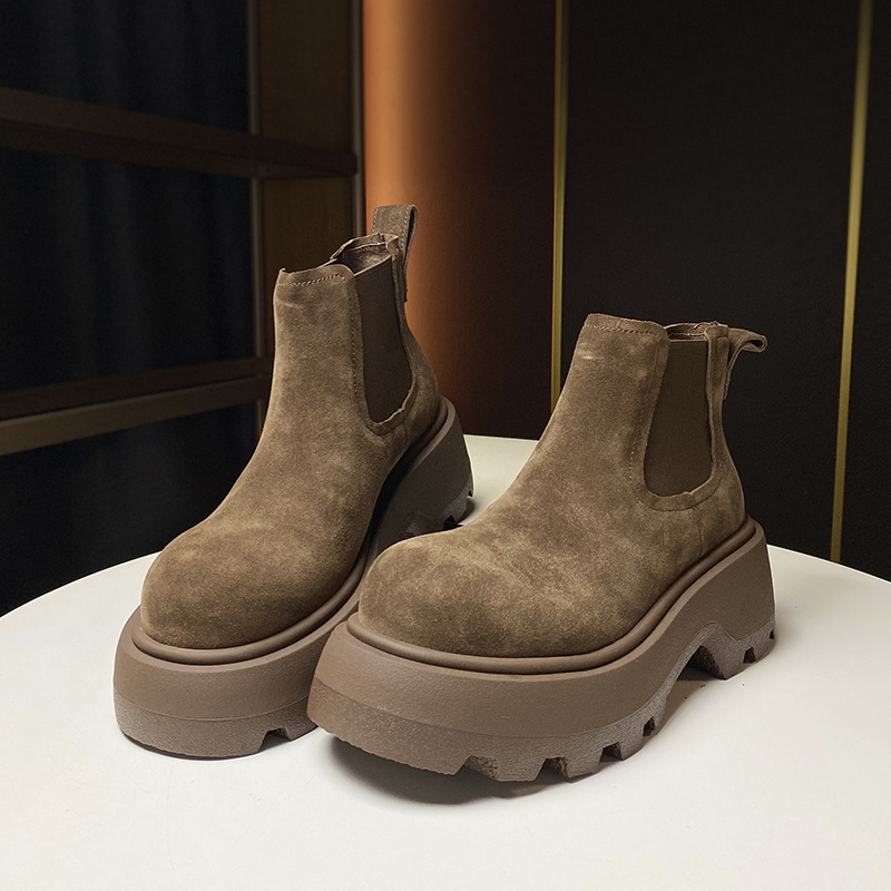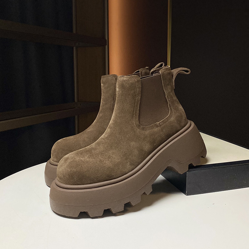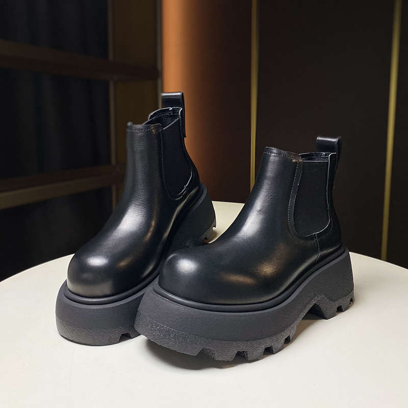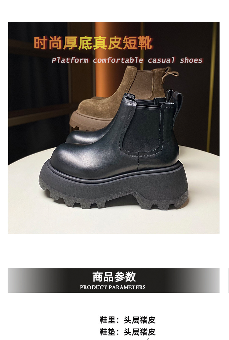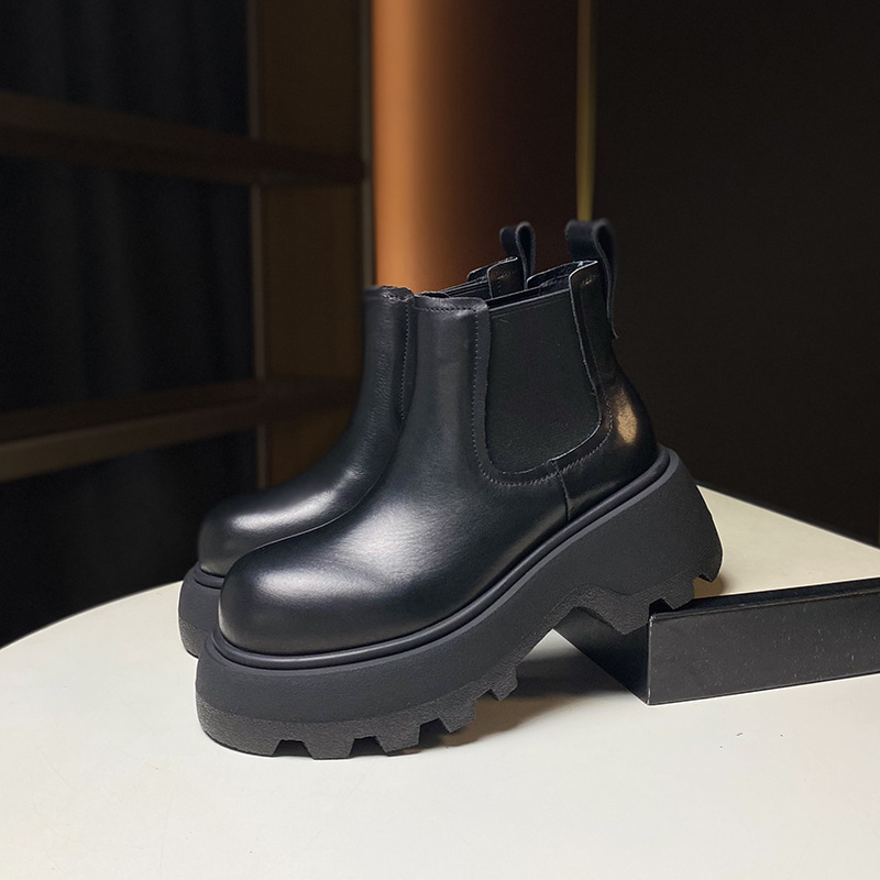 유럽 스타일 2025 가을 겨울 신상 첼시 부츠 여성용 천연 가죽 플랫폼 두꺼운 밑창 숏부츠 여성용 패션 레트로 스모크 부츠스토어 가기