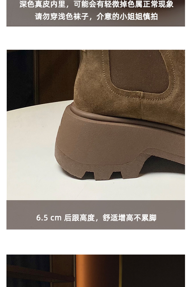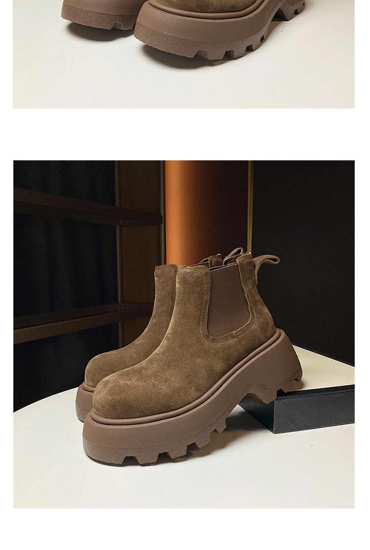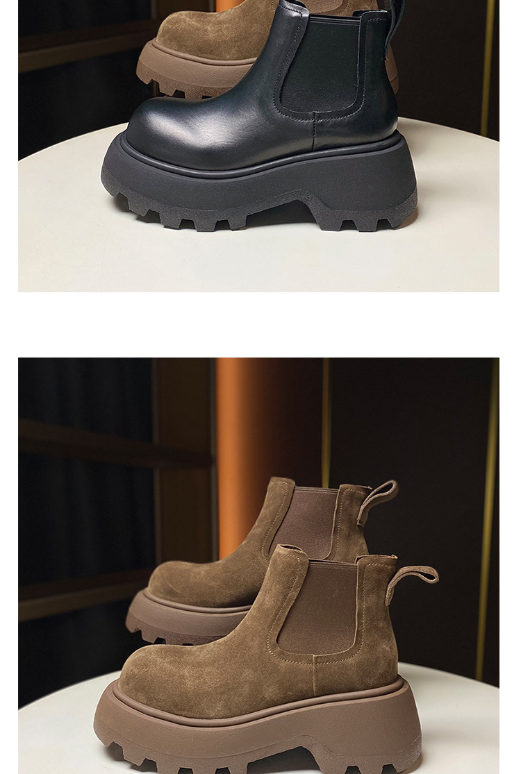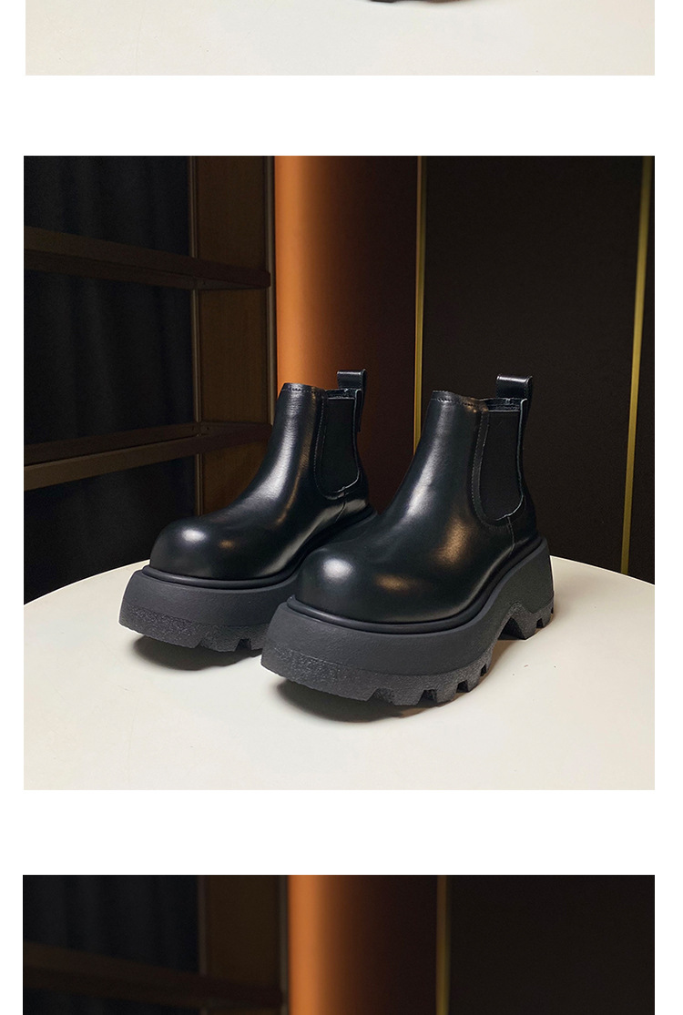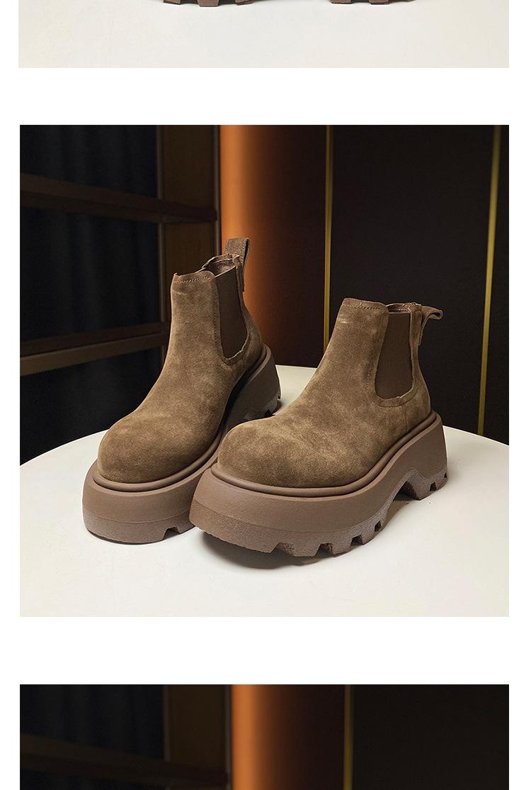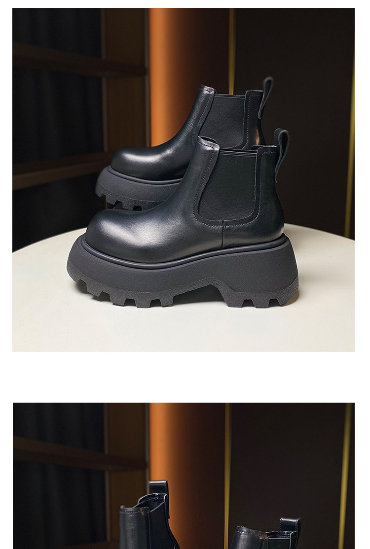 유럽 스타일 2025 가을 겨울 신상 첼시 부츠 여성용 천연 가죽 플랫폼 두꺼운 밑창 숏부츠 여성용 패션 레트로 스모크 부츠스토어 가기