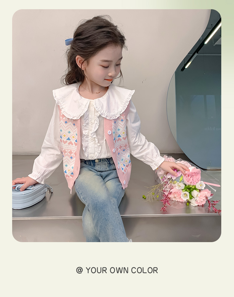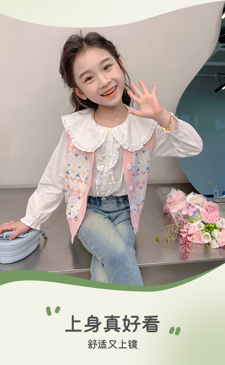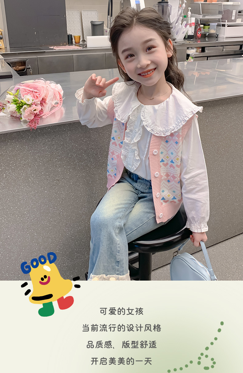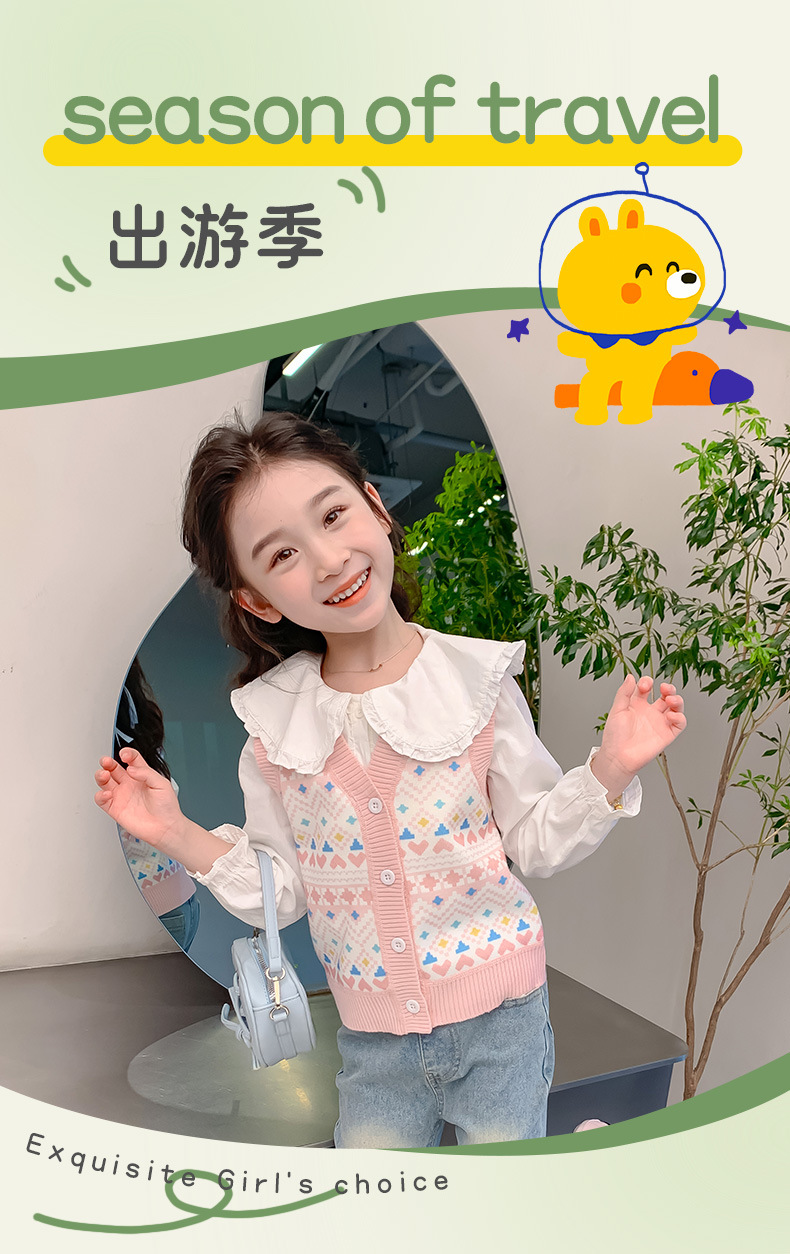 소녀 스웨터 조끼 봄 가을 한국 어린이 만화 니트 조끼 기모 따뜻한 양복 조끼 B2503