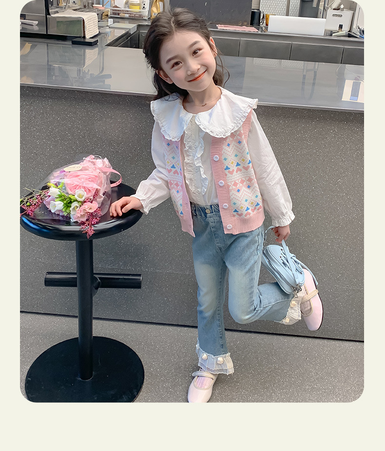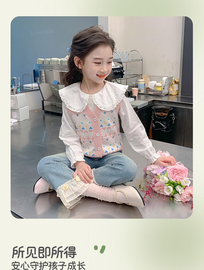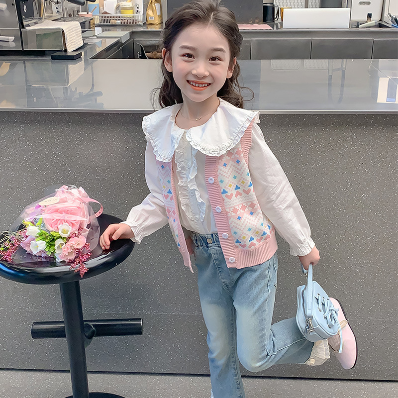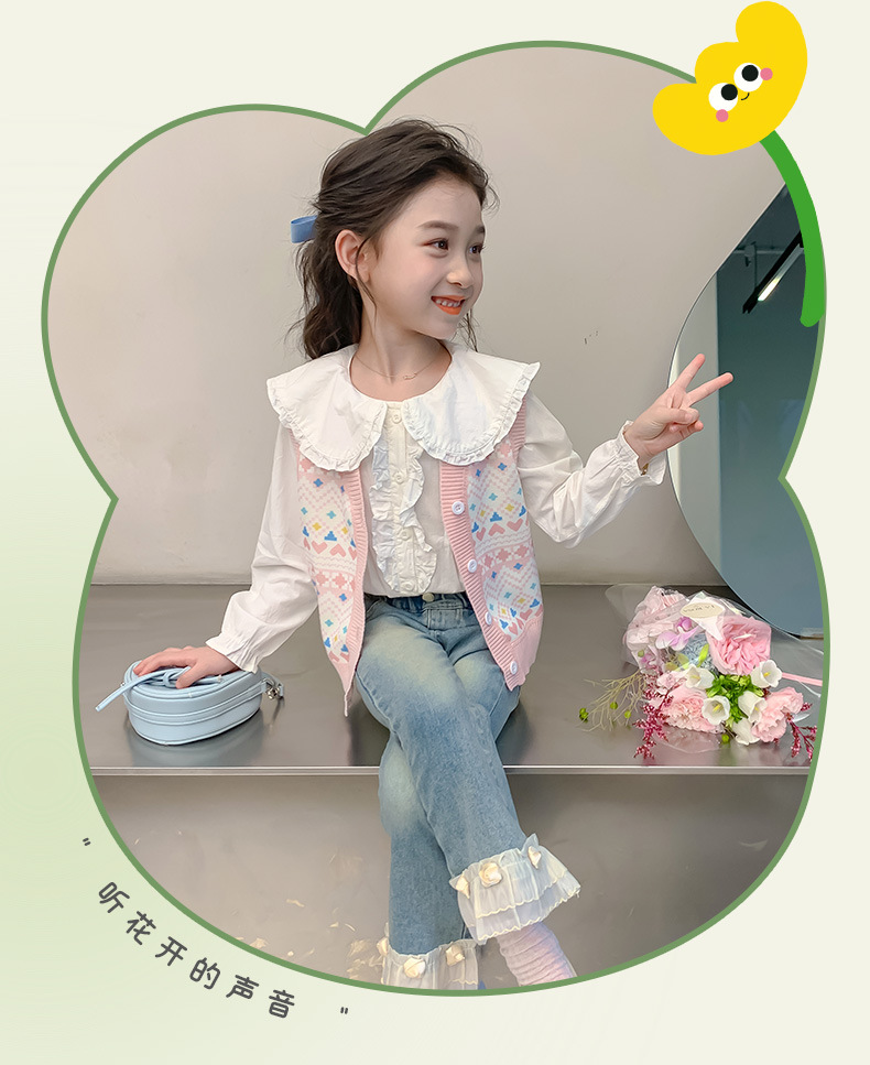 소녀 스웨터 조끼 봄 가을 한국 어린이 만화 니트 조끼 기모 따뜻한 양복 조끼 B2503