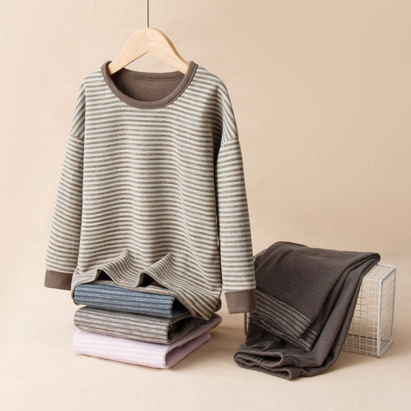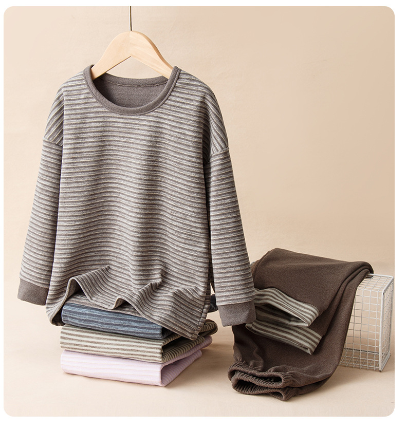 2024 년 어린이 가을 겨울 양모 실크 세트 파자마 소년 소녀 홈 의류 두꺼운 속옷 세트 가을 옷과 바지스토어 가기