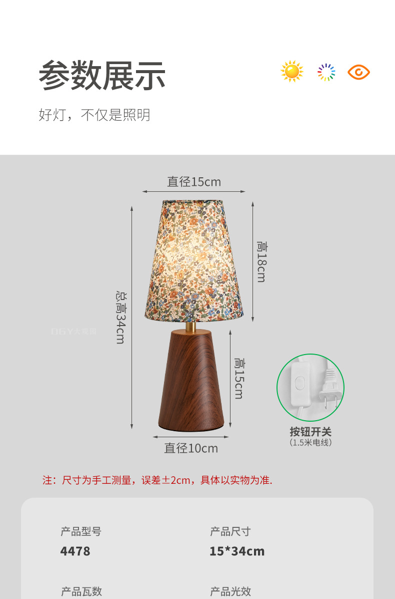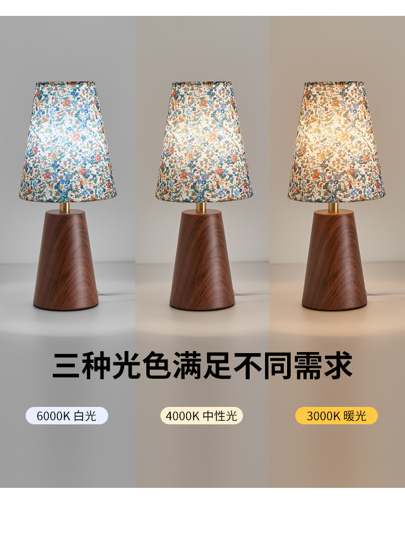 빈티지 단단한 나무 꽃 테이블 램프 침대 옆 작은 램프 중세 높은 수준의 분위기 램프 거실 침실 높은 가치의 야간 조명스토어 가기