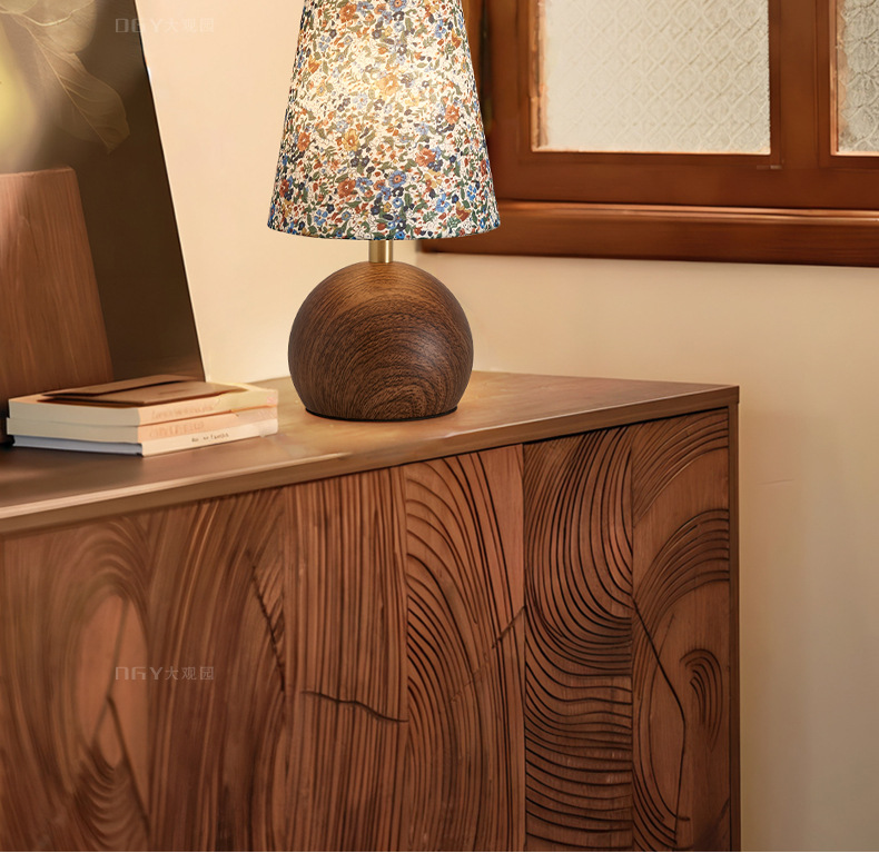빈티지 단단한 나무 꽃 테이블 램프 침대 옆 작은 램프 중세 높은 수준의 분위기 램프 거실 침실 높은 가치의 야간 조명