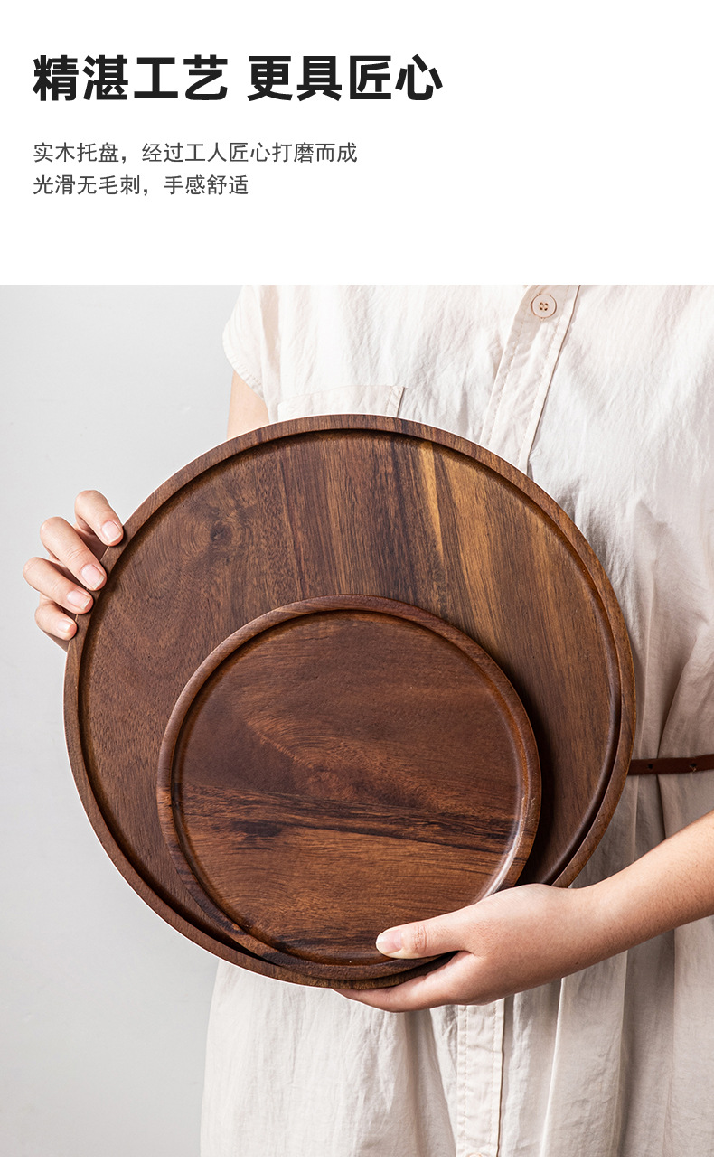 일본식 원목 원형 트레이 서양식 접시 가정용 케이크 원형 접시 차 트레이 나무 디저트 커피 나무 트레이