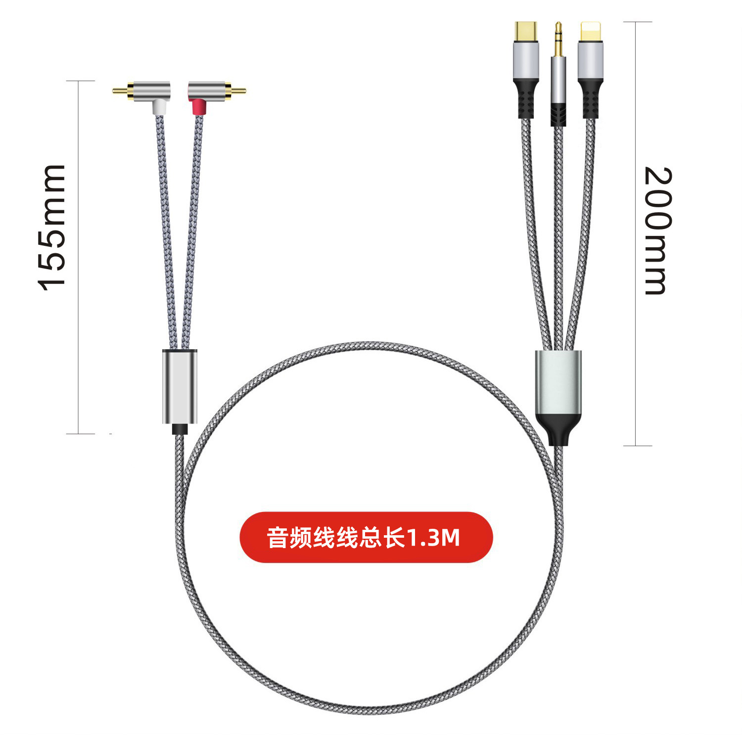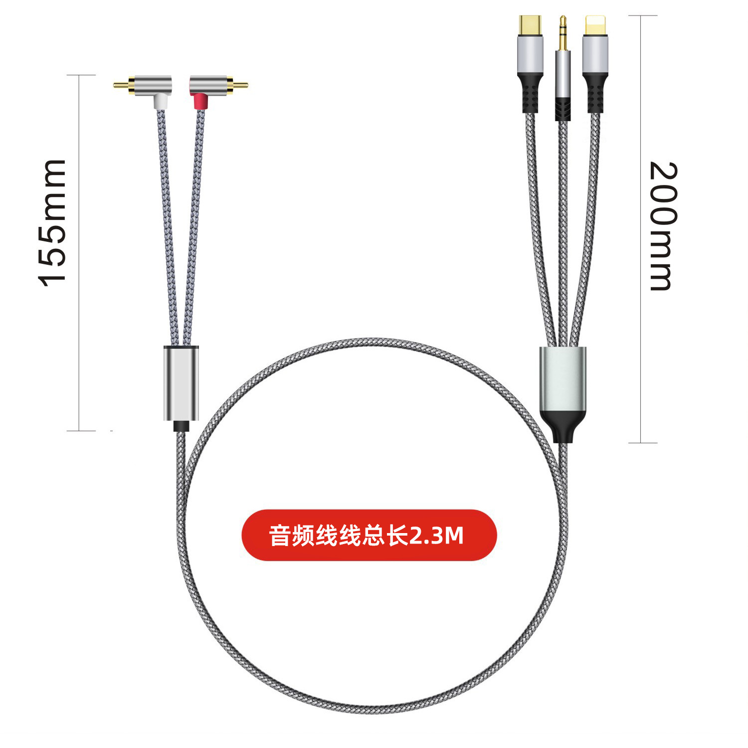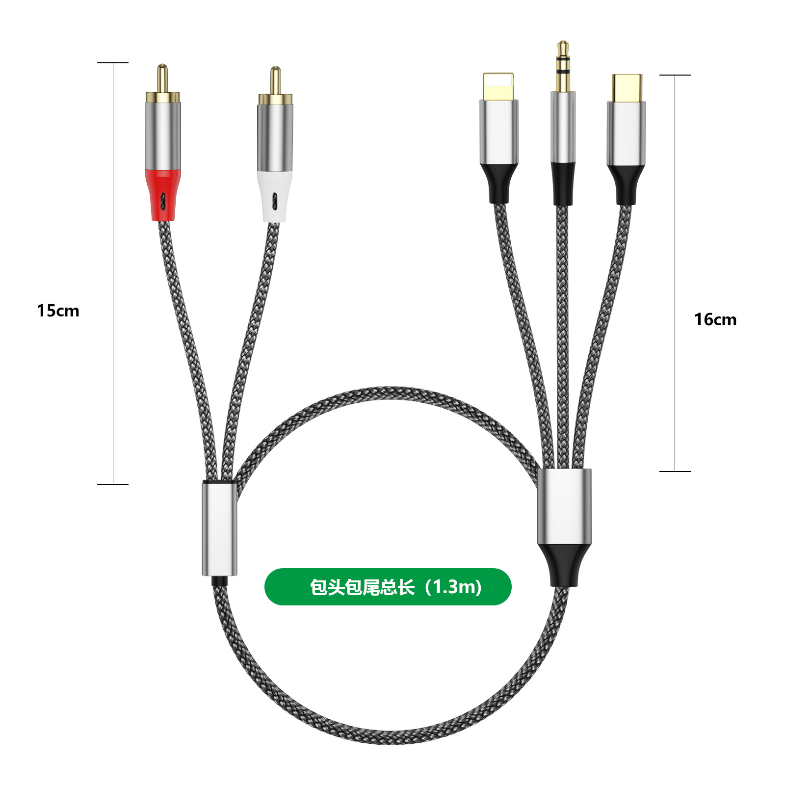크로스보더 3-in-1 2RCA 오디오 케이블, 타입-C 애플 3.5MM 오디오 케이블, 스피커 및 앰프용