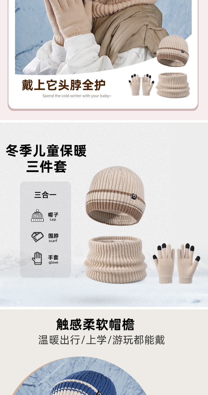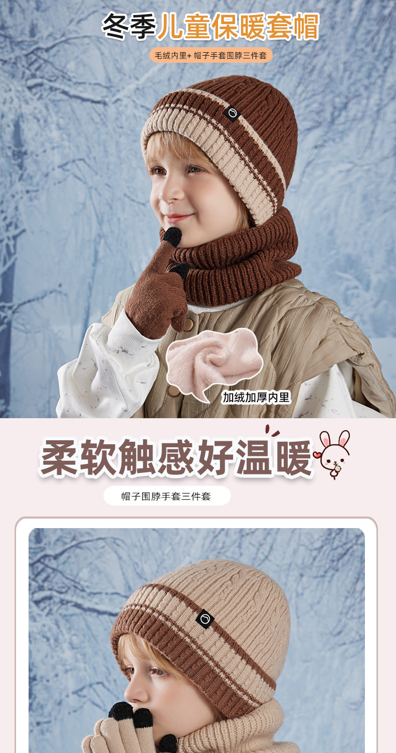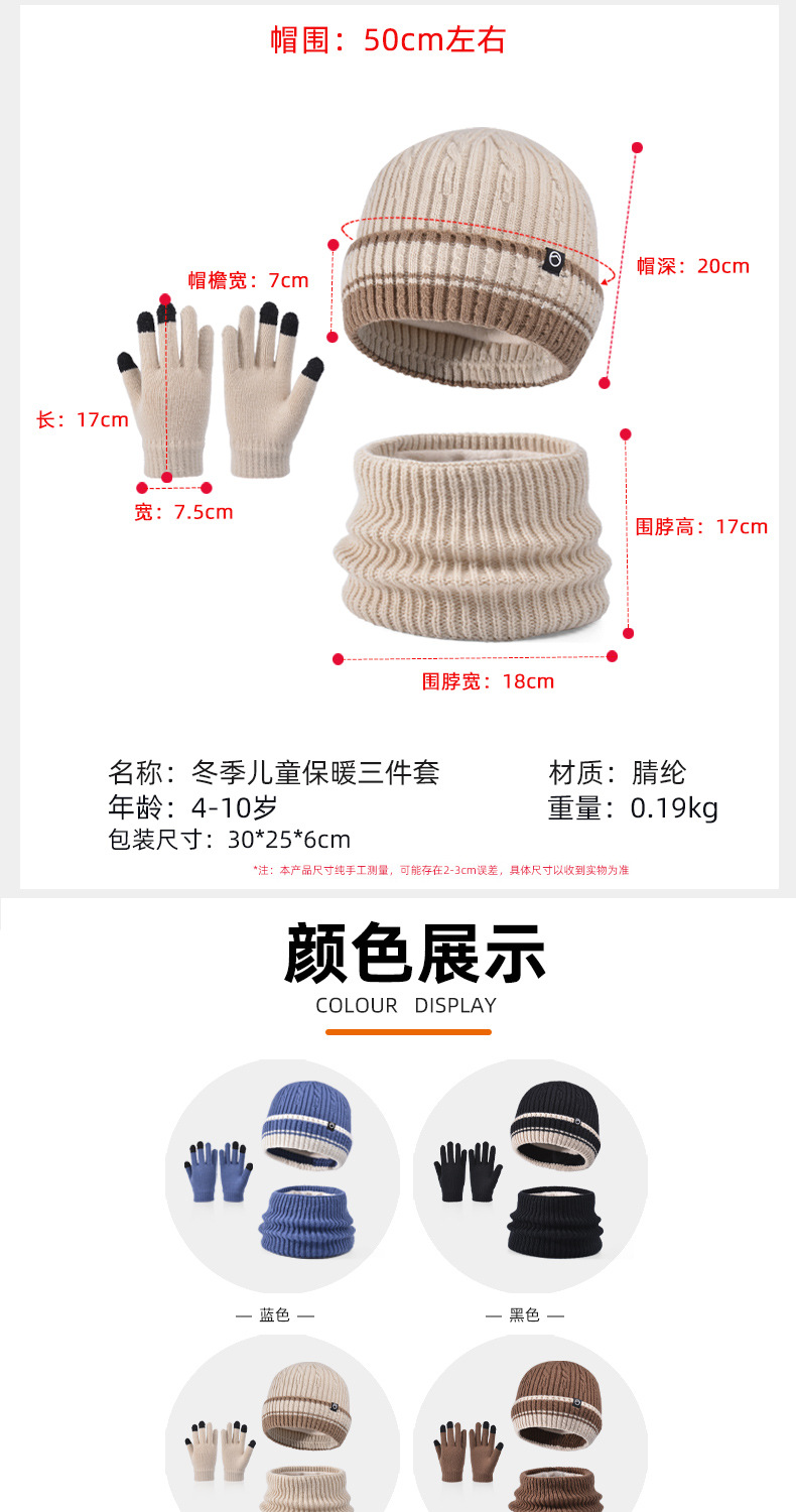 어린이 모자 장갑 스카프 세트 겨울 기모 귀 보호 니트 울 캡 아기 야외 따뜻한 풀오버 캡