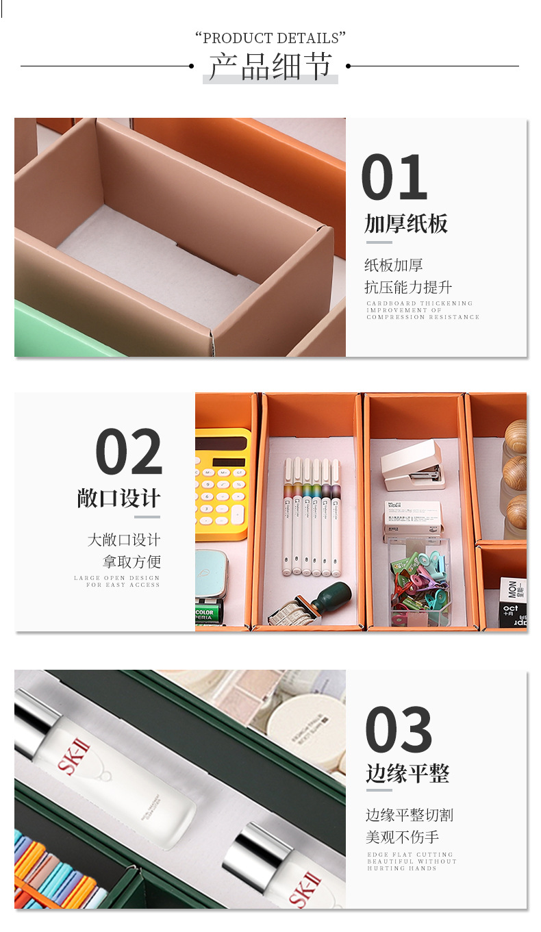 새로운 종이 서랍 보관 상자 벽 매달린 내장 화장품 립스틱 파티션 마감 박스 오피스 데스크 도매
