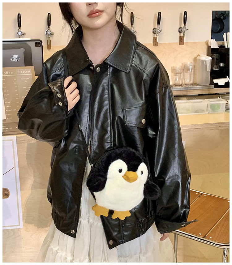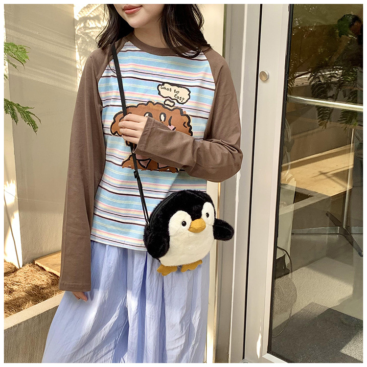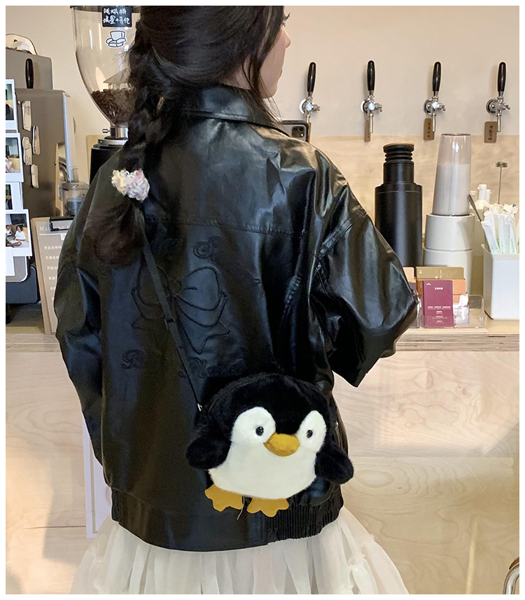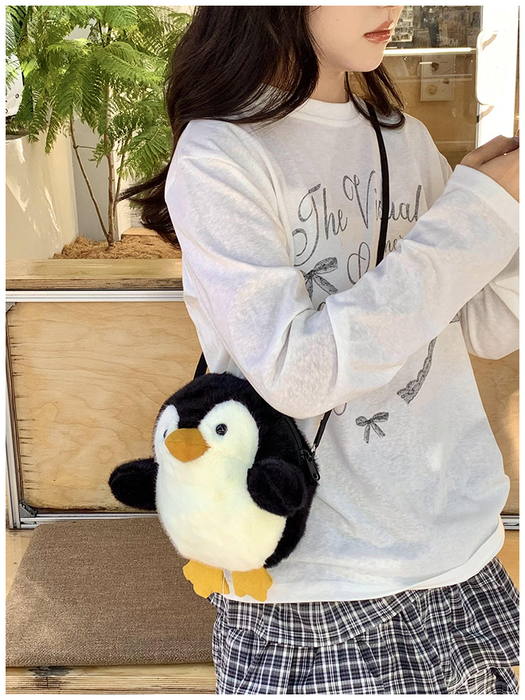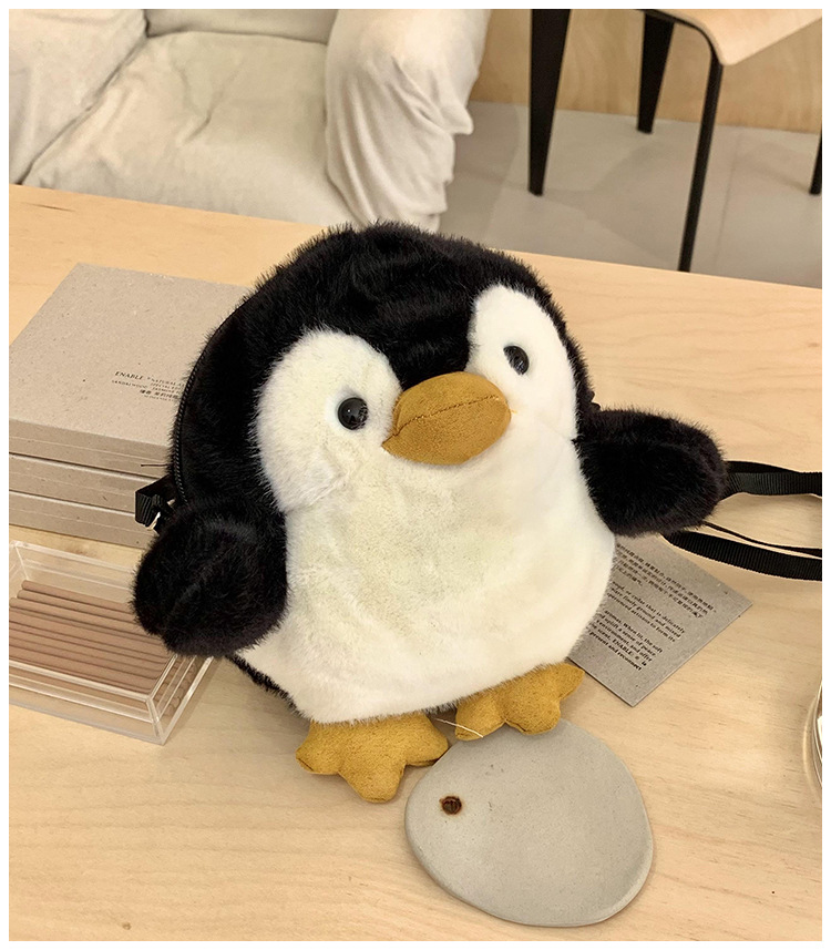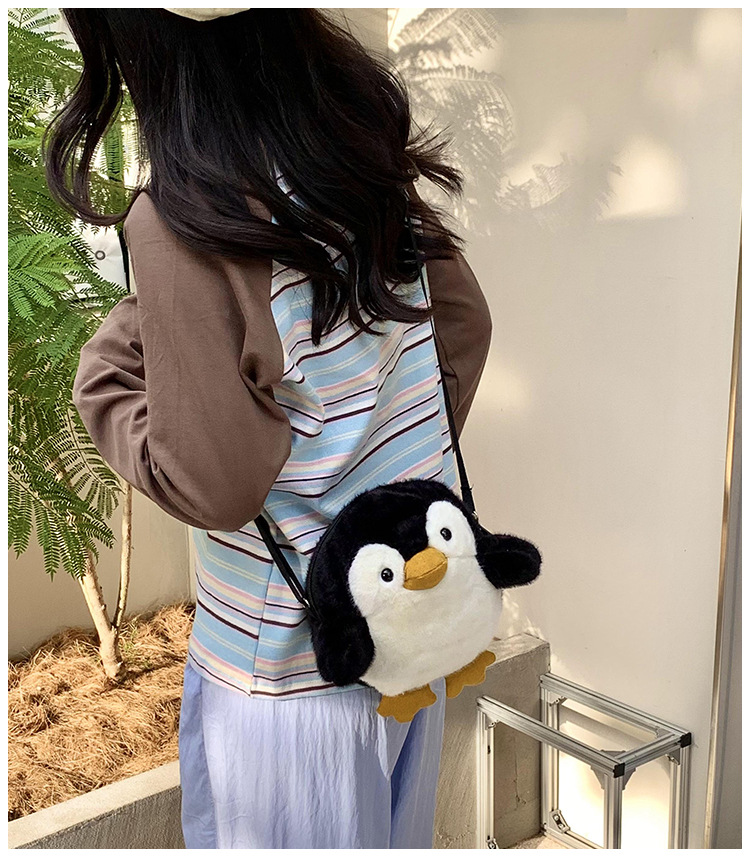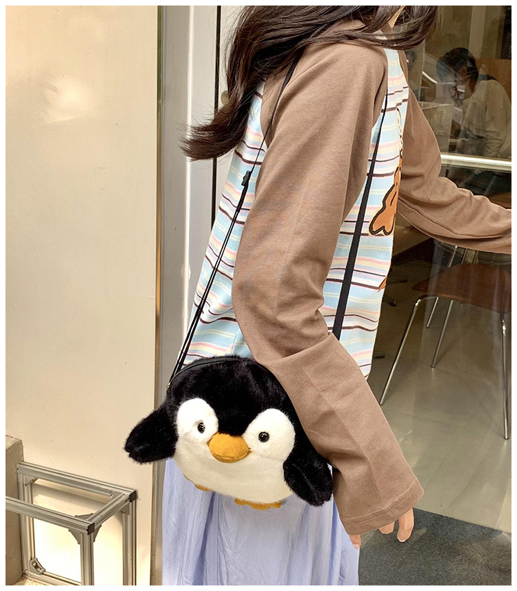 2024 새로운 봉제 작은 펭귄 메신저 가방 소녀 부드러운 어깨 가방 어린이 귀여운 인형 작은 배낭 선물스토어 가기
