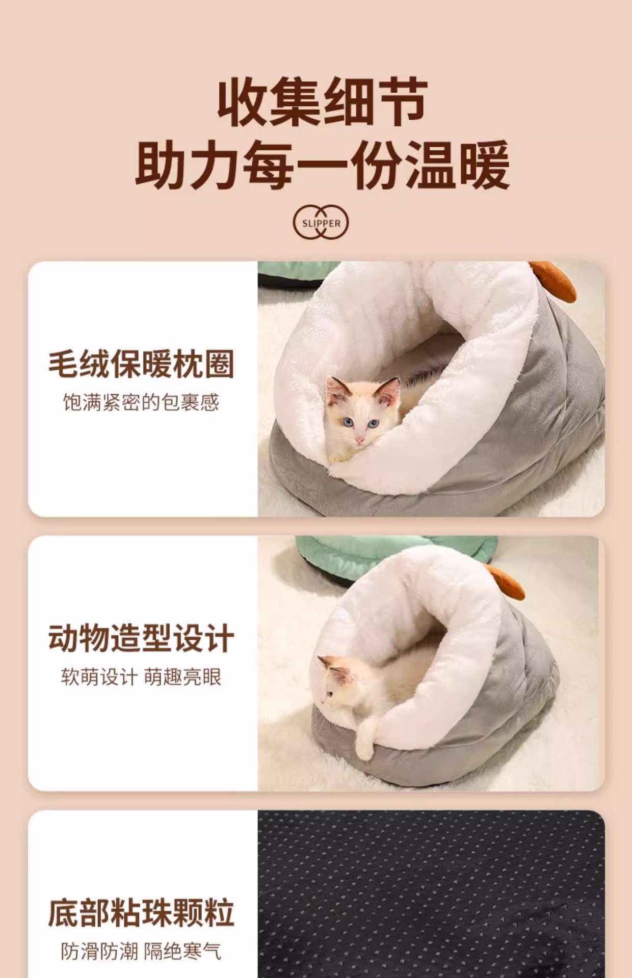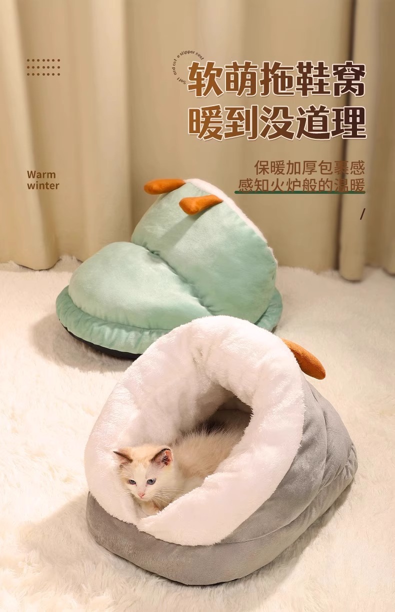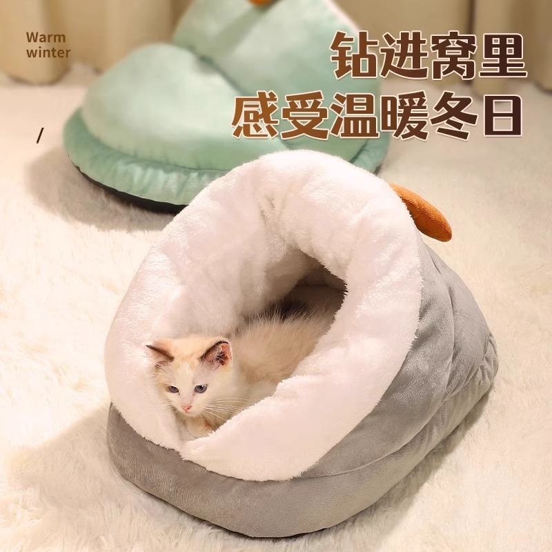 고양이 둥지 겨울 두꺼운 따뜻한 슬리퍼 반 폐쇄 작은 개 침대 겨울 잠자는 둥지 애완 동물 고양이 용품스토어 가기