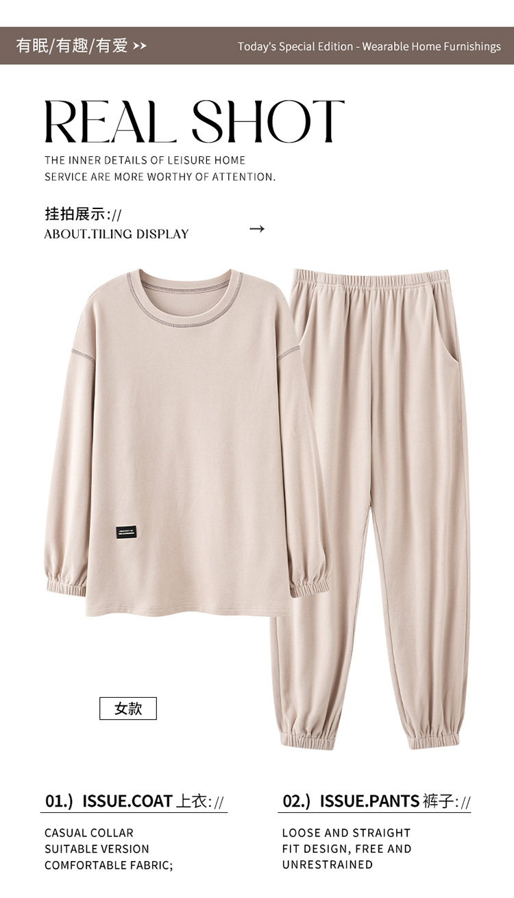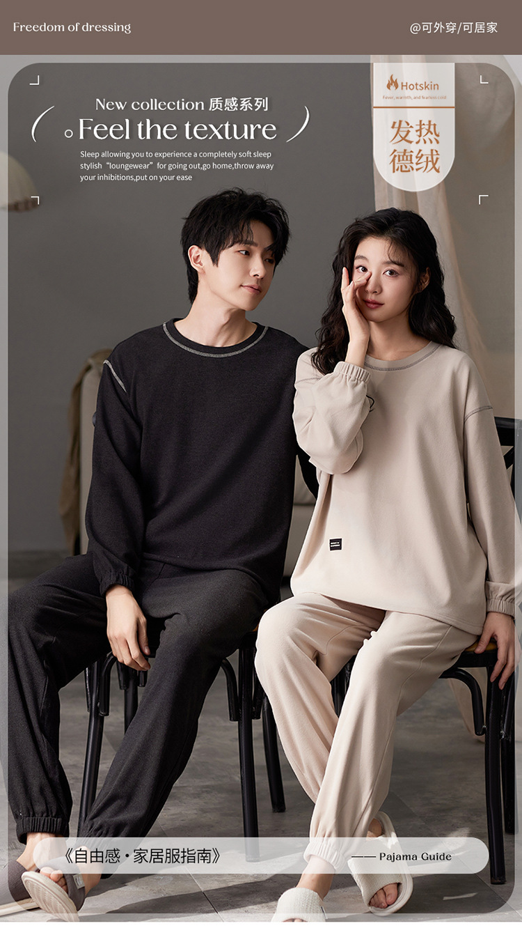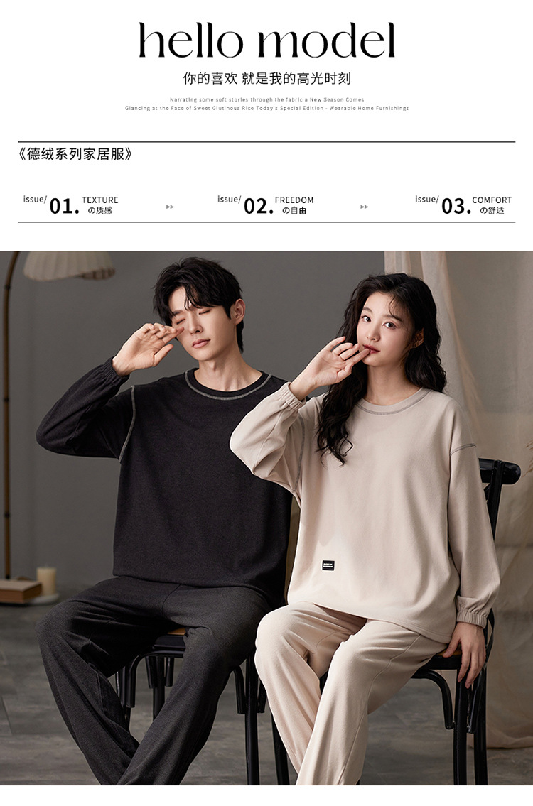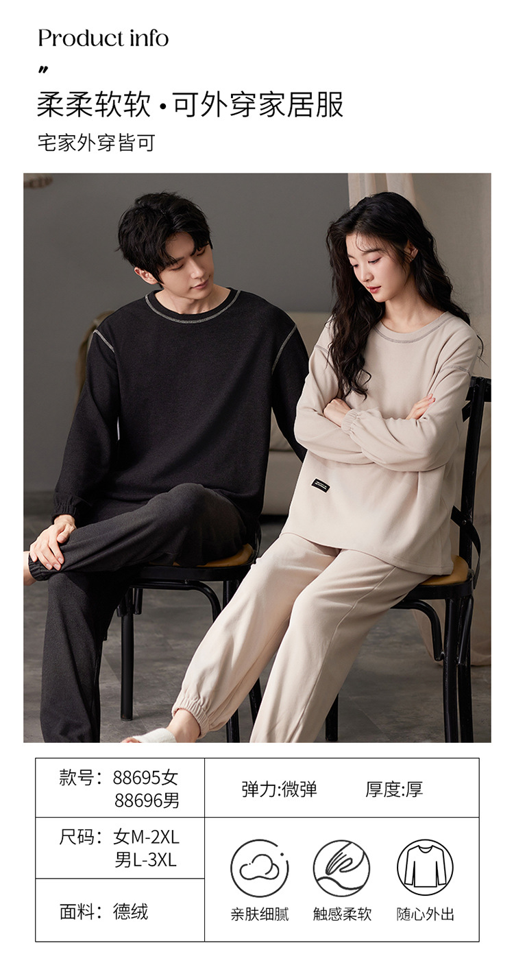 커플 잠옷 벨벳 난방 긴 소매 가을과 겨울 따뜻한 세트 크루 넥 풀오버 간단한 캐주얼 의류스토어 가기