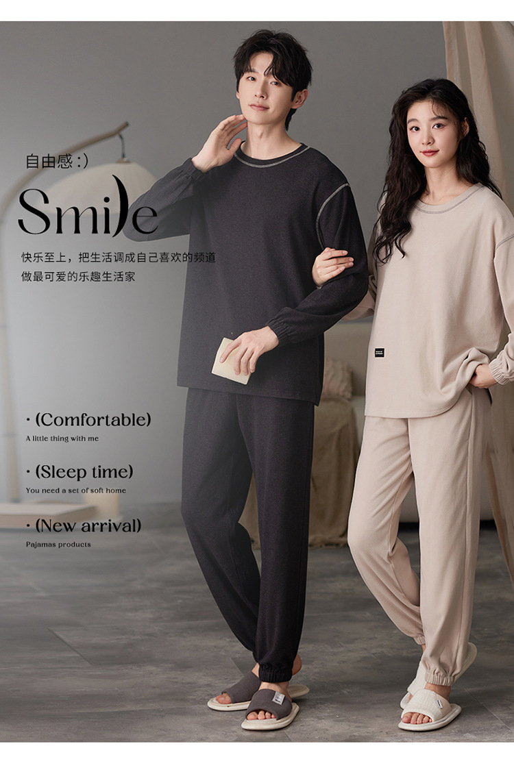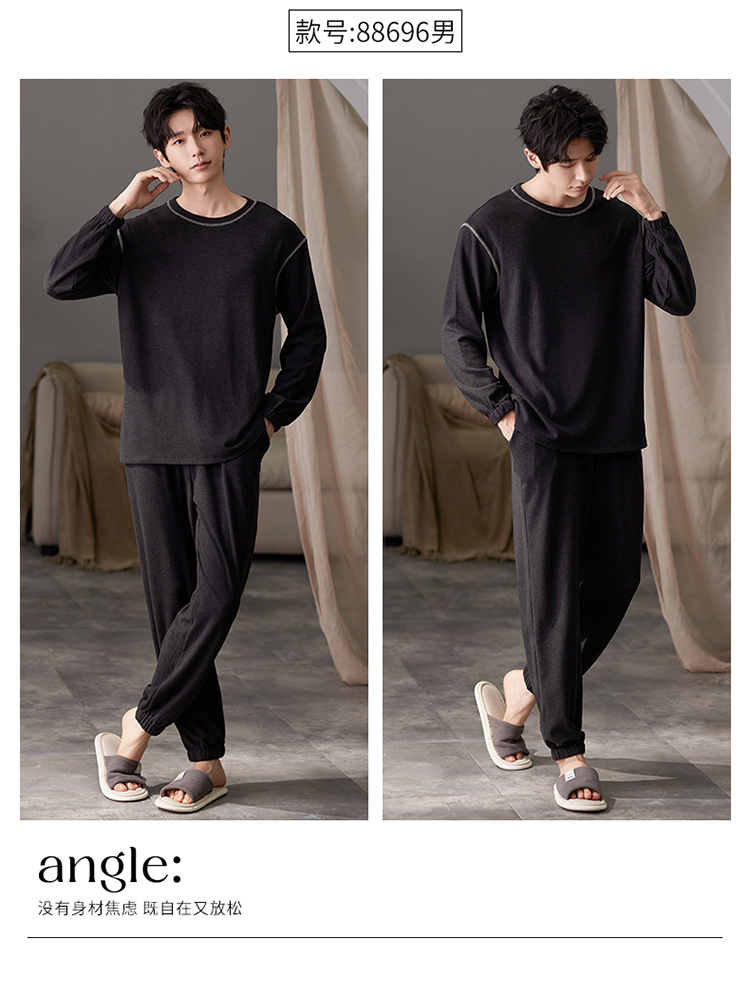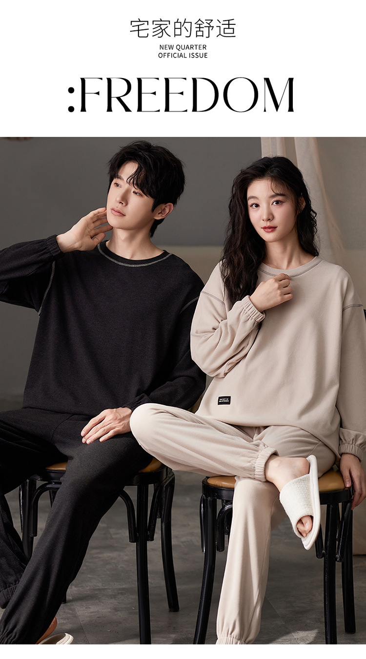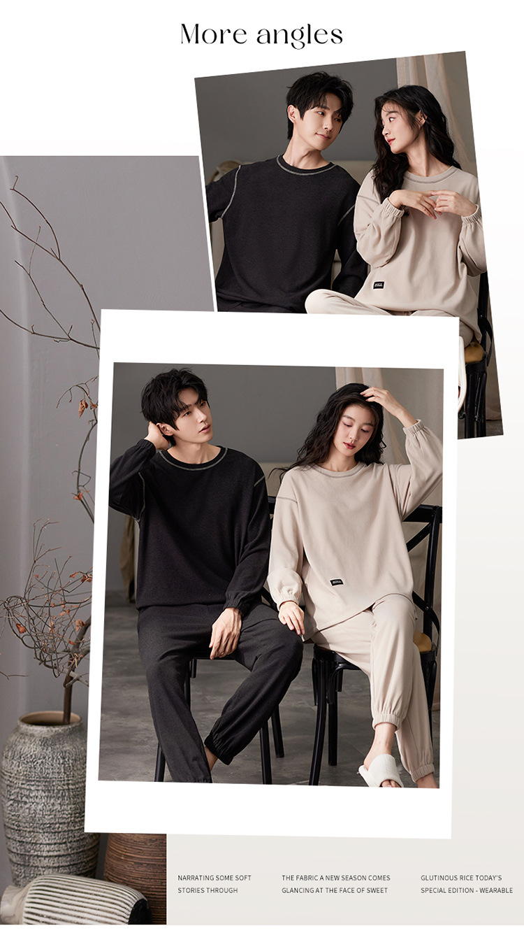 커플 잠옷 벨벳 난방 긴 소매 가을과 겨울 따뜻한 세트 크루 넥 풀오버 간단한 캐주얼 의류스토어 가기