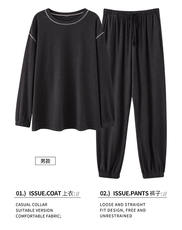 커플 잠옷 벨벳 난방 긴 소매 가을과 겨울 따뜻한 세트 크루 넥 풀오버 간단한 캐주얼 의류