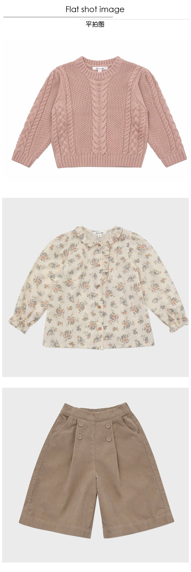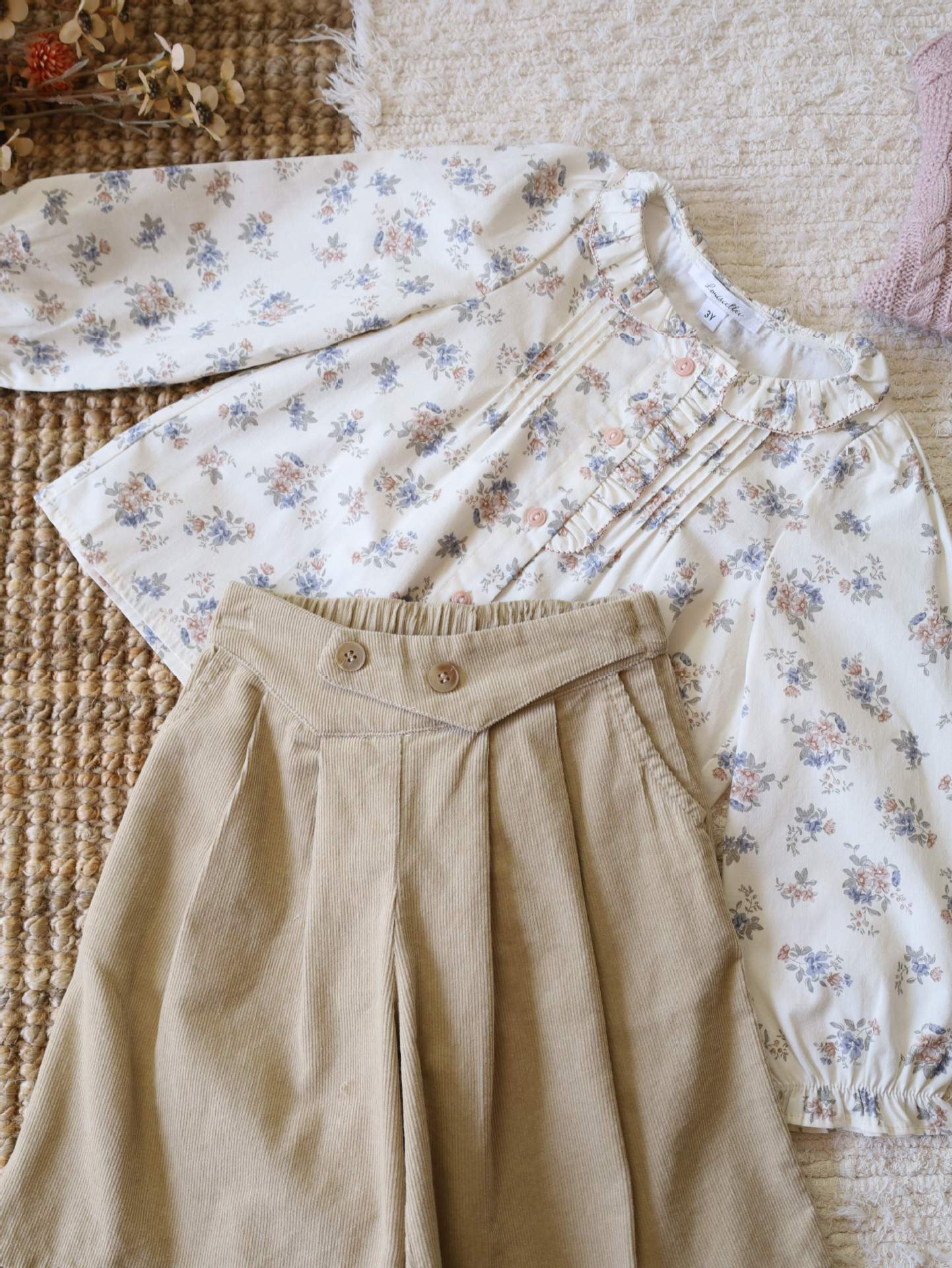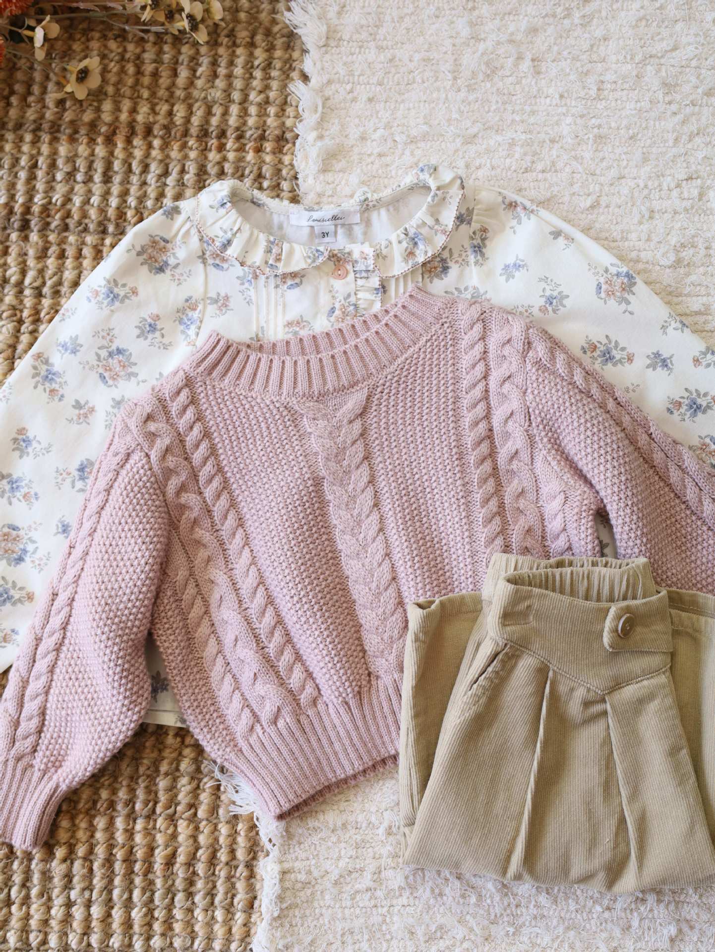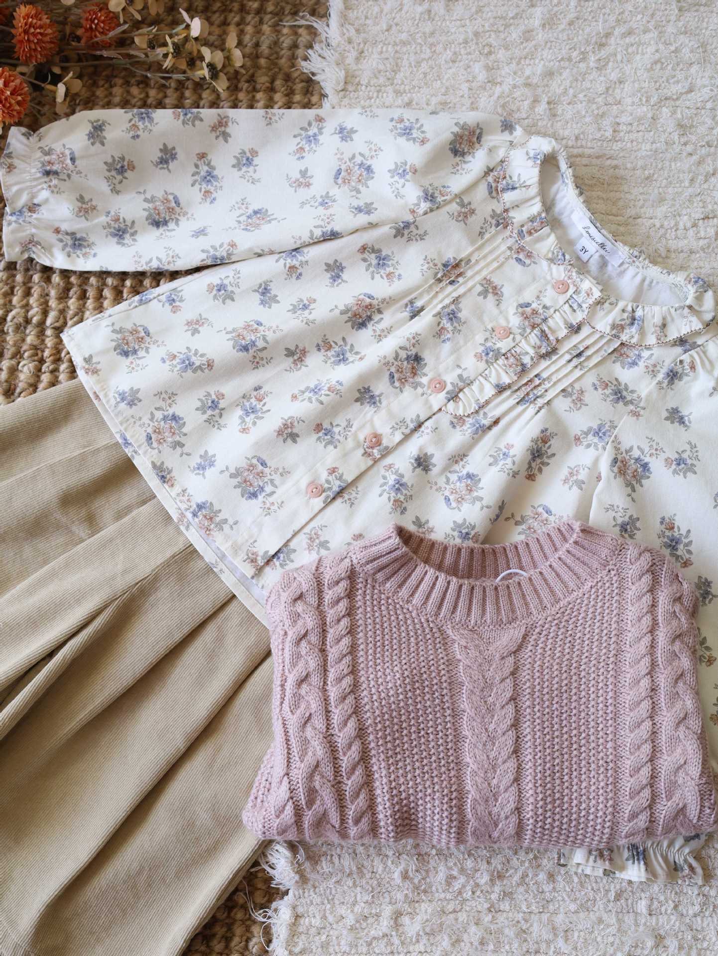 재고 있음 LOU 여아복 세트 2025 봄 가을 신상 순면 꽃무늬 셔츠 코듀로이 와이드 팬츠 울 스웨터