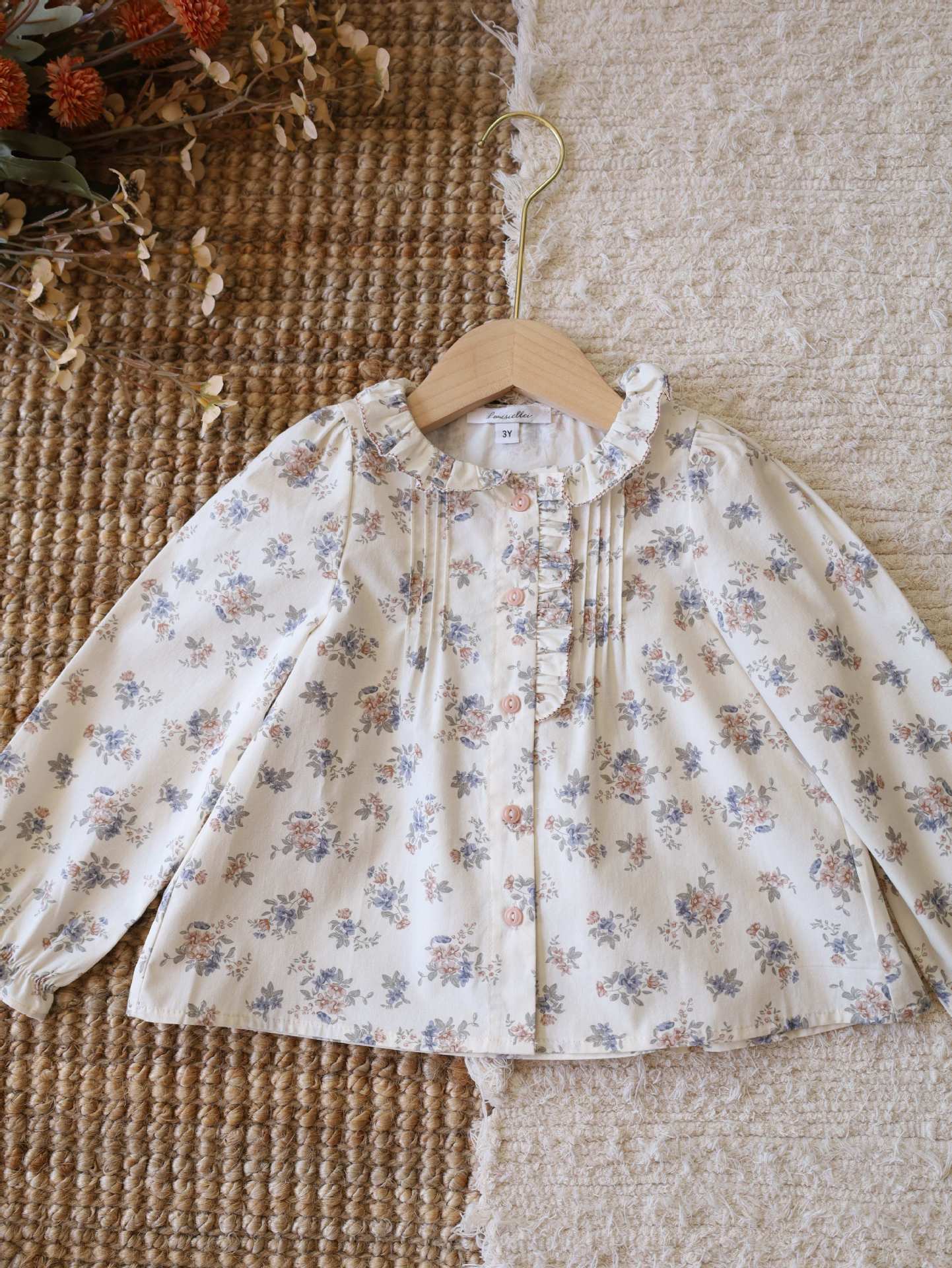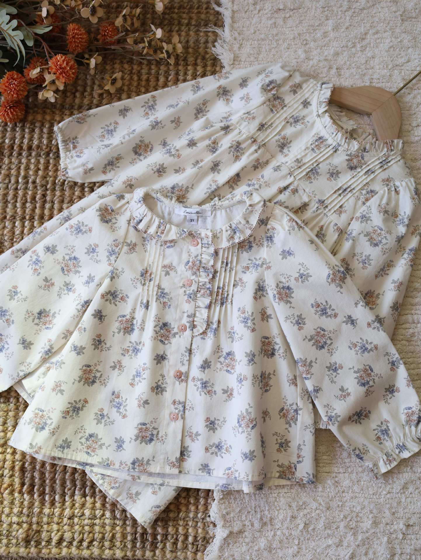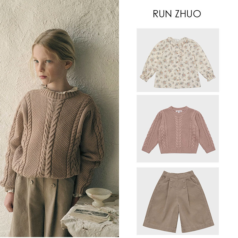 재고 있음 LOU 여아복 세트 2025 봄 가을 신상 순면 꽃무늬 셔츠 코듀로이 와이드 팬츠 울 스웨터스토어 가기