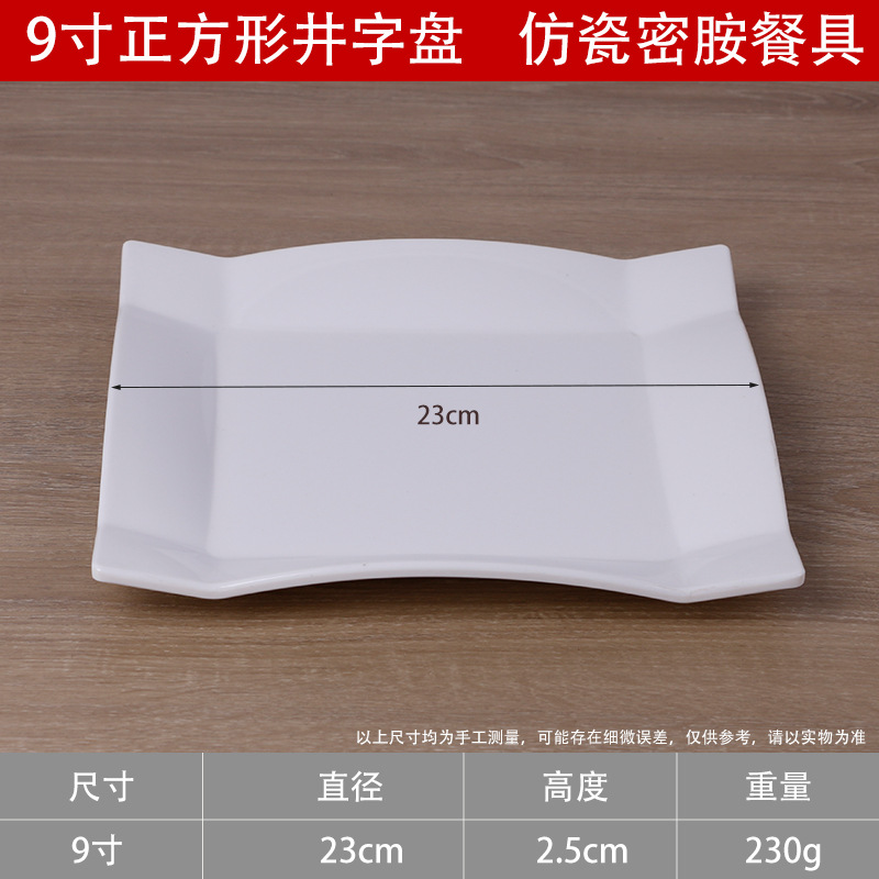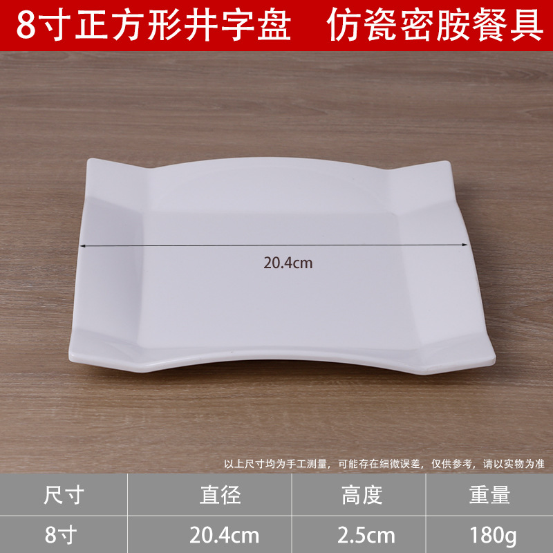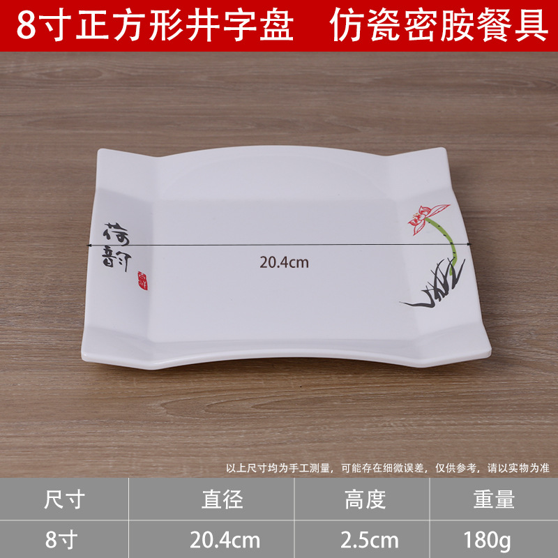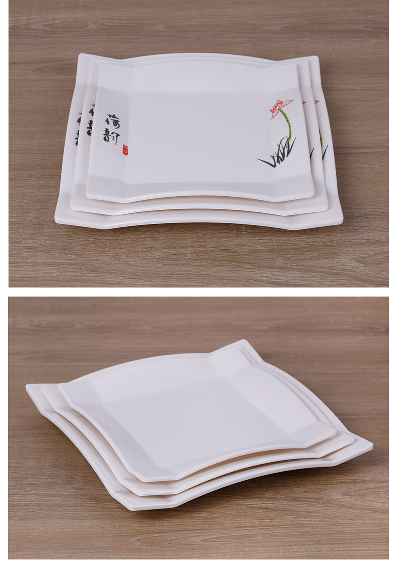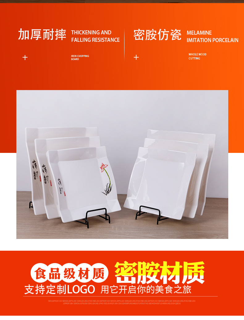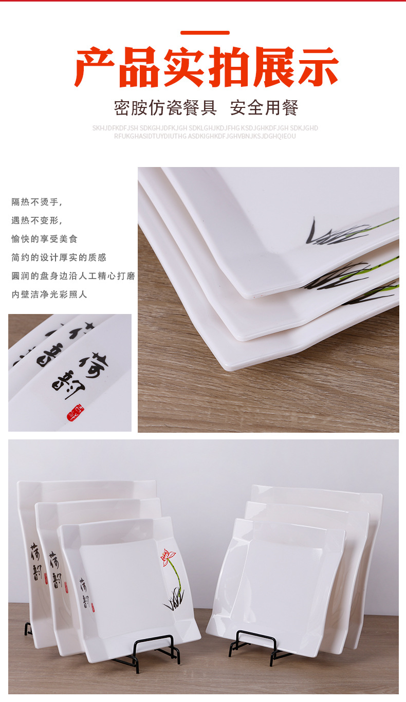 멜라민 같은 도자기 사각형 접시가 쌀 접시 패스트 푸드 플레이트 상업 볶음 팬케이크 차가운 접시 플라스틱 접시 식기