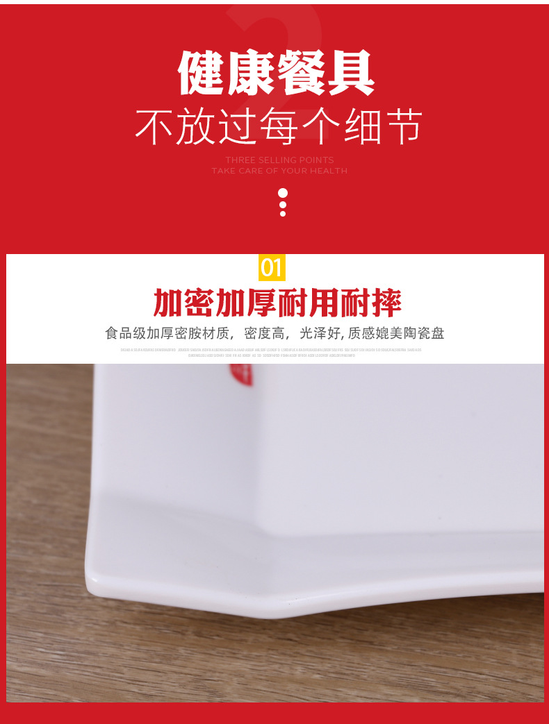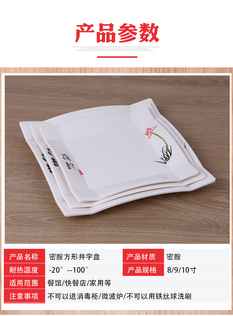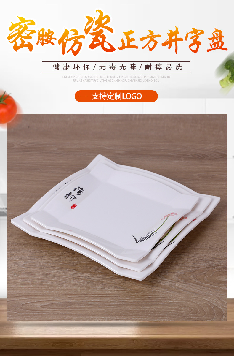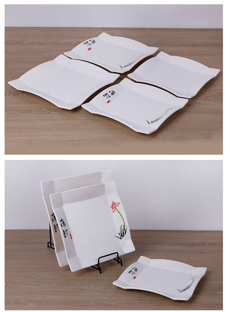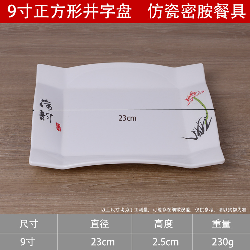 멜라민 같은 도자기 사각형 접시가 쌀 접시 패스트 푸드 플레이트 상업 볶음 팬케이크 차가운 접시 플라스틱 접시 식기