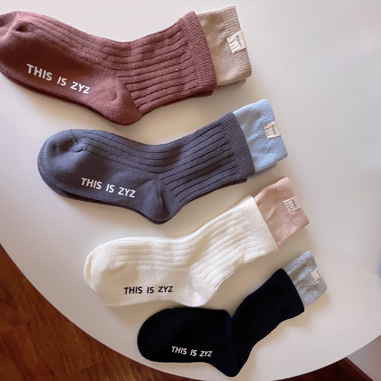 Zhiyazhi 아동용 양말, 한국식 캔디 컬러의 이중 바늘 핀스트립 양말, 소년 소녀용, 종아리까지 오는 이중 나사형 하이삭스스토어 가기