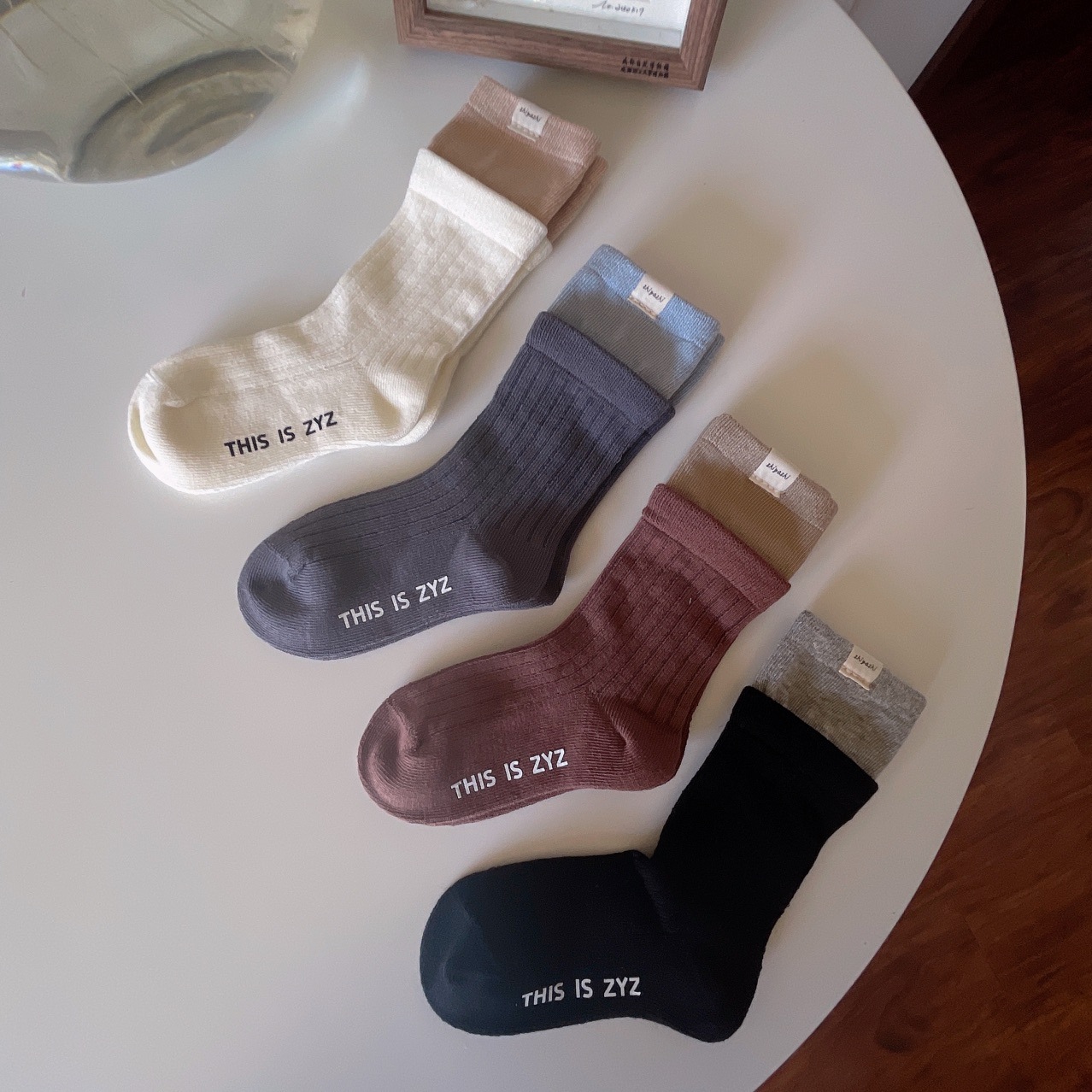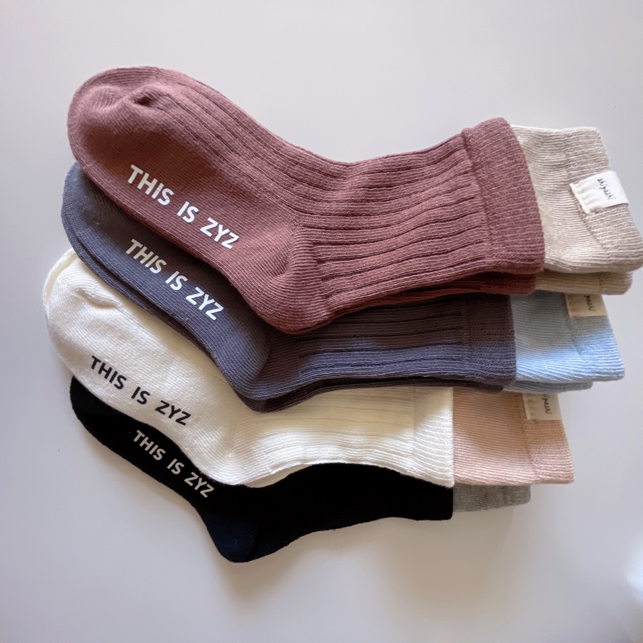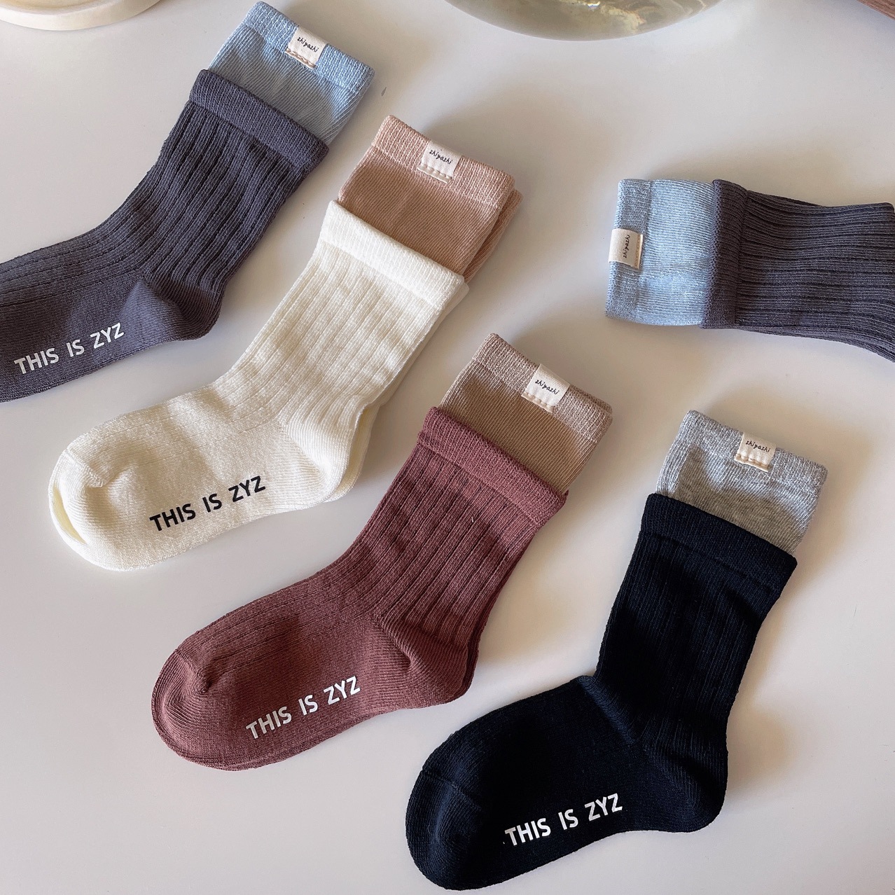 Zhiyazhi 아동용 양말, 한국식 캔디 컬러의 이중 바늘 핀스트립 양말, 소년 소녀용, 종아리까지 오는 이중 나사형 하이삭스