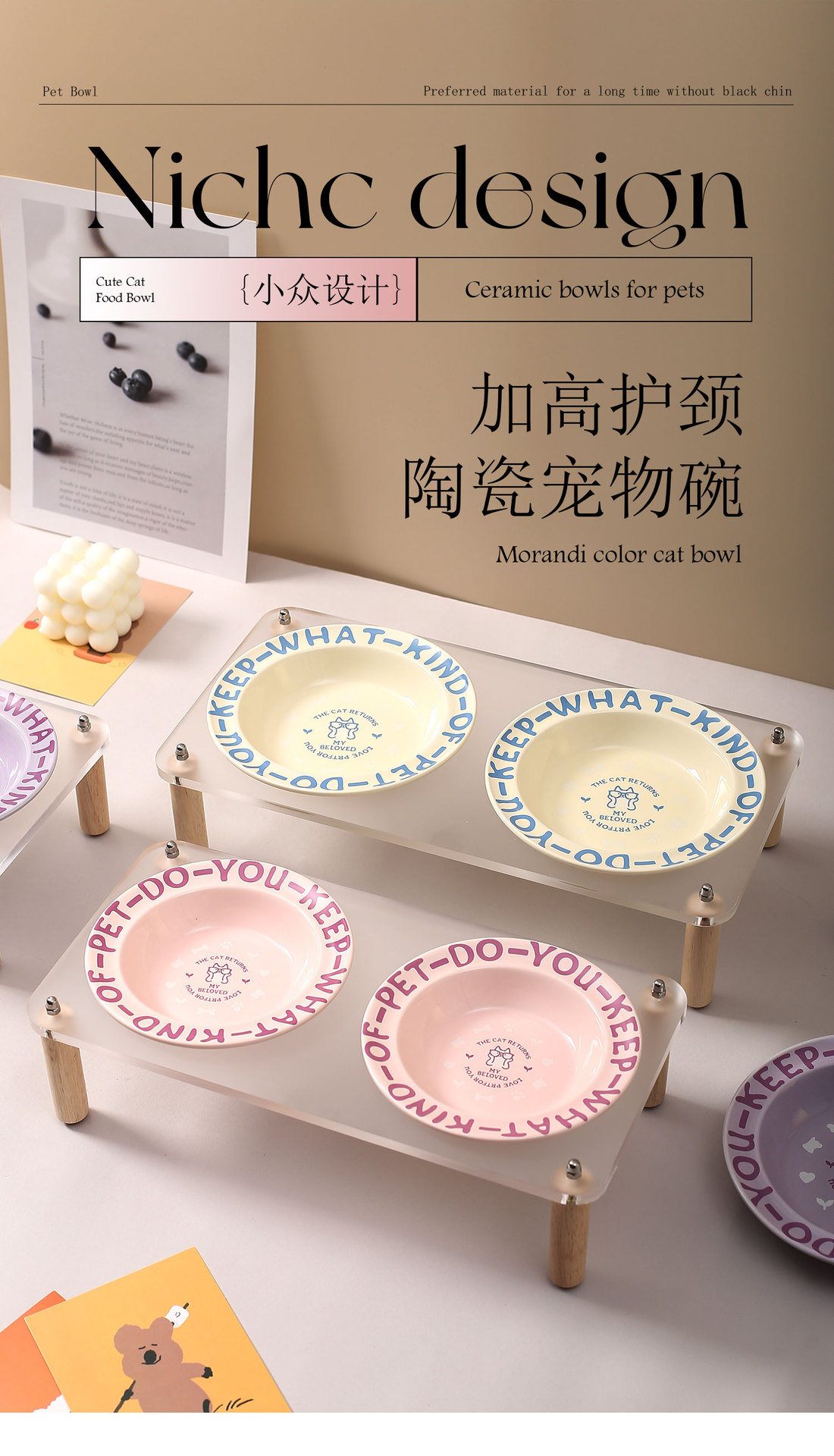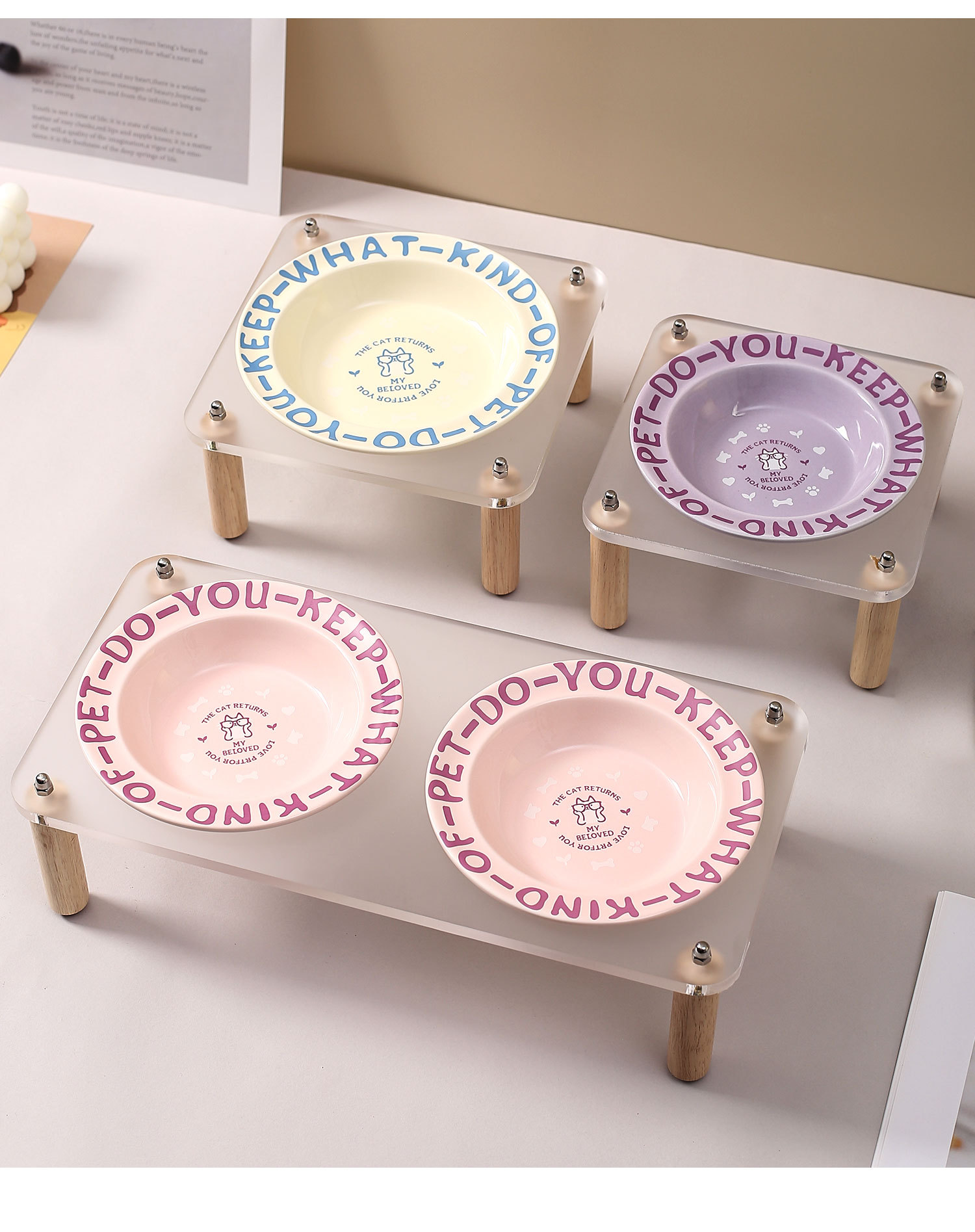 사각 아크릴 랙이있는 영어 비행 접시 가정용 애완 동물 그릇 키 큰 고양이 그릇 개 그릇 마시는 그릇 안티 노크 그릇스토어 가기