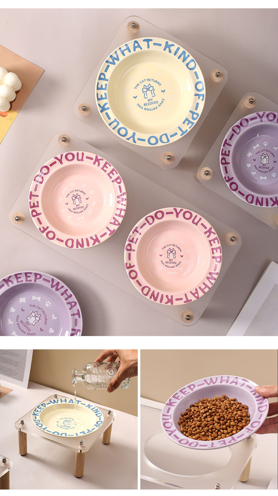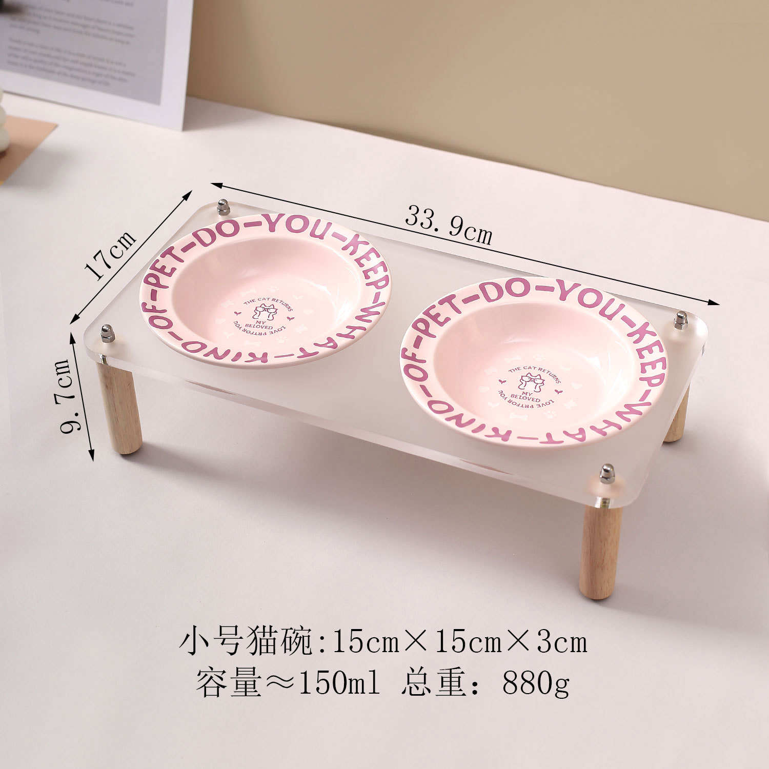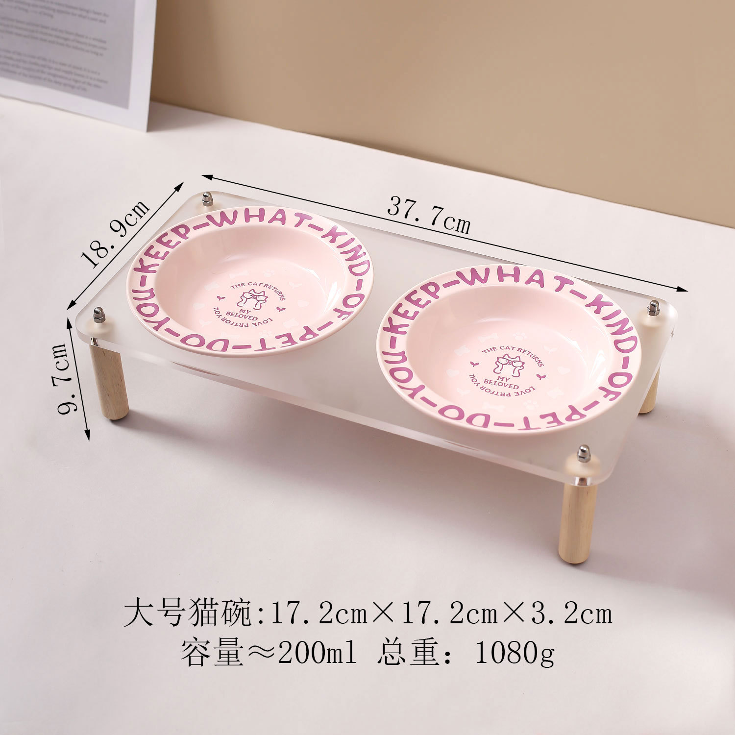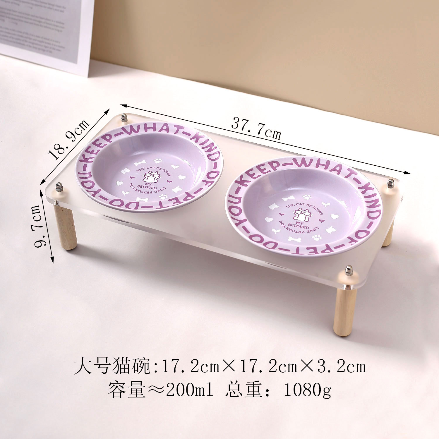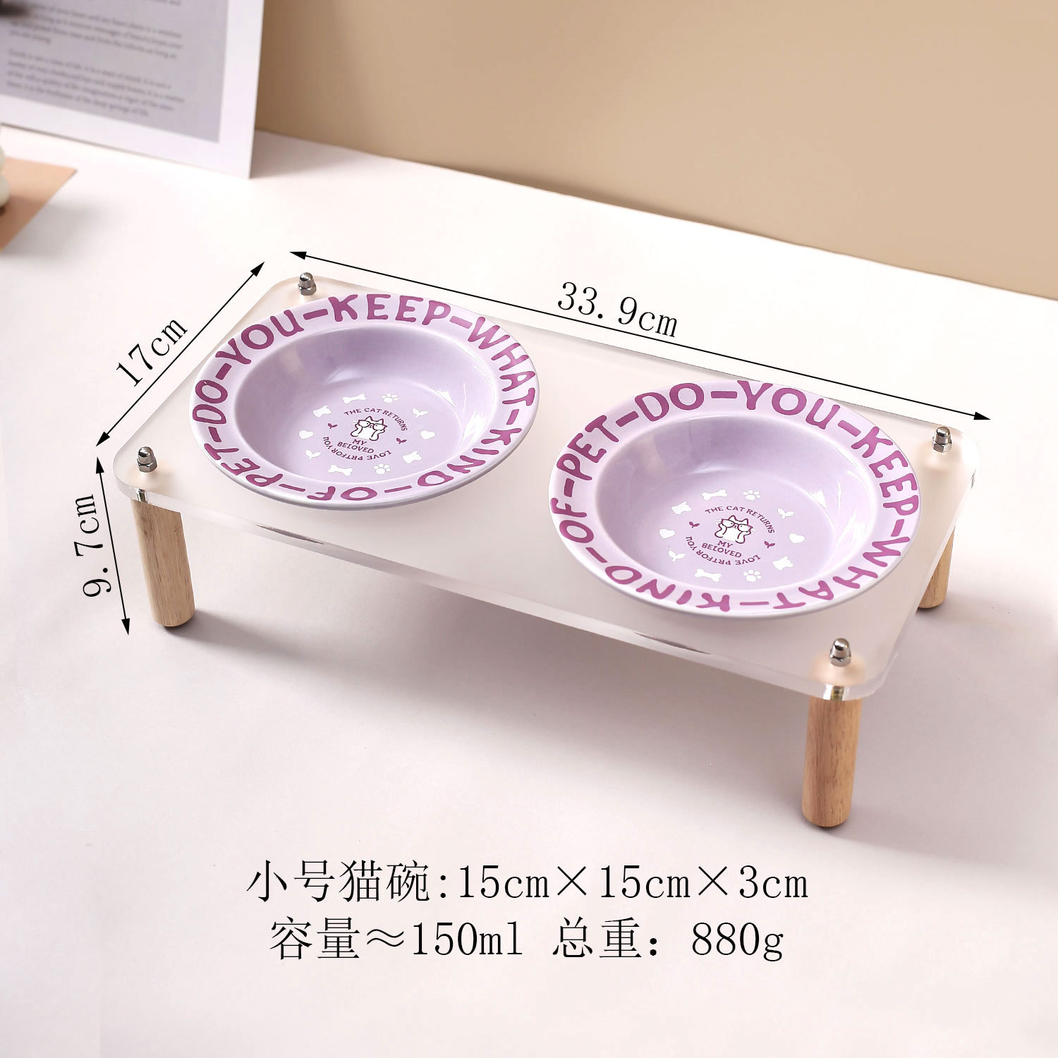 사각 아크릴 랙이있는 영어 비행 접시 가정용 애완 동물 그릇 키 큰 고양이 그릇 개 그릇 마시는 그릇 안티 노크 그릇