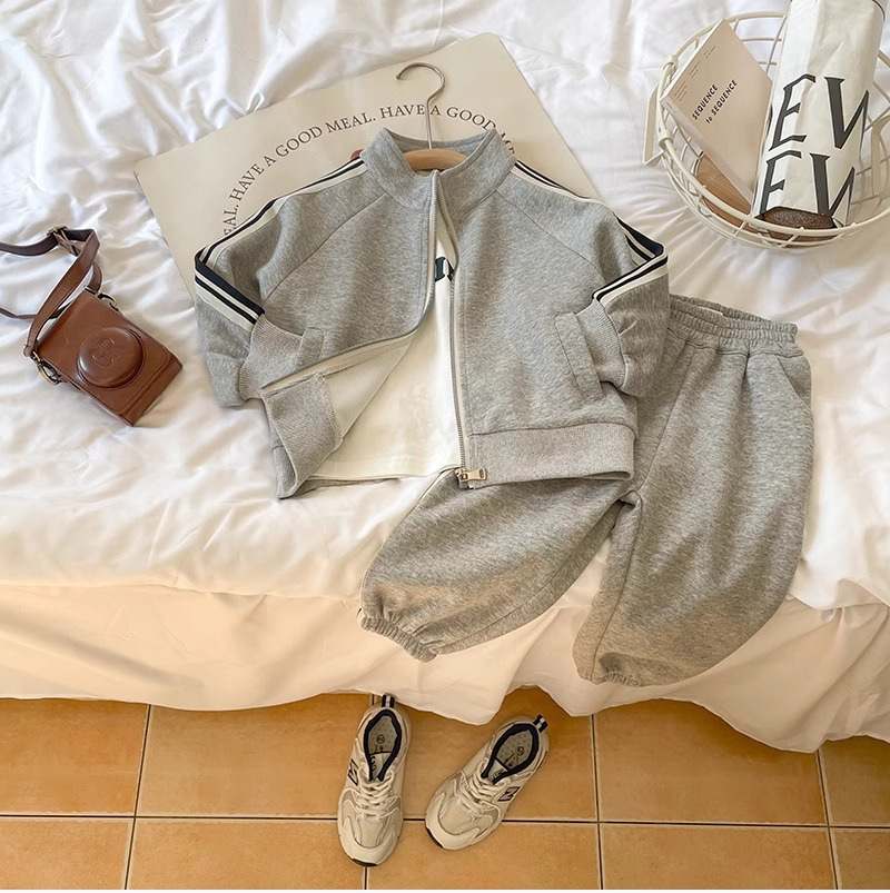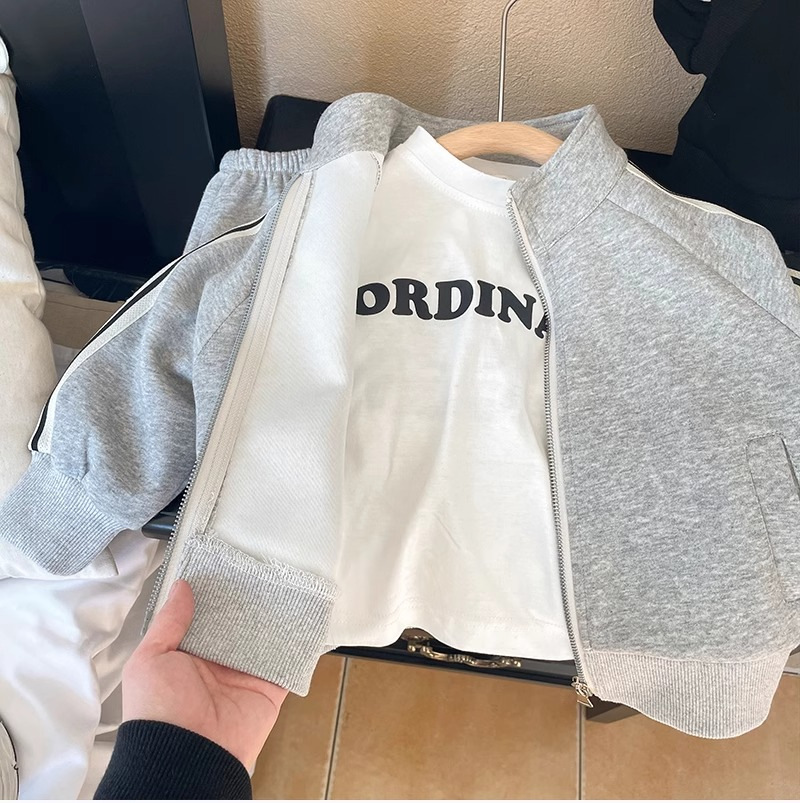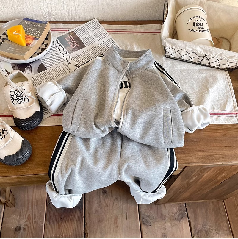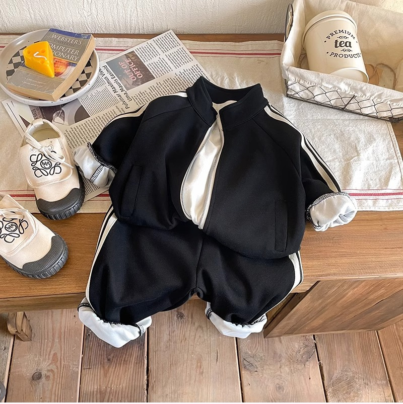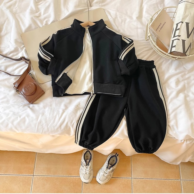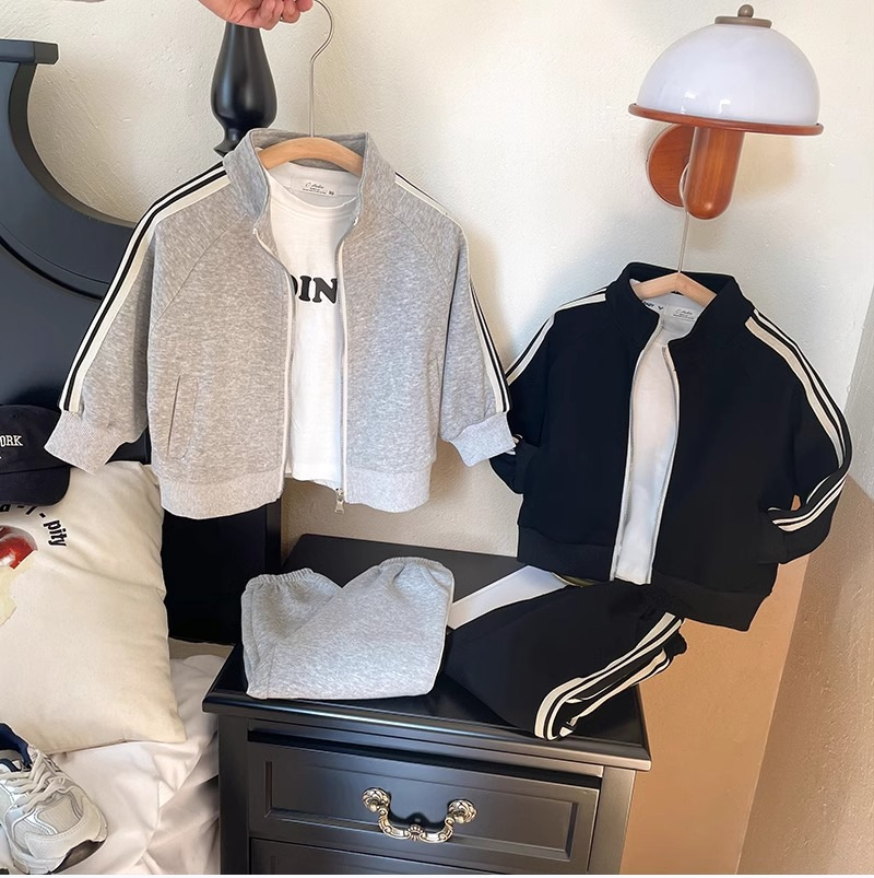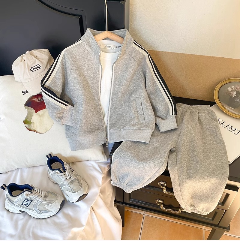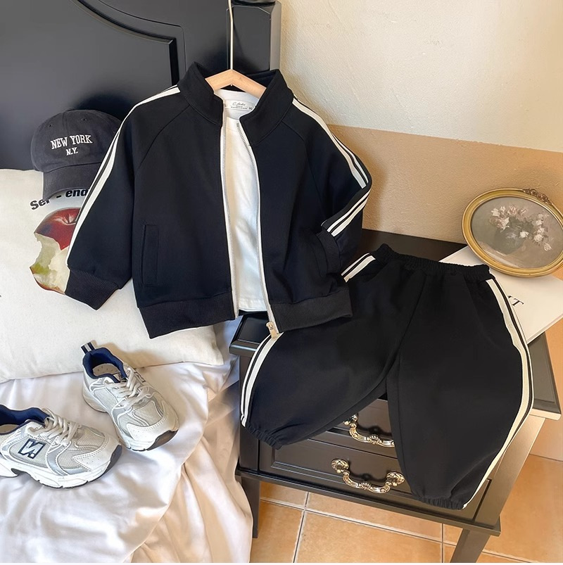 아동복 소년 봄과 가을 세트 2024 새로운 도착 어린이 남성 아기 한국 캐주얼 스포츠 재킷 운동복 2 피스 세트