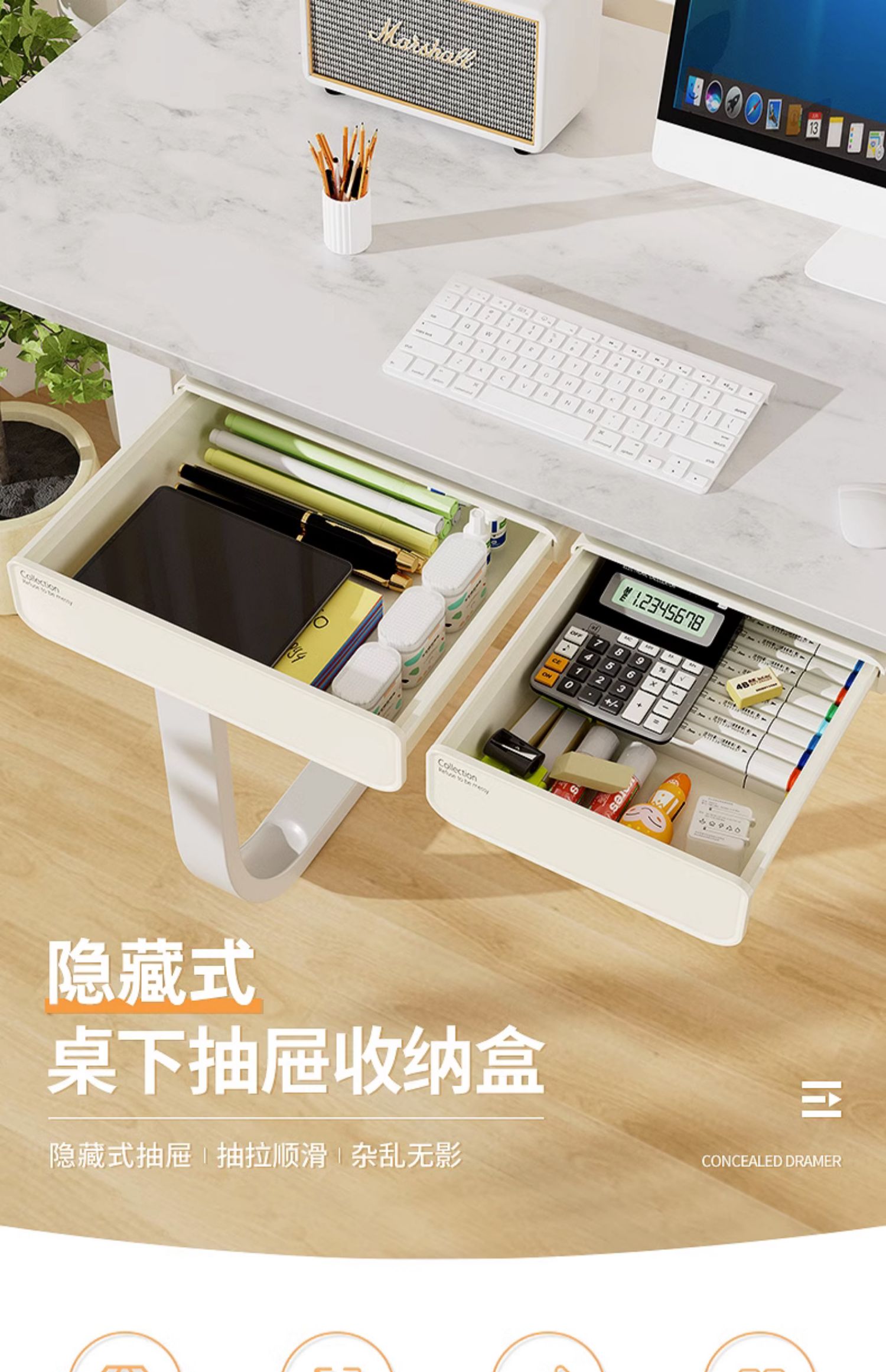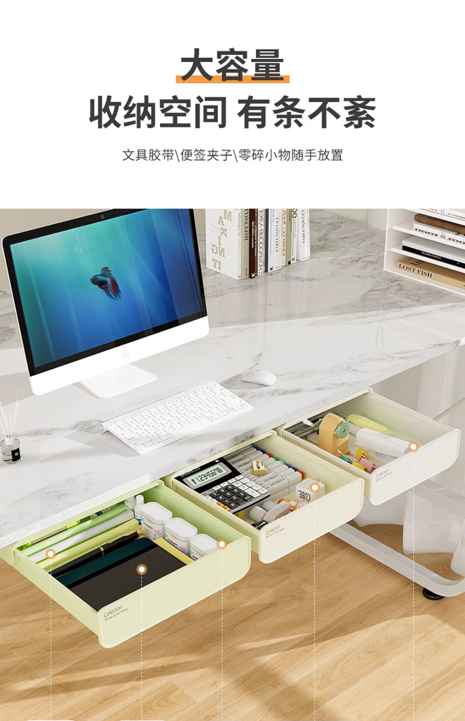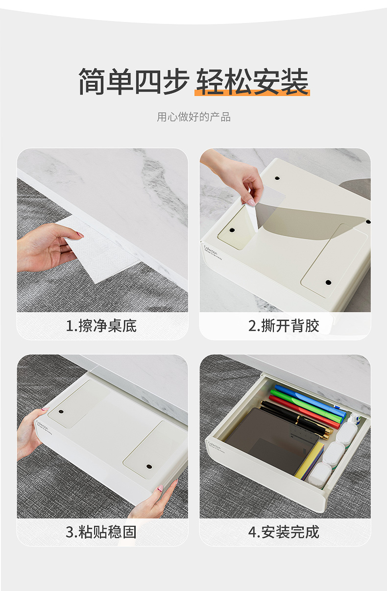 L5HM 테이블 아래 서랍 형 저장 상자 데스크탑 기숙사 책상 문구 마무리 상자 펀치 무료 숨겨진 신스토어 가기