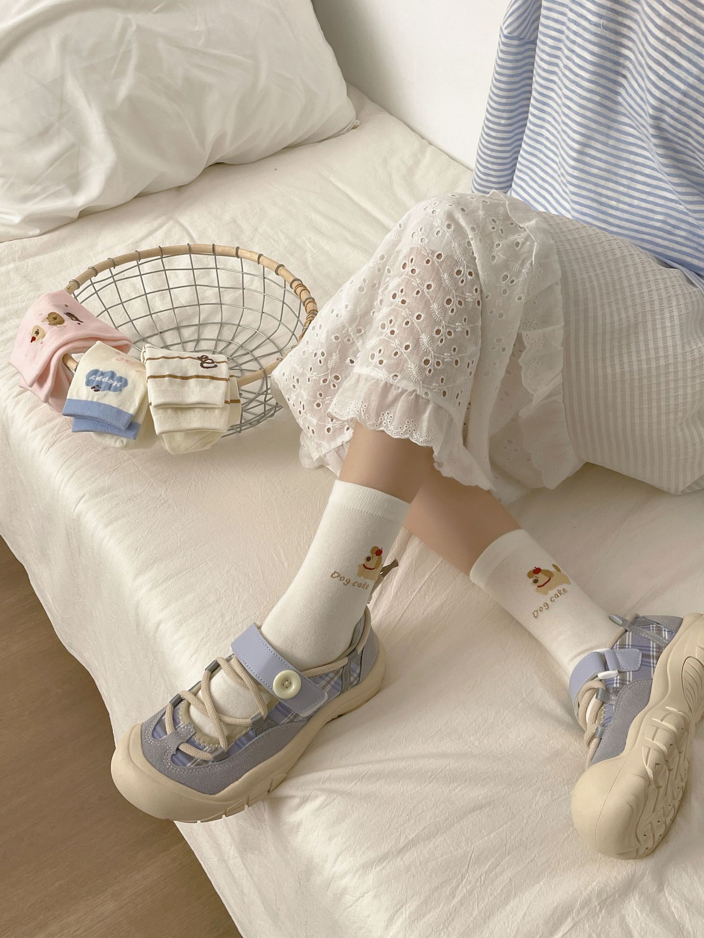 Carto 양말 어린이 가을과 겨울 새로운 귀여운 면 양말 땀 흡수성 일본 강아지 줄무늬 양말 Zhuji 도매스토어 가기