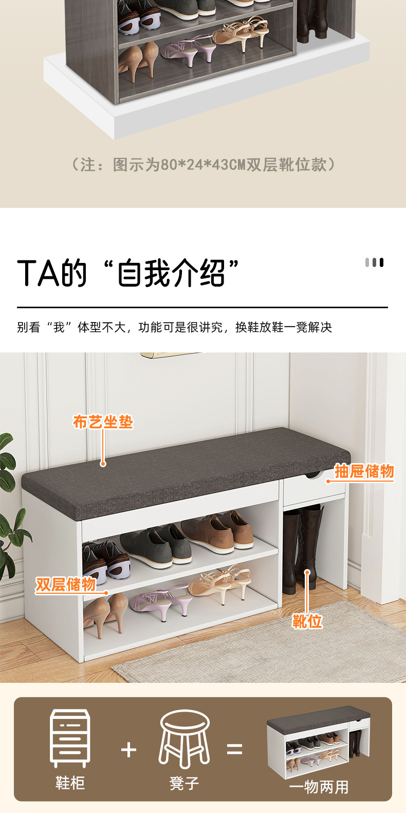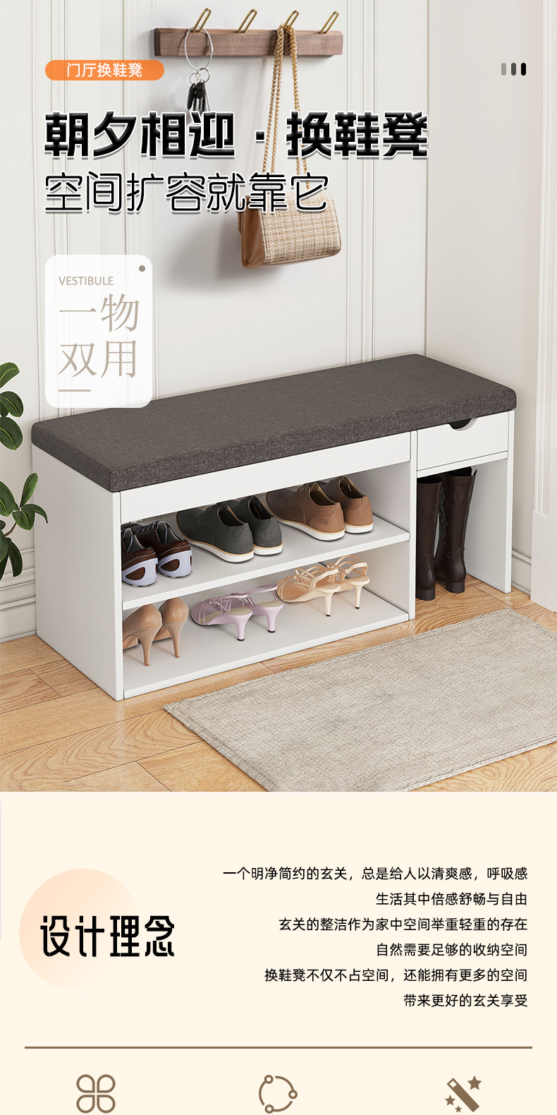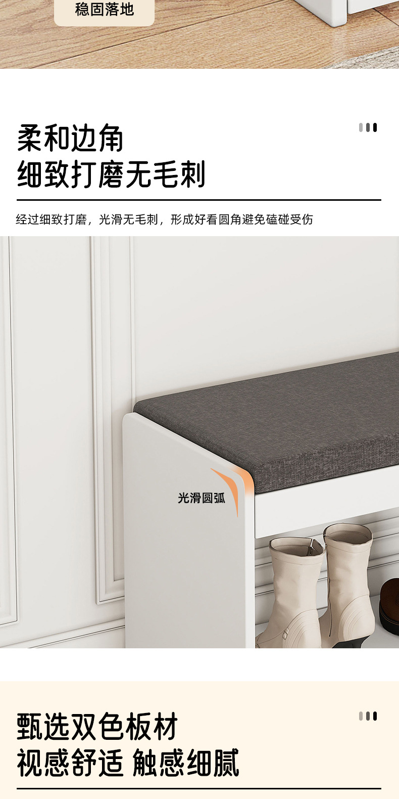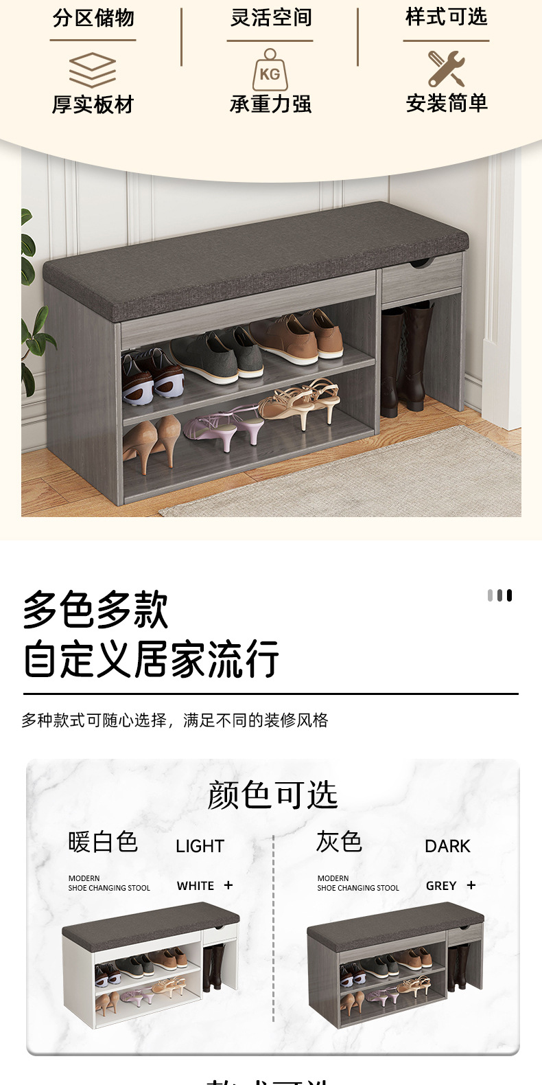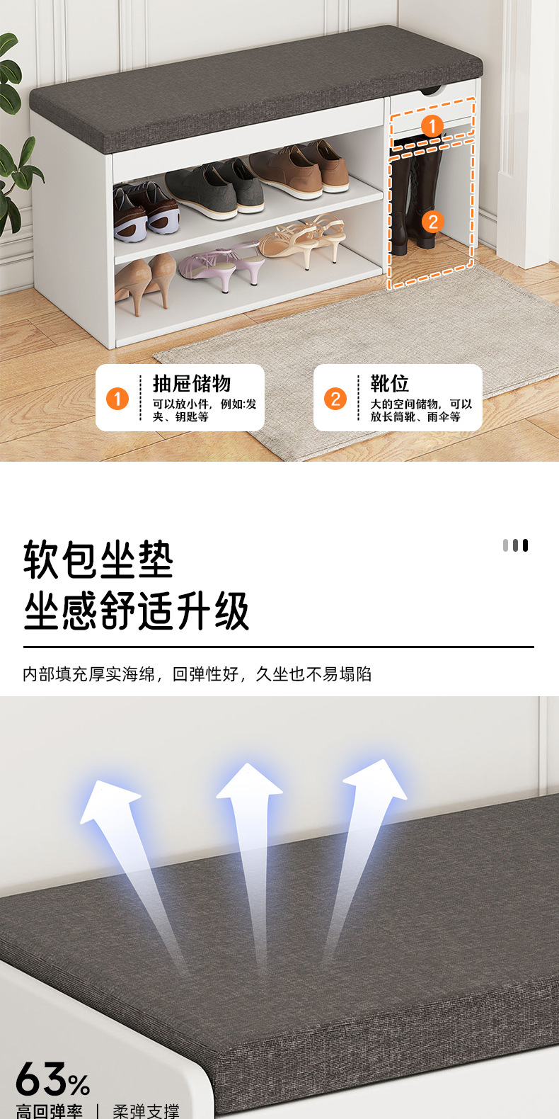 신발 교체용 스툴, 심플한 현관 수납 스툴, 소프트 쿠션, 신발장 겸용 긴 스툴, 현관 수납, 모던 심플 수납장