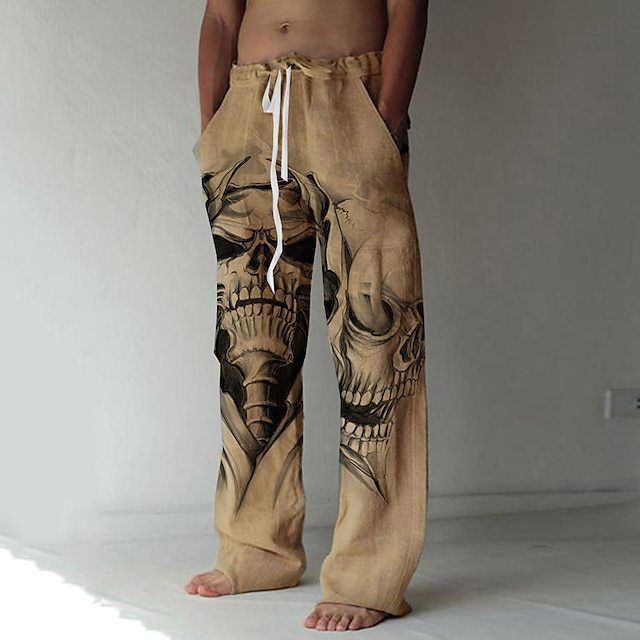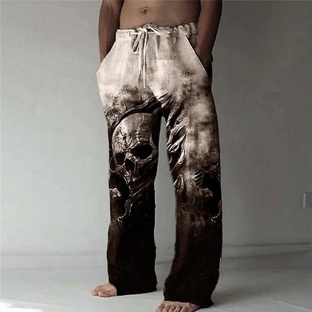 여름 유럽과 미국의 국경 간 남성 디지털 인쇄 청소년 중간 허리 일일 추상 3D 효과 남성의 긴 캐주얼 바지