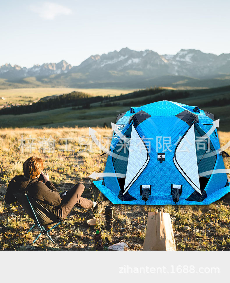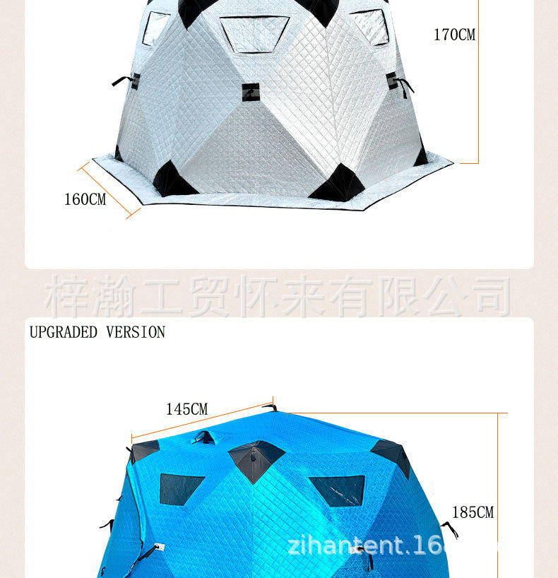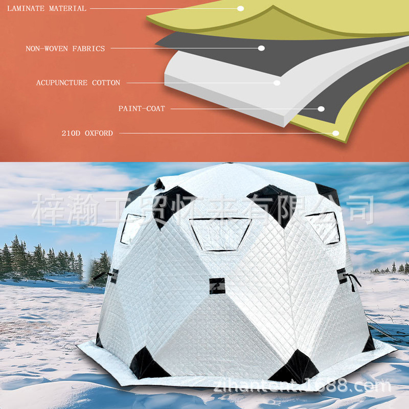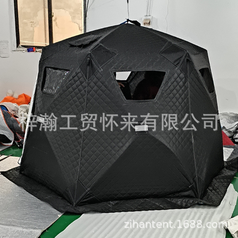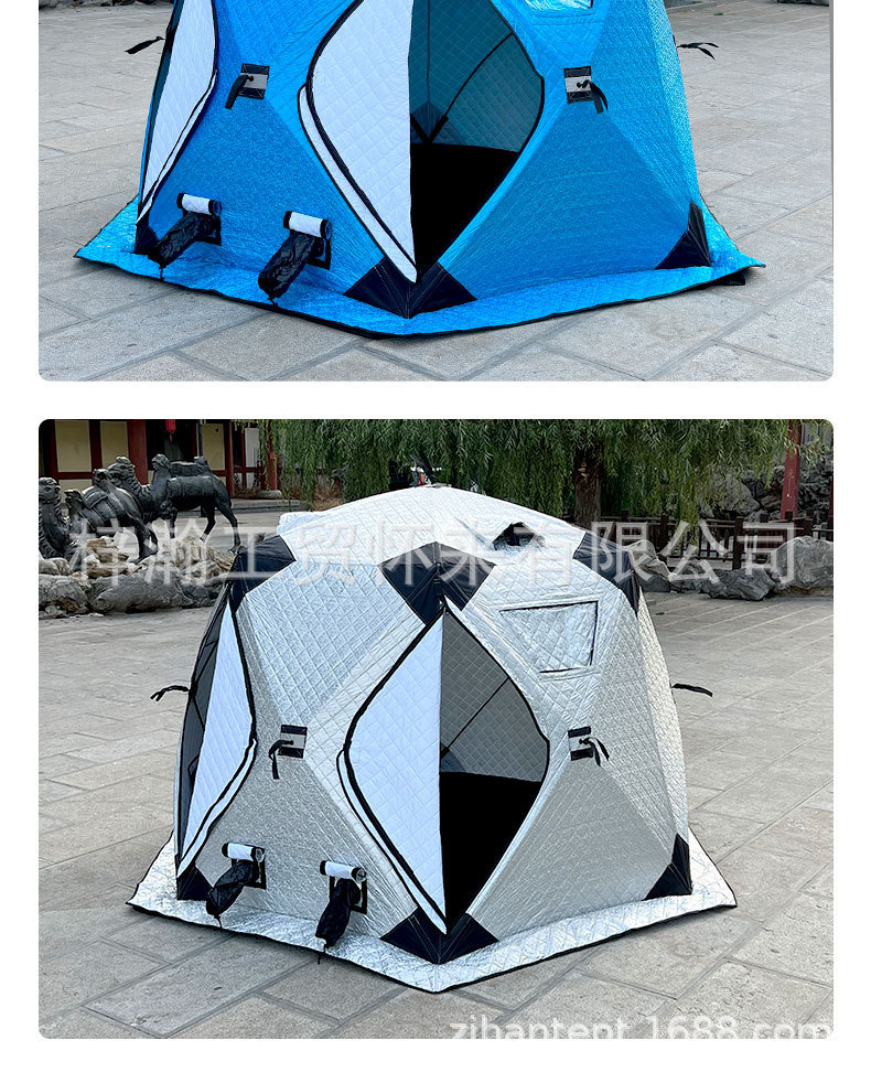따뜻한 차가운 얼음 낚시 텐트 만들기 쉬운 겨울 야외 두꺼운 필름 텐트 완전 자동 빠른 오프닝 육각형 텐트