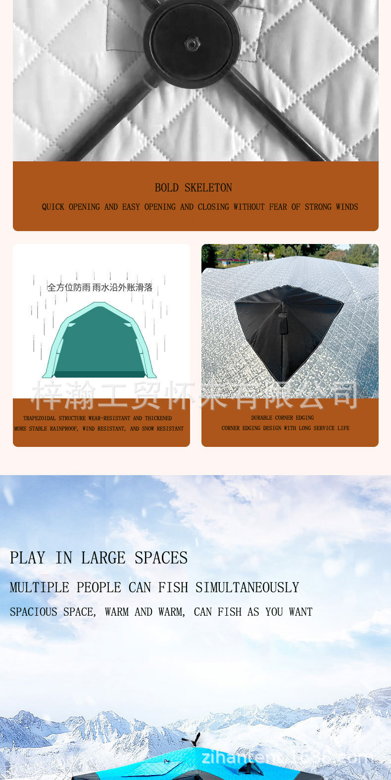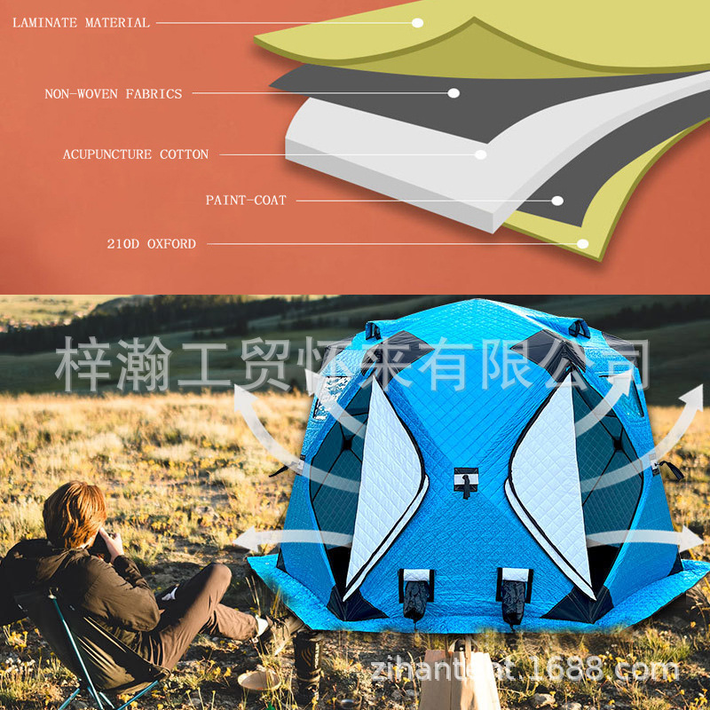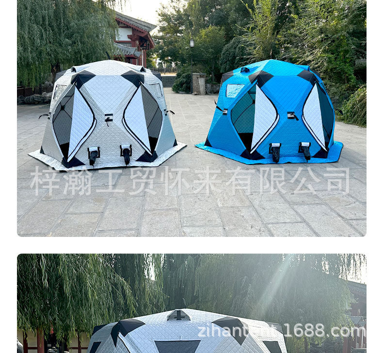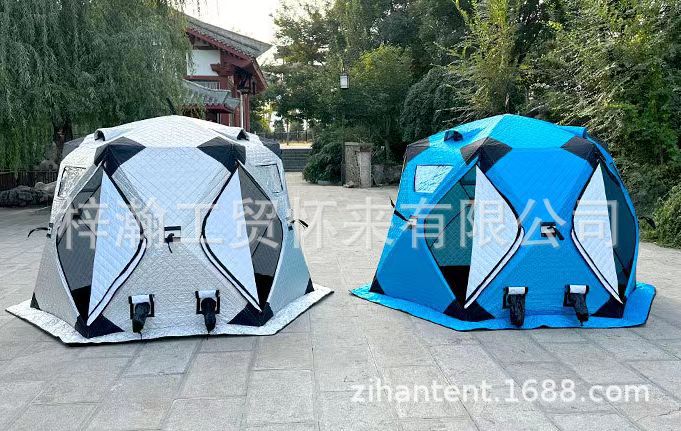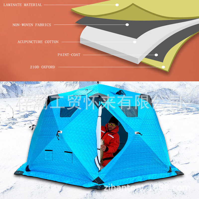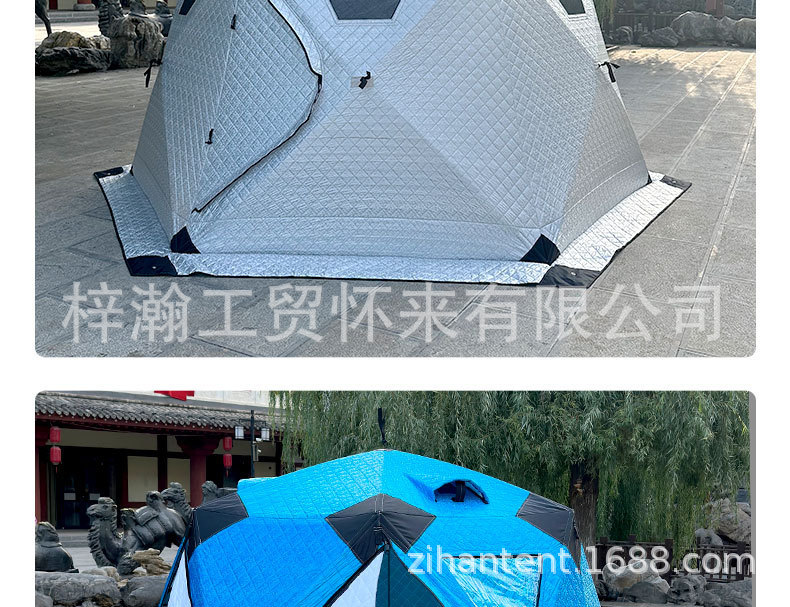 따뜻한 차가운 얼음 낚시 텐트 만들기 쉬운 겨울 야외 두꺼운 필름 텐트 완전 자동 빠른 오프닝 육각형 텐트