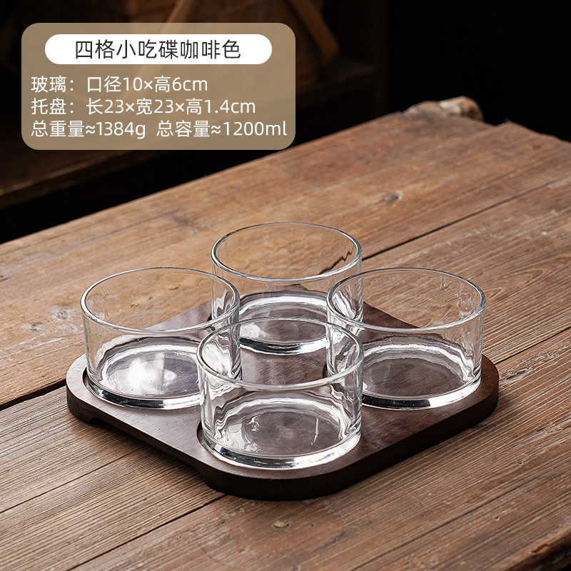 • 큰 그릇 4칸 어두운 나무 색상