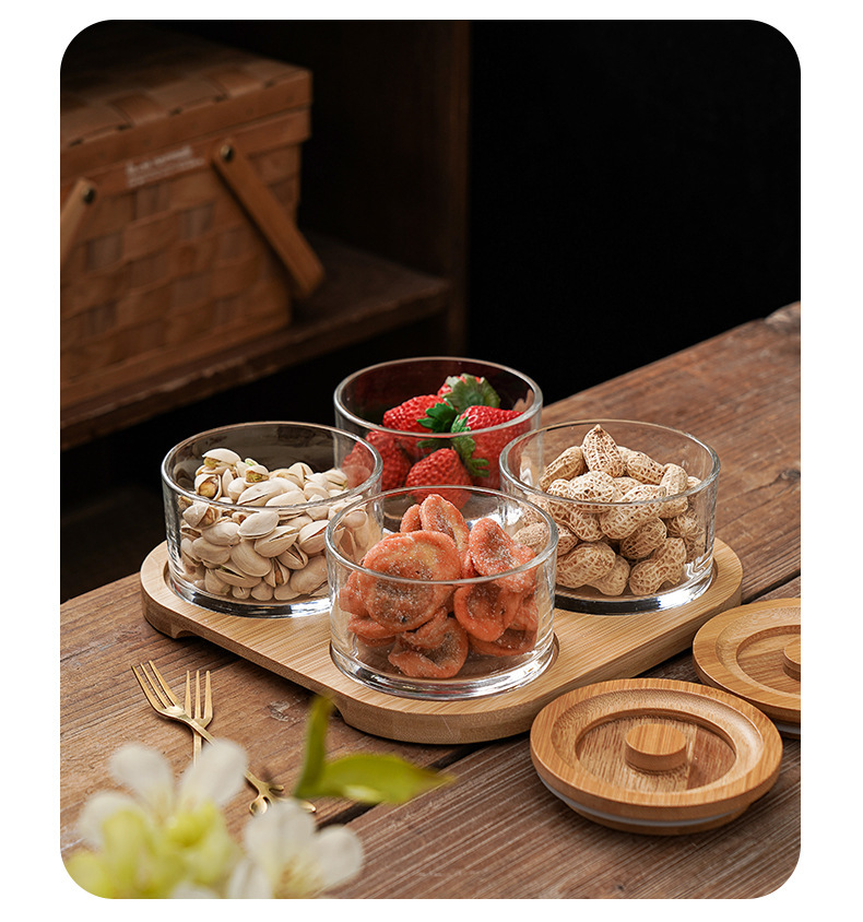 티룸용 과일, 멜론씨, 간식, 스낵 등을 담을 수 있는 뚜껑이 있는 분리형 과일 접시, 방습 차 보관용기, 탁상용