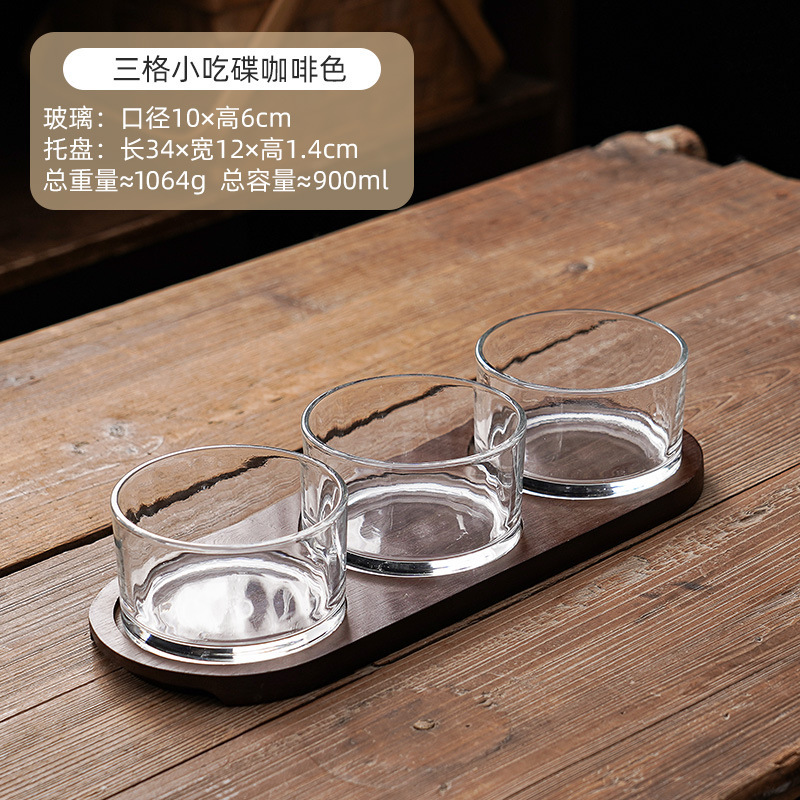 • 큰 그릇 3칸 어두운 나무 색상