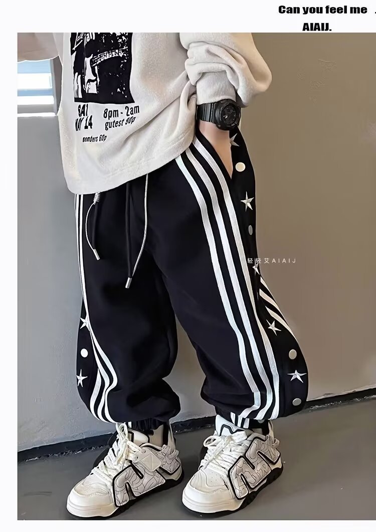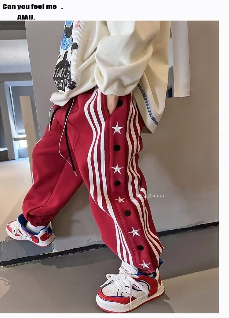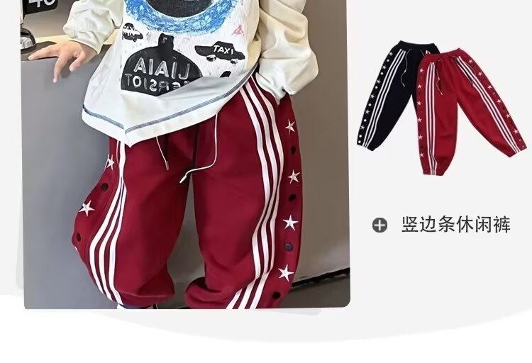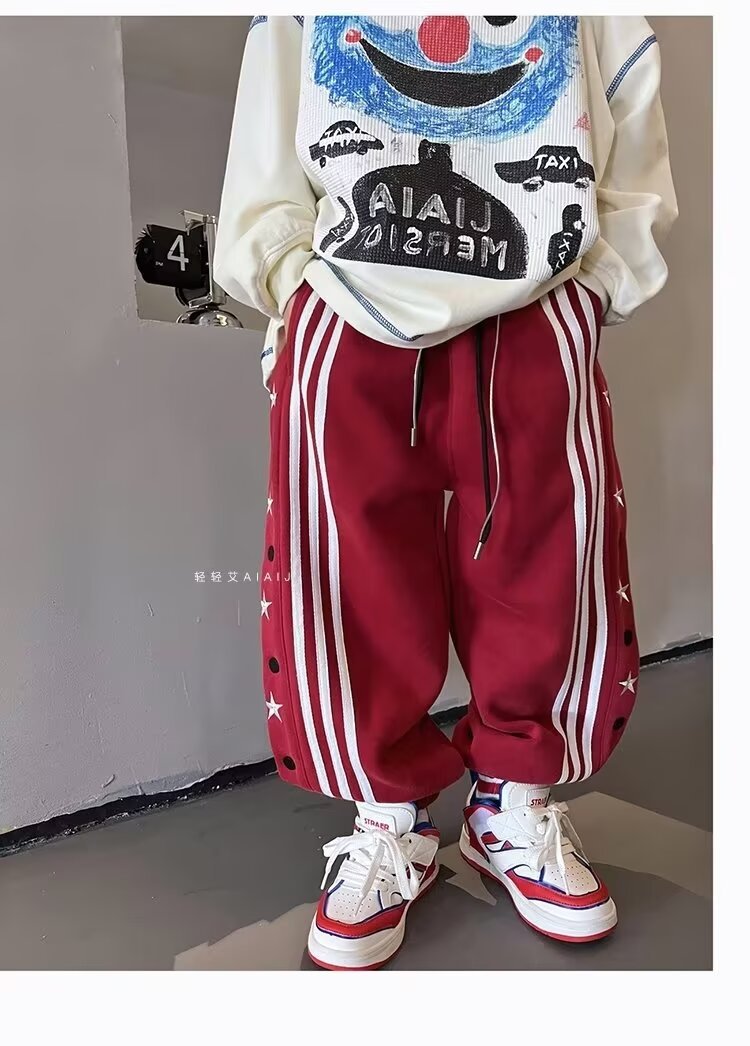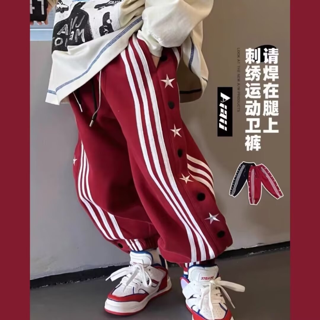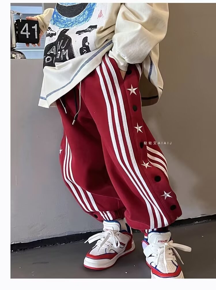 소년 소녀 가을 겨울 바지 2024 유행 어린이 국가 유행 미국 레트로 스포츠 바지 스타 자수 버클 스웨트 팬츠스토어 가기