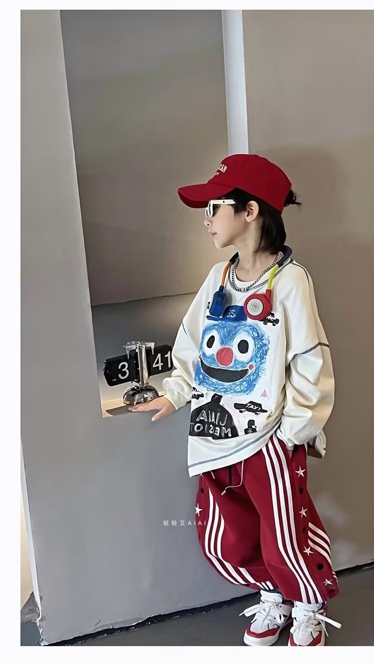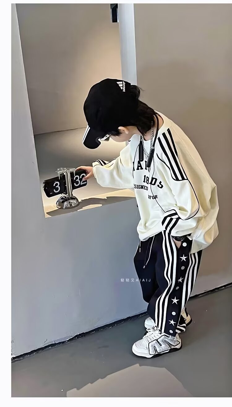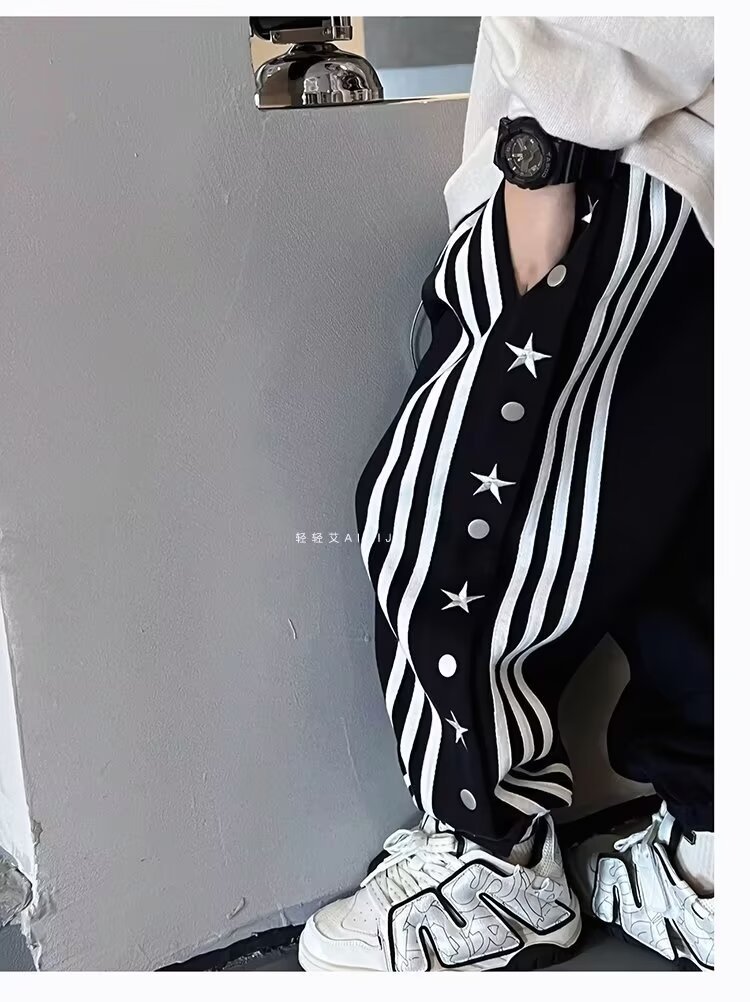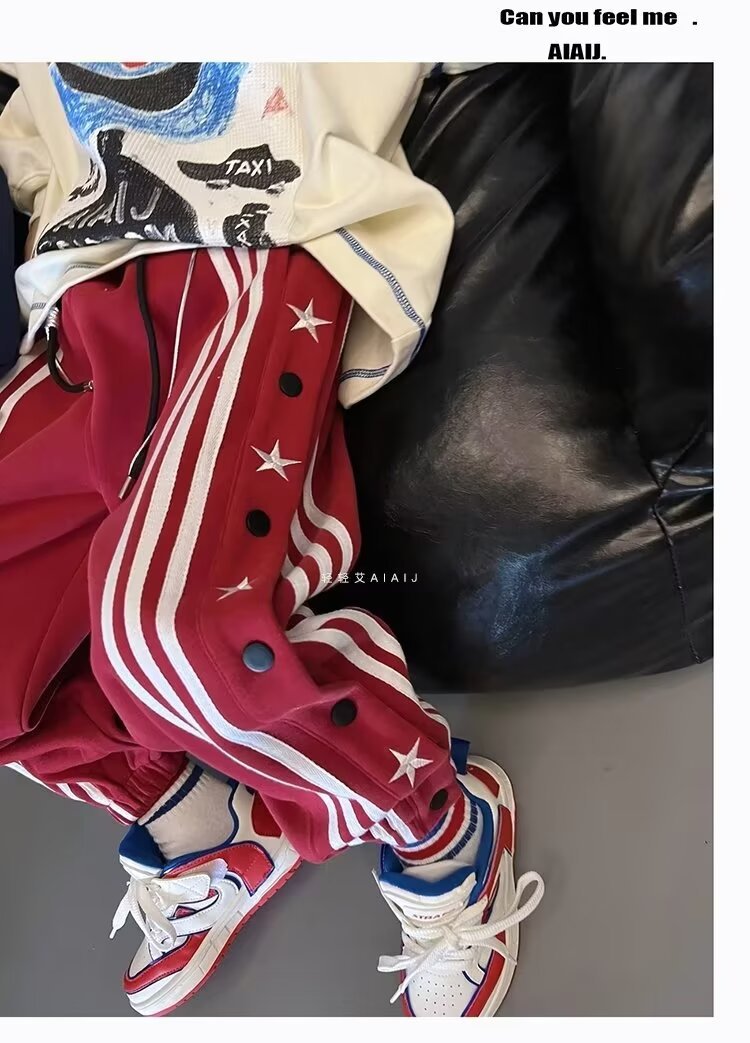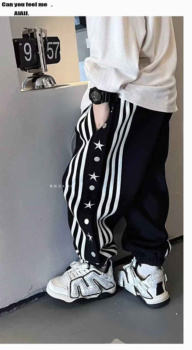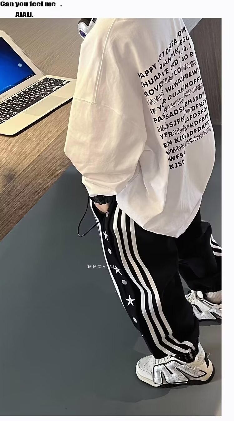 소년 소녀 가을 겨울 바지 2024 유행 어린이 국가 유행 미국 레트로 스포츠 바지 스타 자수 버클 스웨트 팬츠스토어 가기