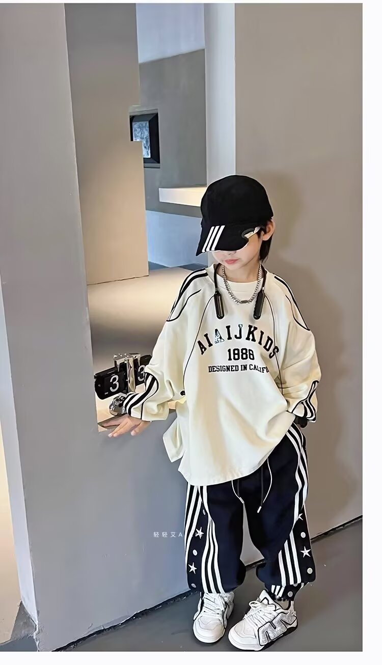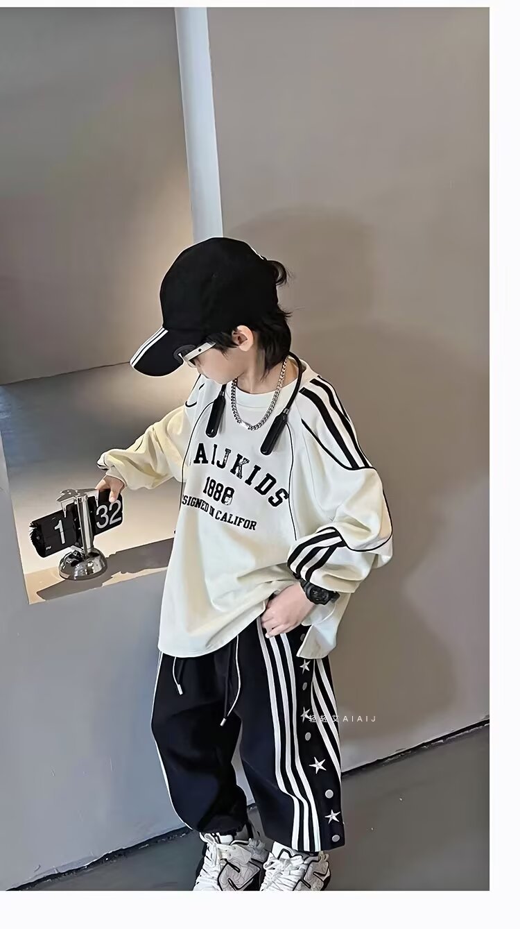 소년 소녀 가을 겨울 바지 2024 유행 어린이 국가 유행 미국 레트로 스포츠 바지 스타 자수 버클 스웨트 팬츠