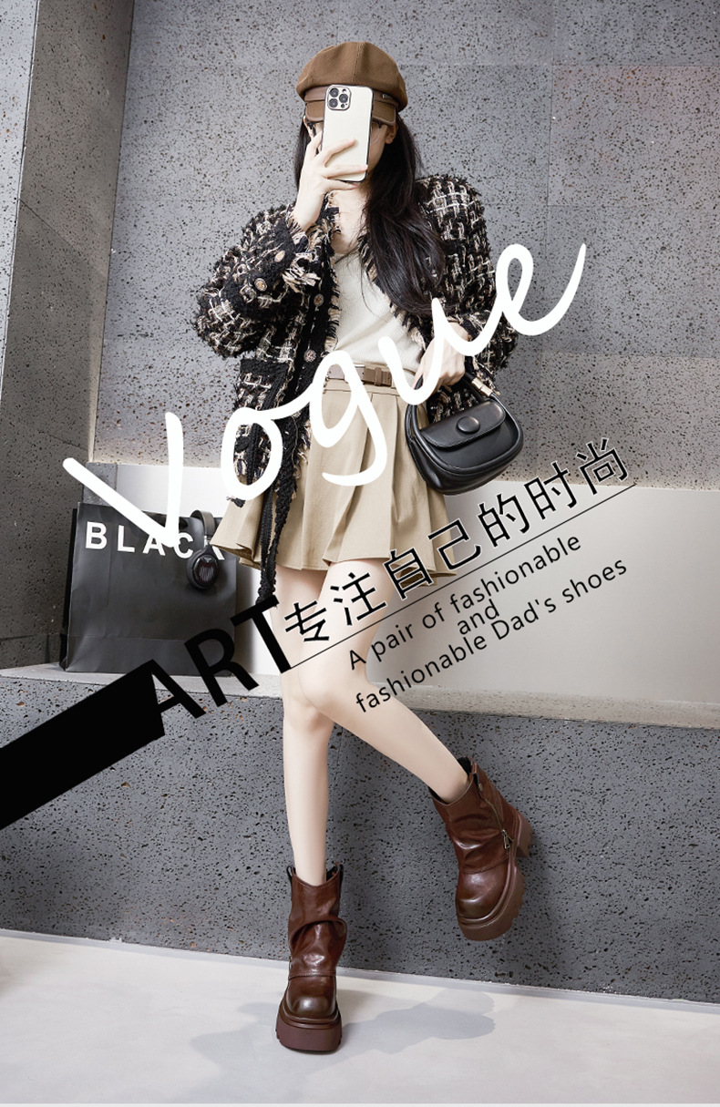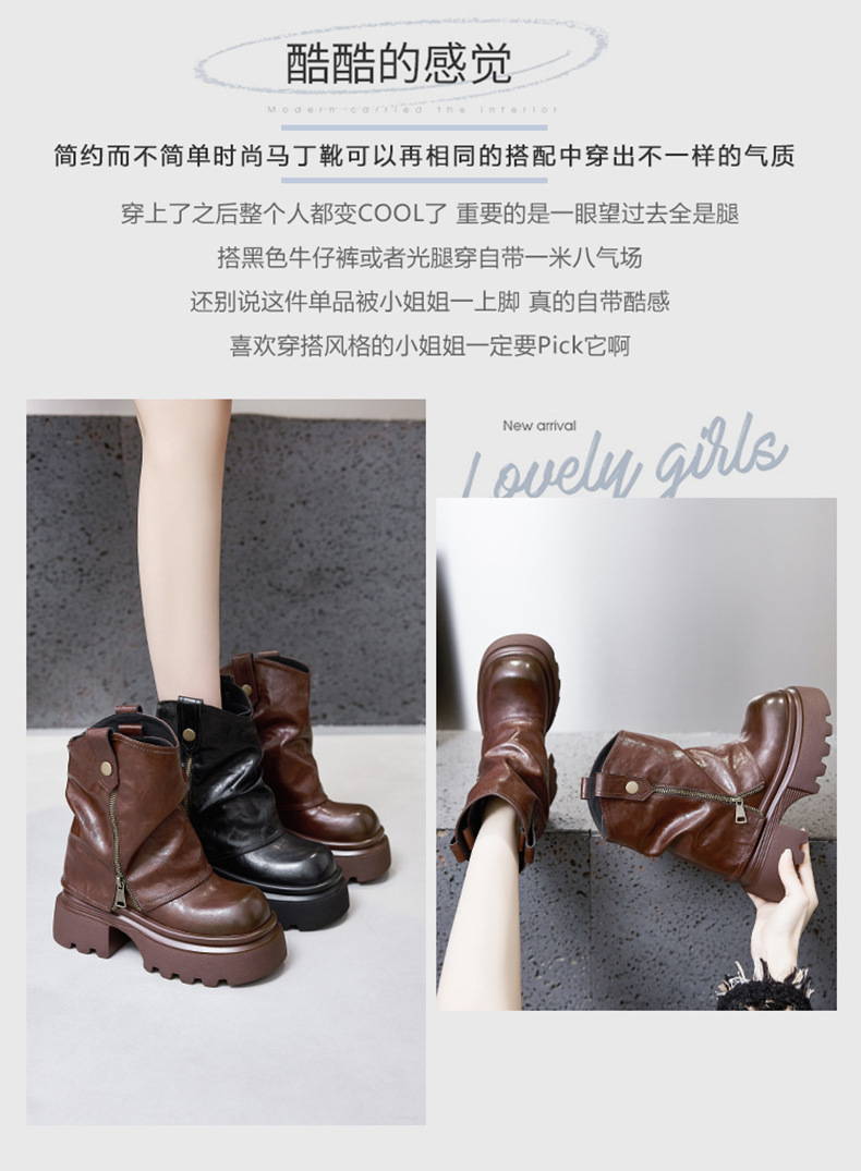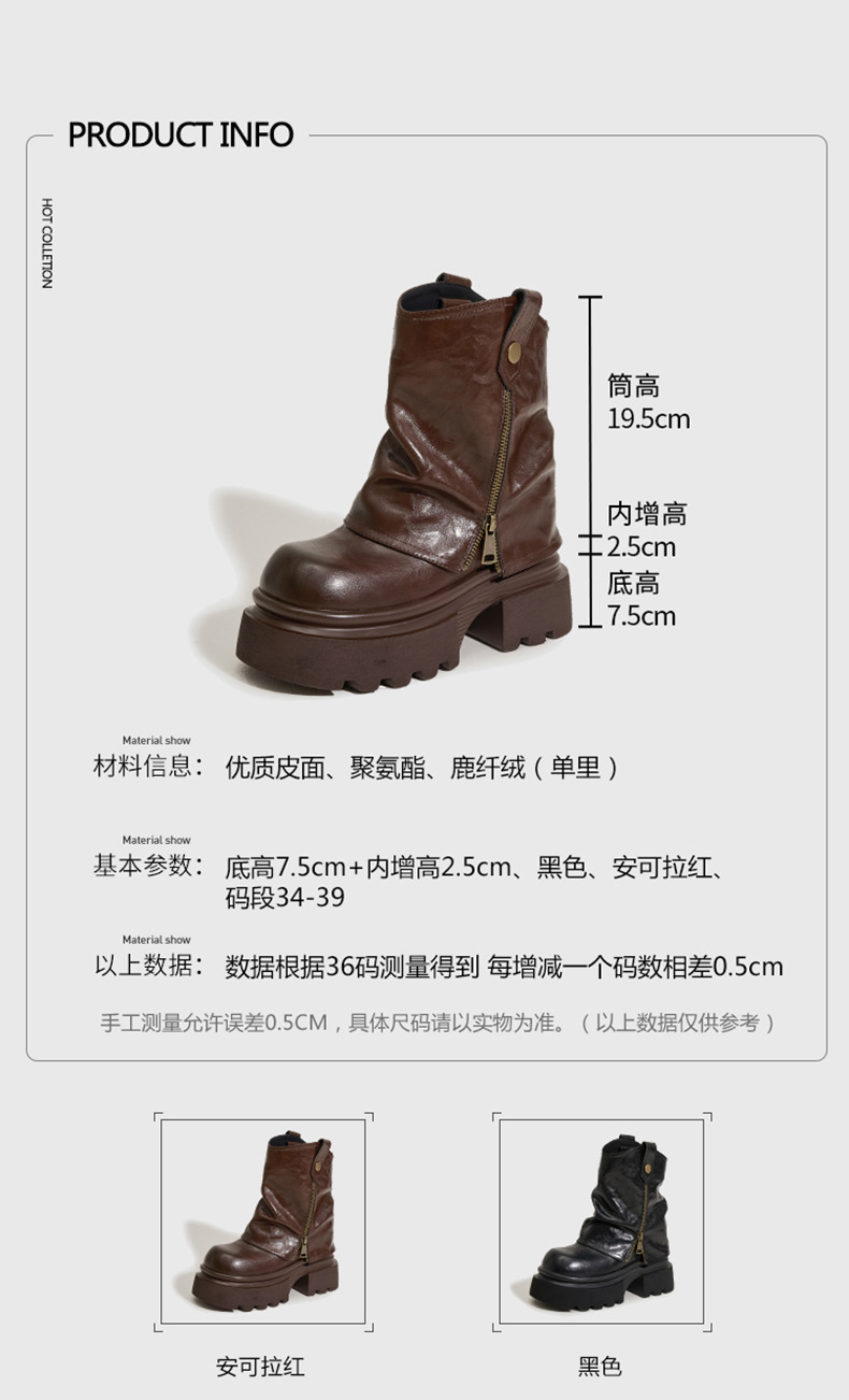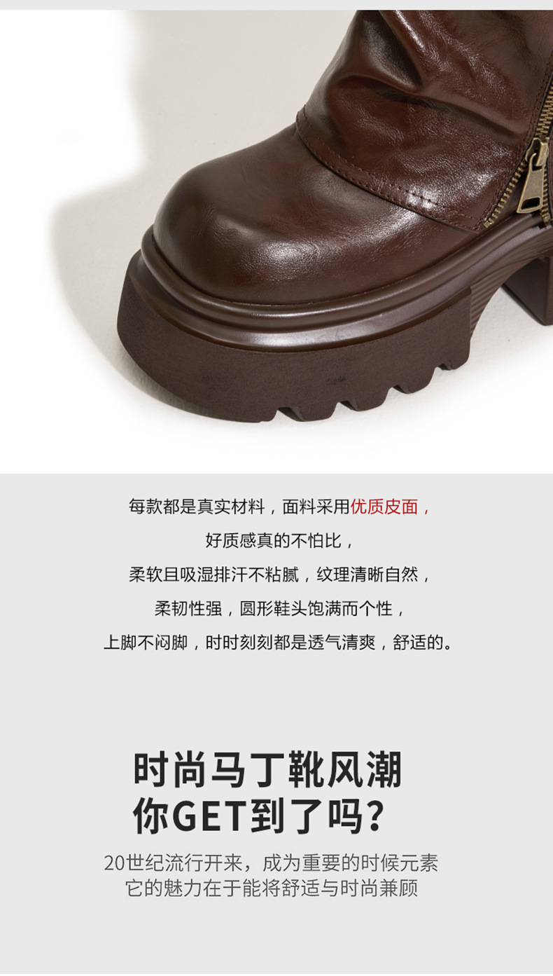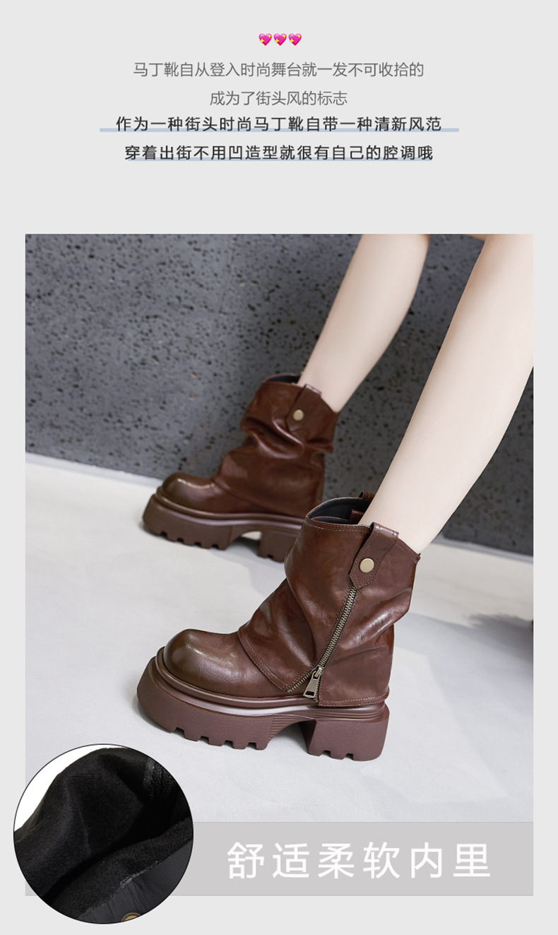 여성용 두꺼운 밑창 마틴 부츠 2025 가을 겨울 신상 슬립온 미드카프 숏부츠, 내부 키높이 팬츠 부츠, 영국 스타일 침연부츠스토어 가기