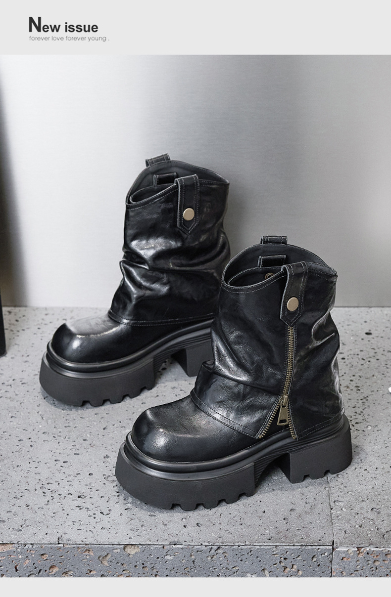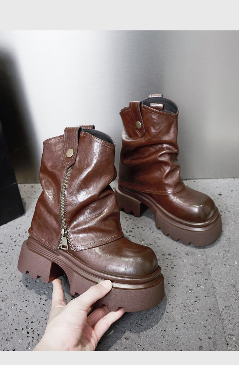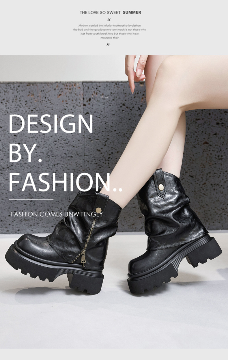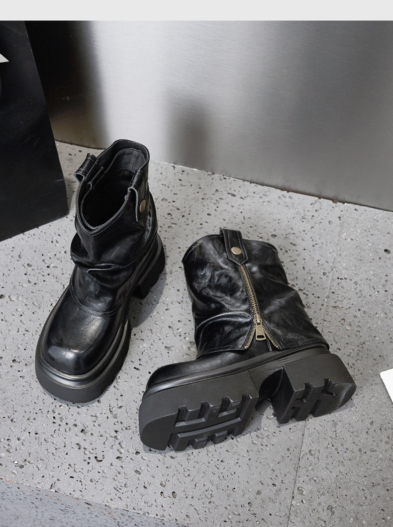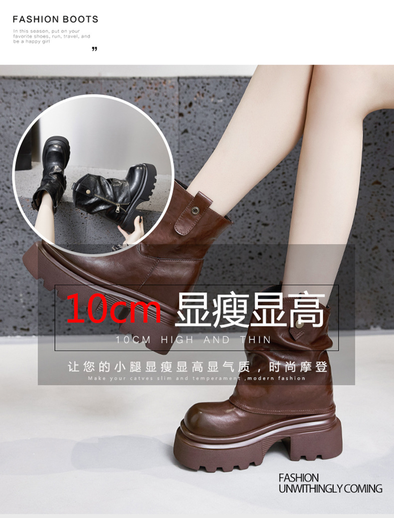여성용 두꺼운 밑창 마틴 부츠 2025 가을 겨울 신상 슬립온 미드카프 숏부츠, 내부 키높이 팬츠 부츠, 영국 스타일 침연부츠스토어 가기