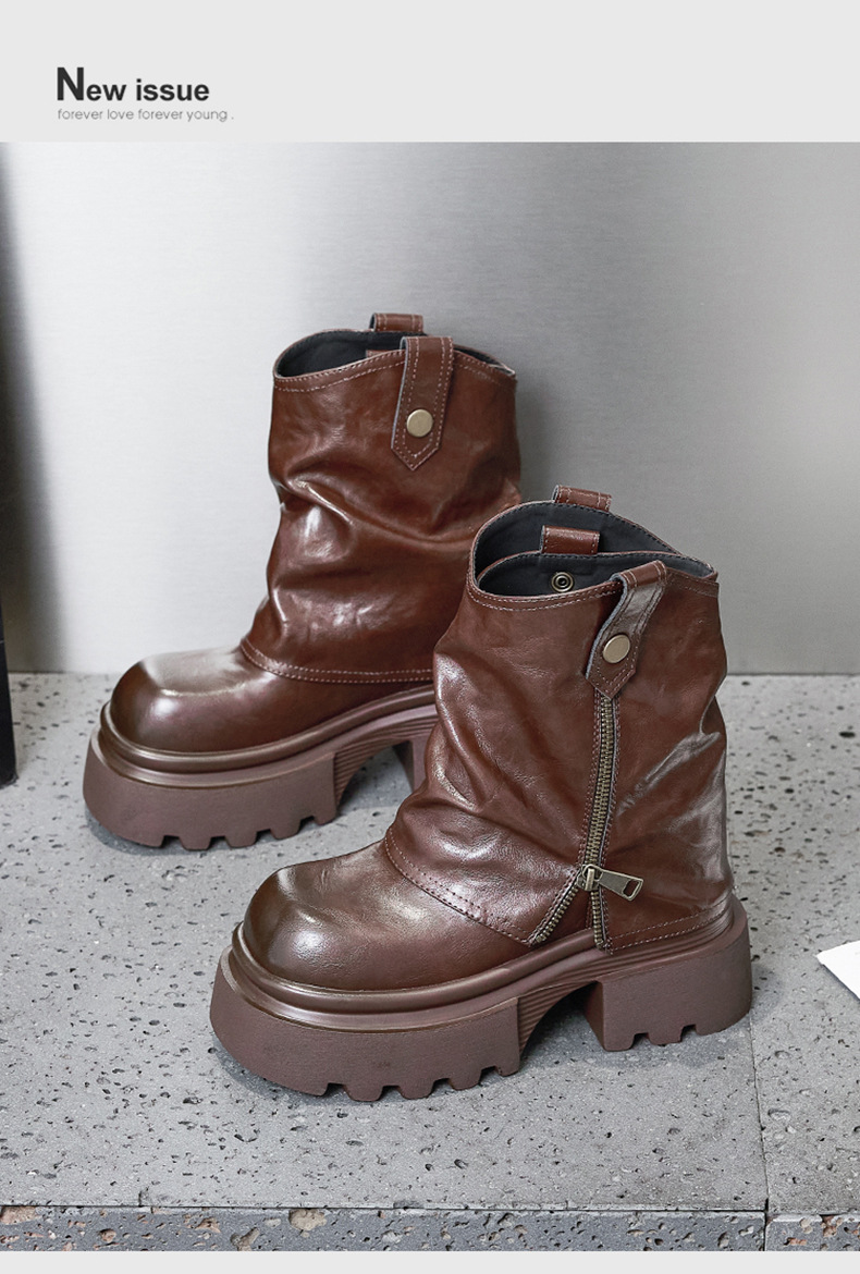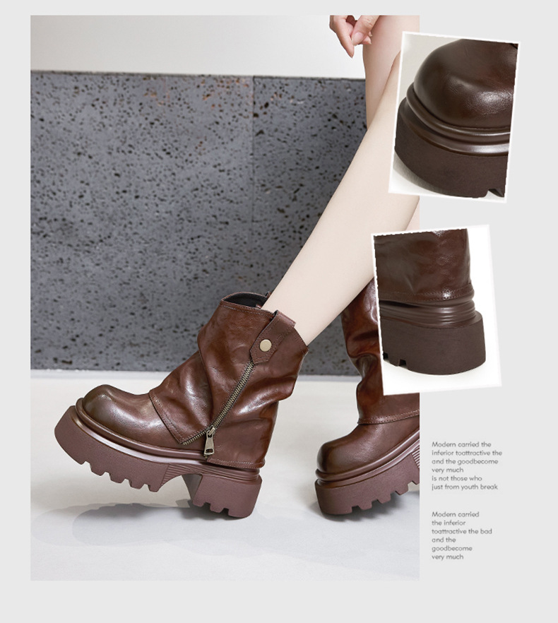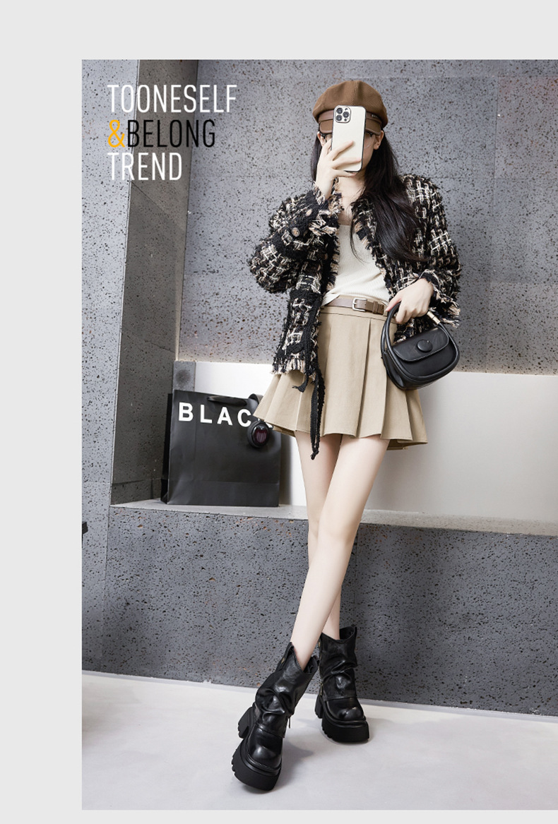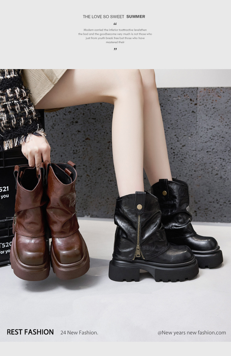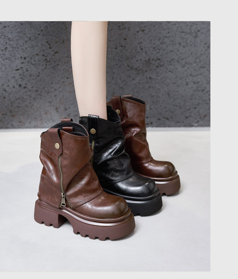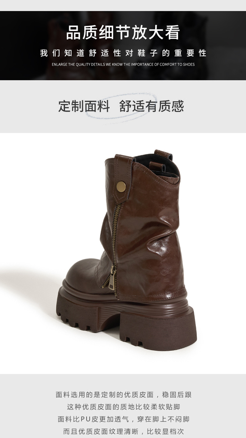 여성용 두꺼운 밑창 마틴 부츠 2025 가을 겨울 신상 슬립온 미드카프 숏부츠, 내부 키높이 팬츠 부츠, 영국 스타일 침연부츠스토어 가기