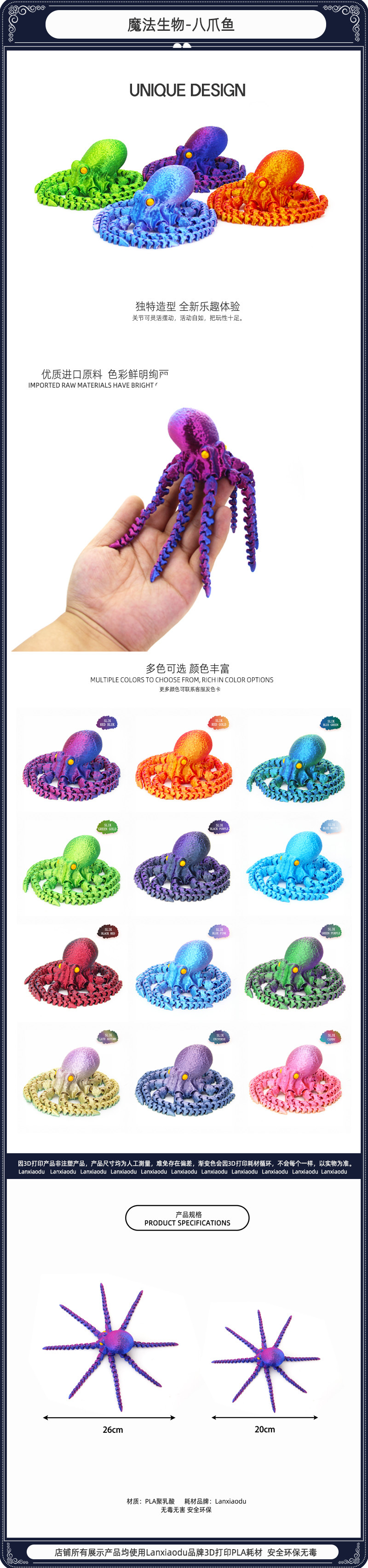 3D 인쇄 문어 손가락 인형 폭발 심해 문어 활동 공동 오징어 장식품 매점 뜨거운 판매 장난감스토어 가기