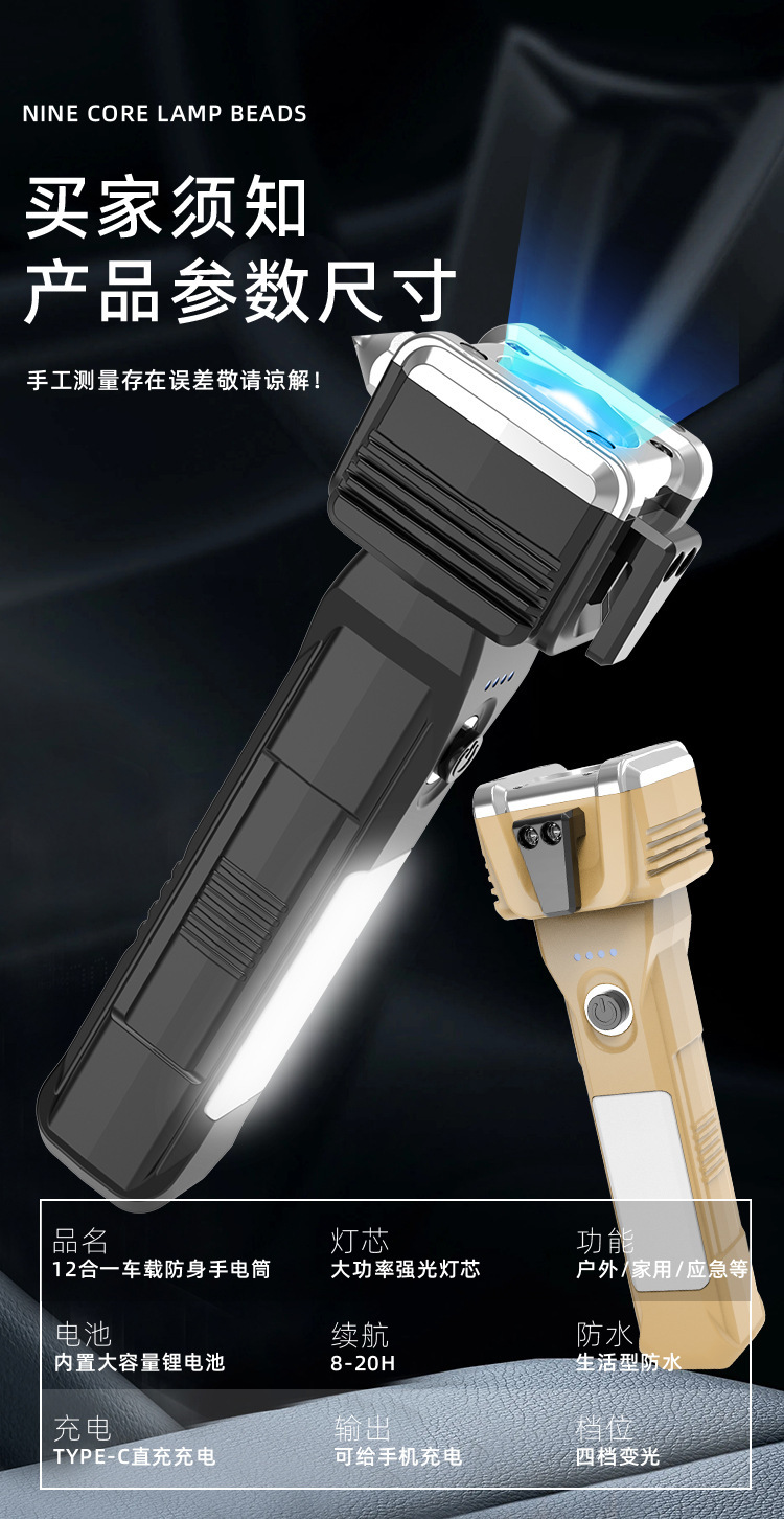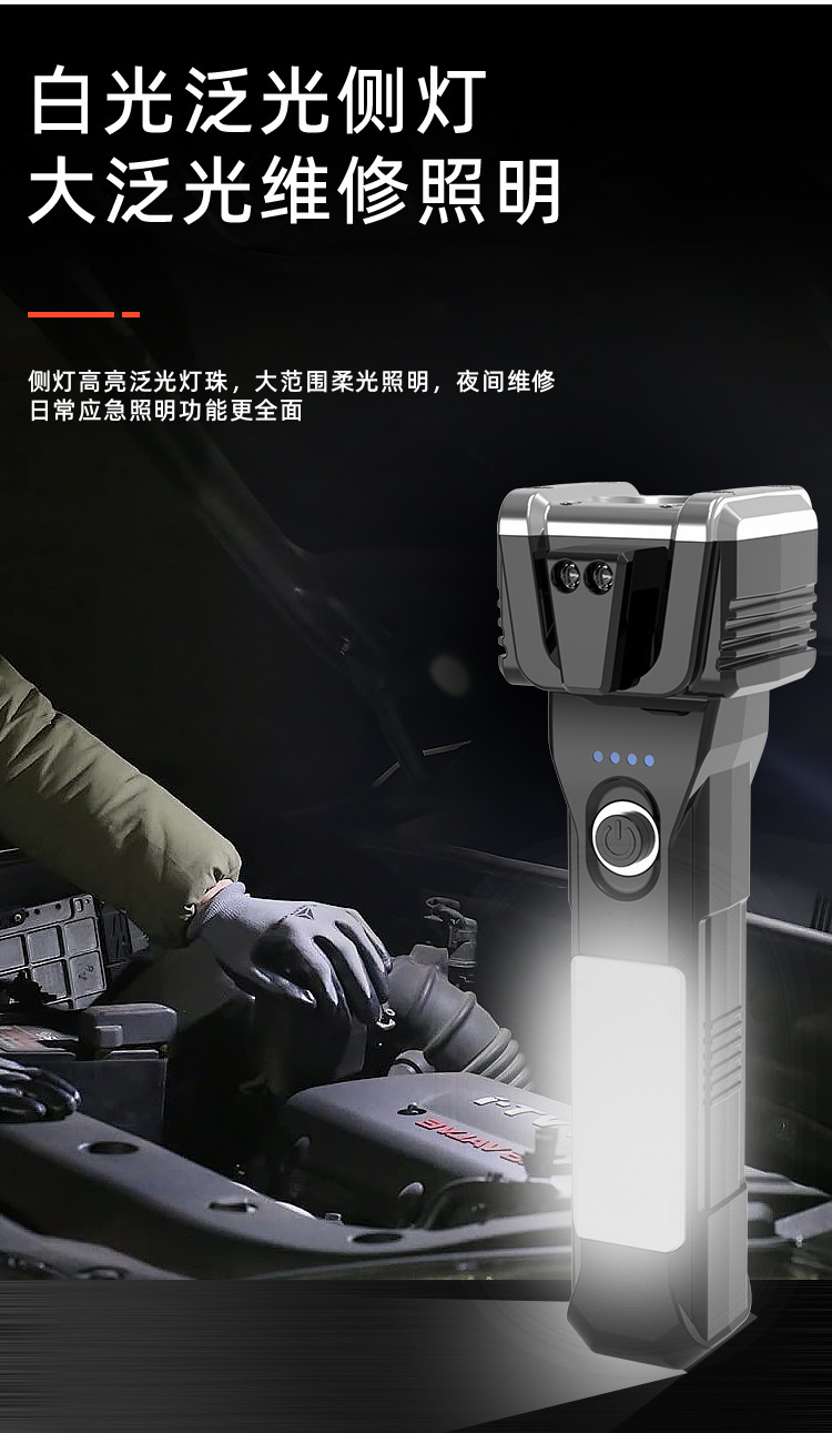 LED 강광 손전등, 초강력 장거리 충전식 창문 파괴용 망치, 강력 자석 자동차 수리용 램프, 휴대용 장시간 사용 가능한 작업등스토어 가기