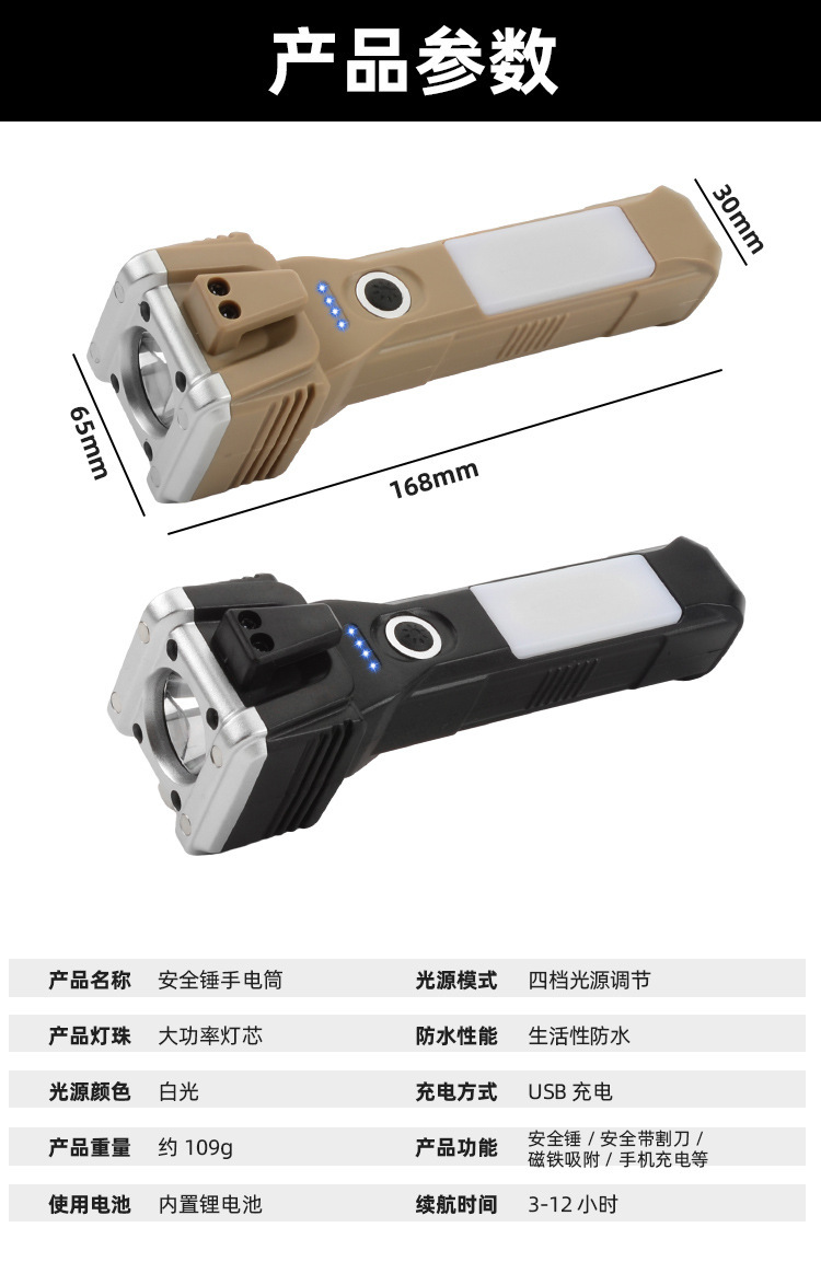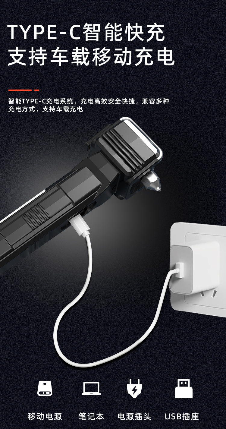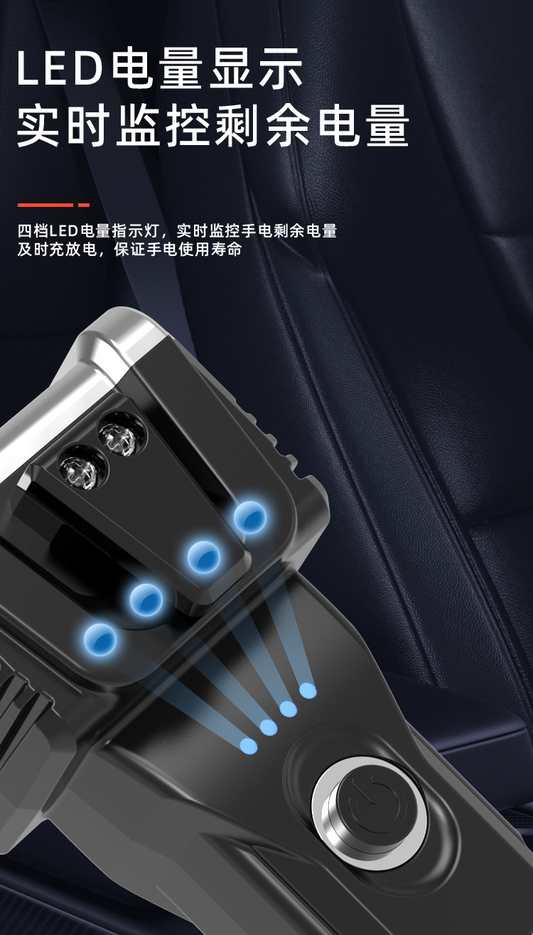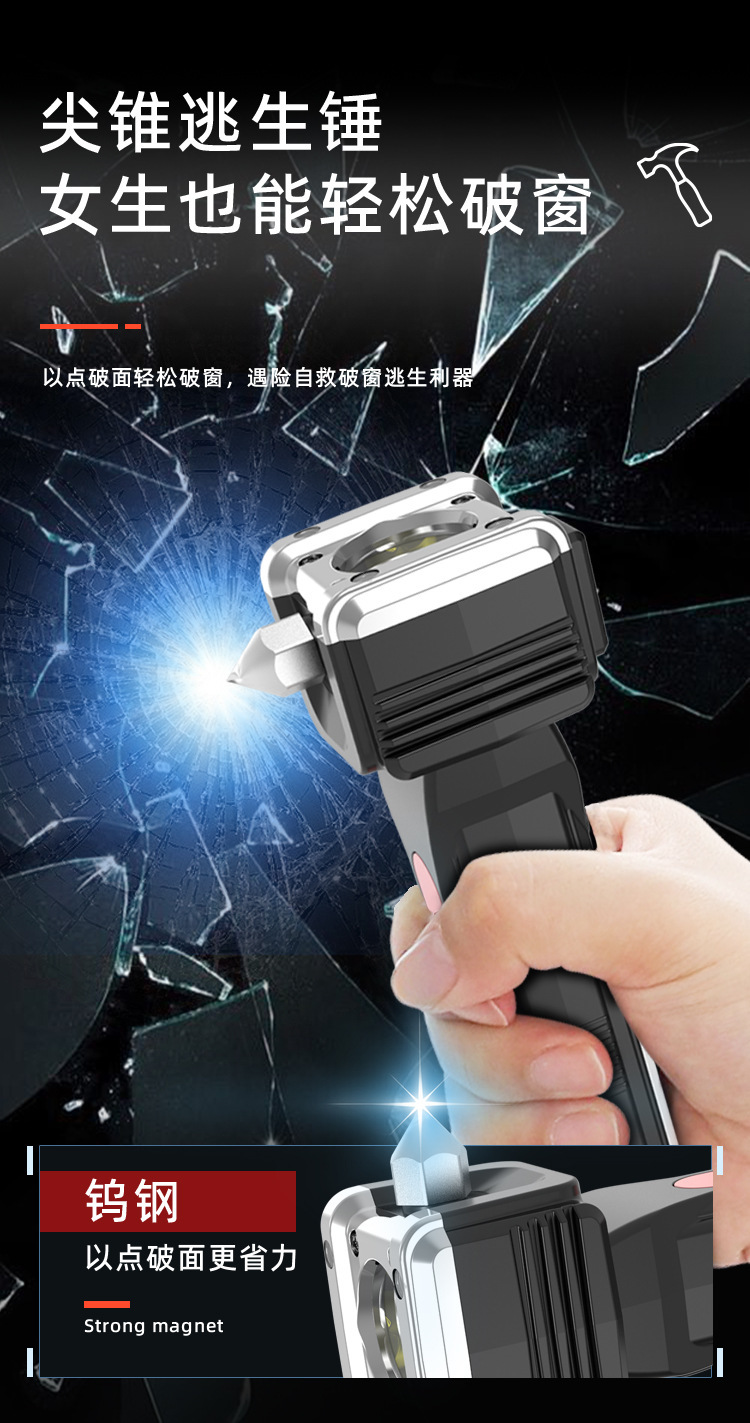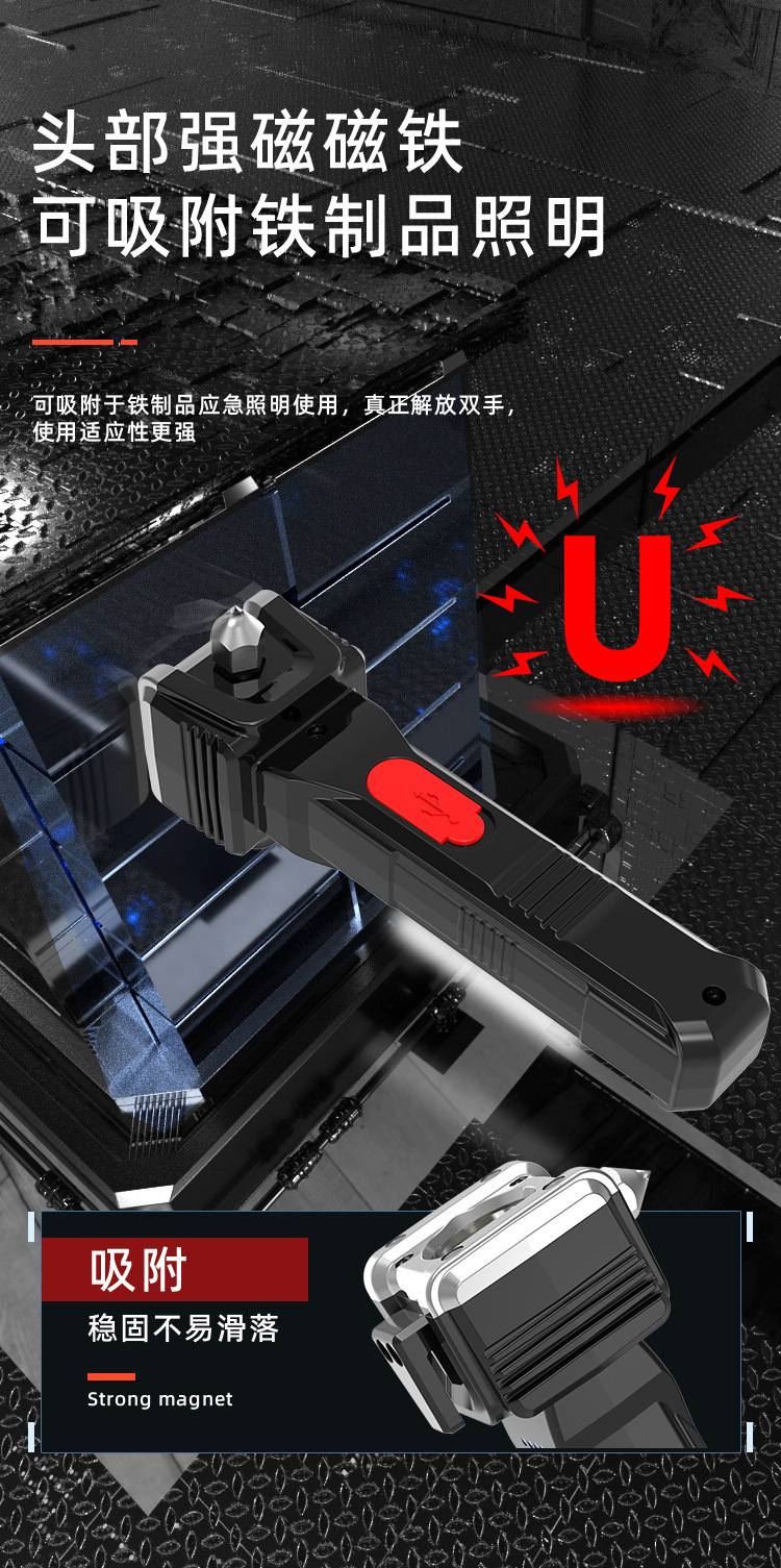 LED 강광 손전등, 초강력 장거리 충전식 창문 파괴용 망치, 강력 자석 자동차 수리용 램프, 휴대용 장시간 사용 가능한 작업등