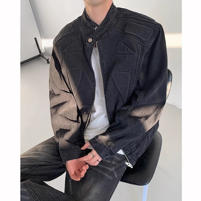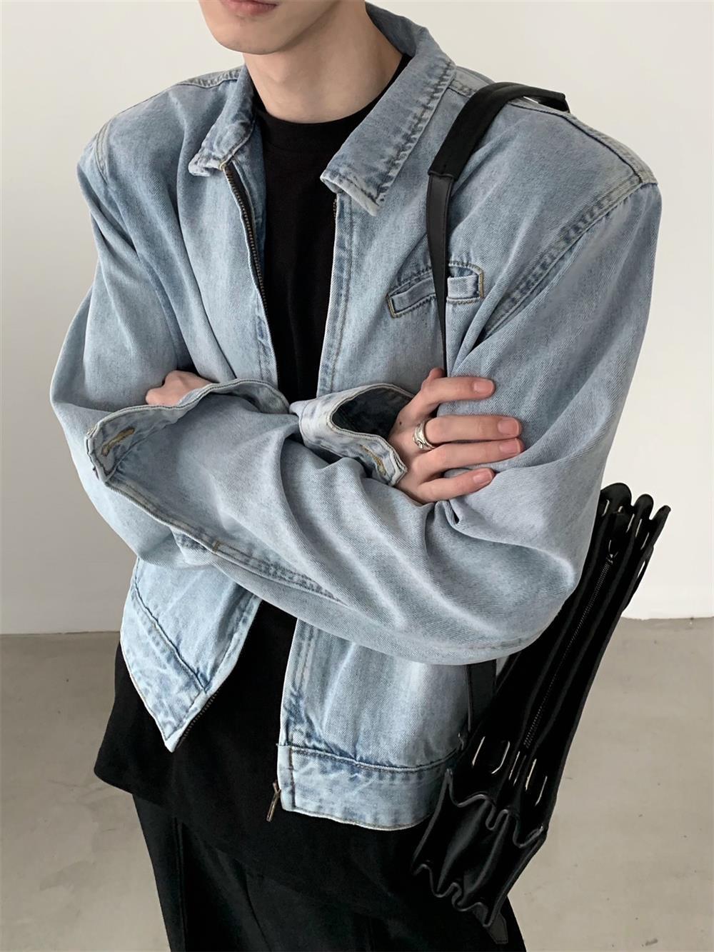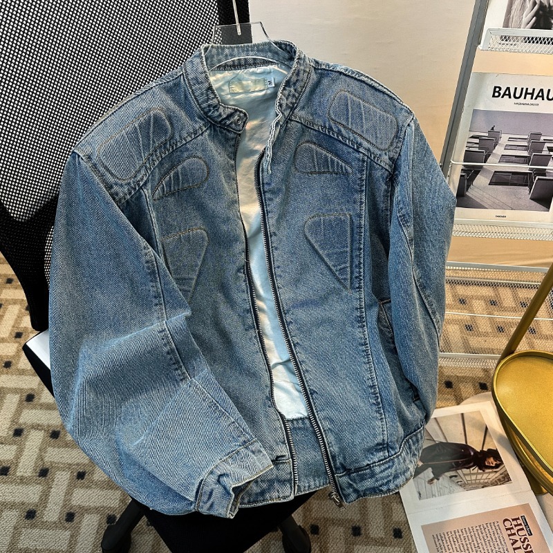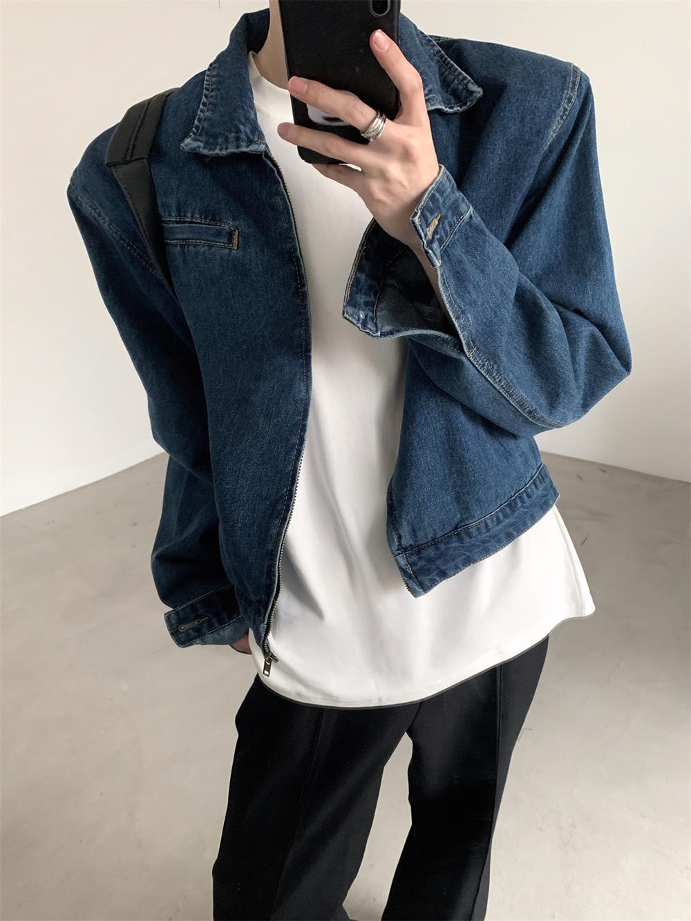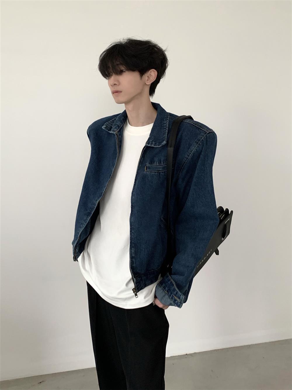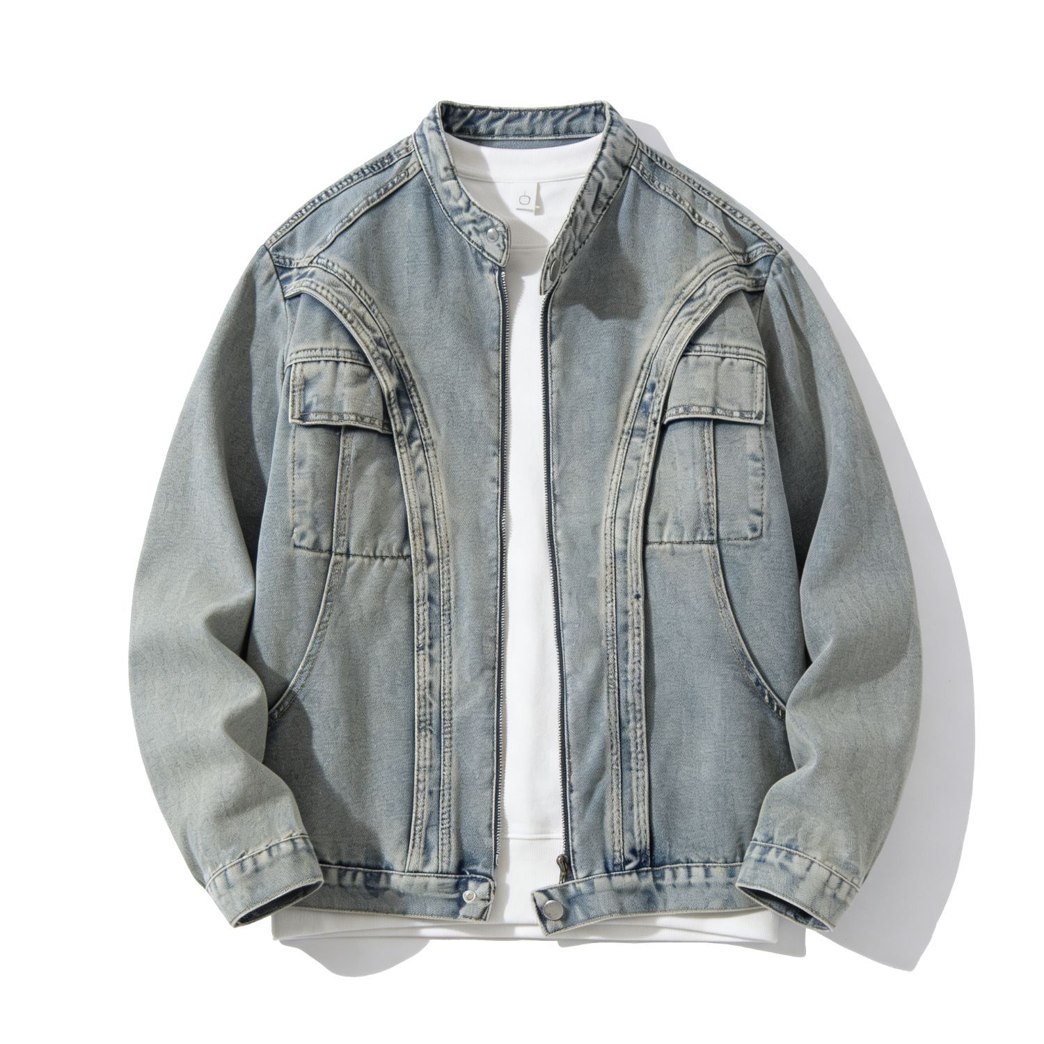 2024 새로운 미니멀리스트 프로필 틈새 하이 엔드 쇼트 데님 재킷 남자 복고풍 세탁 디자인 숄더 패드 재킷