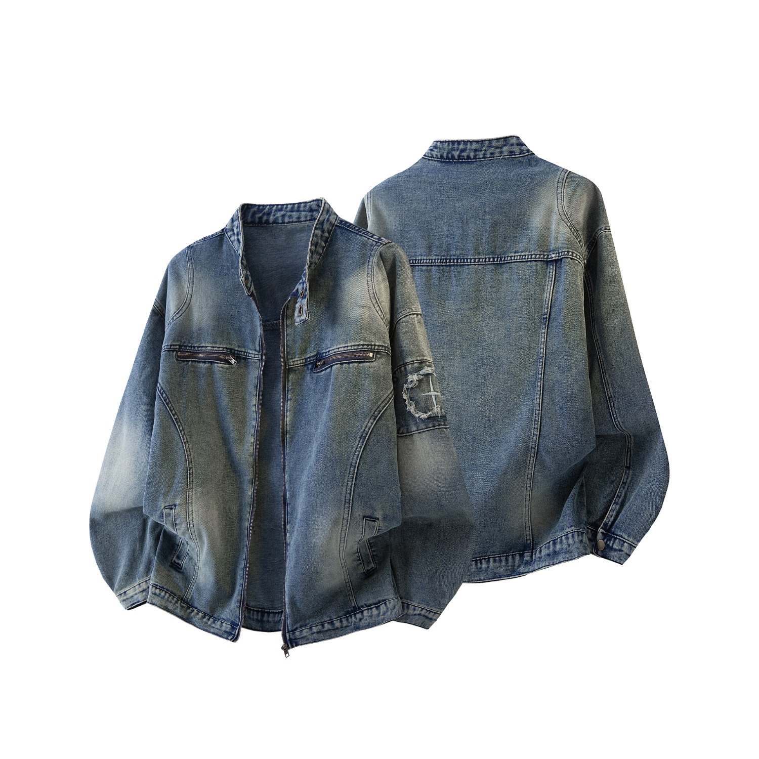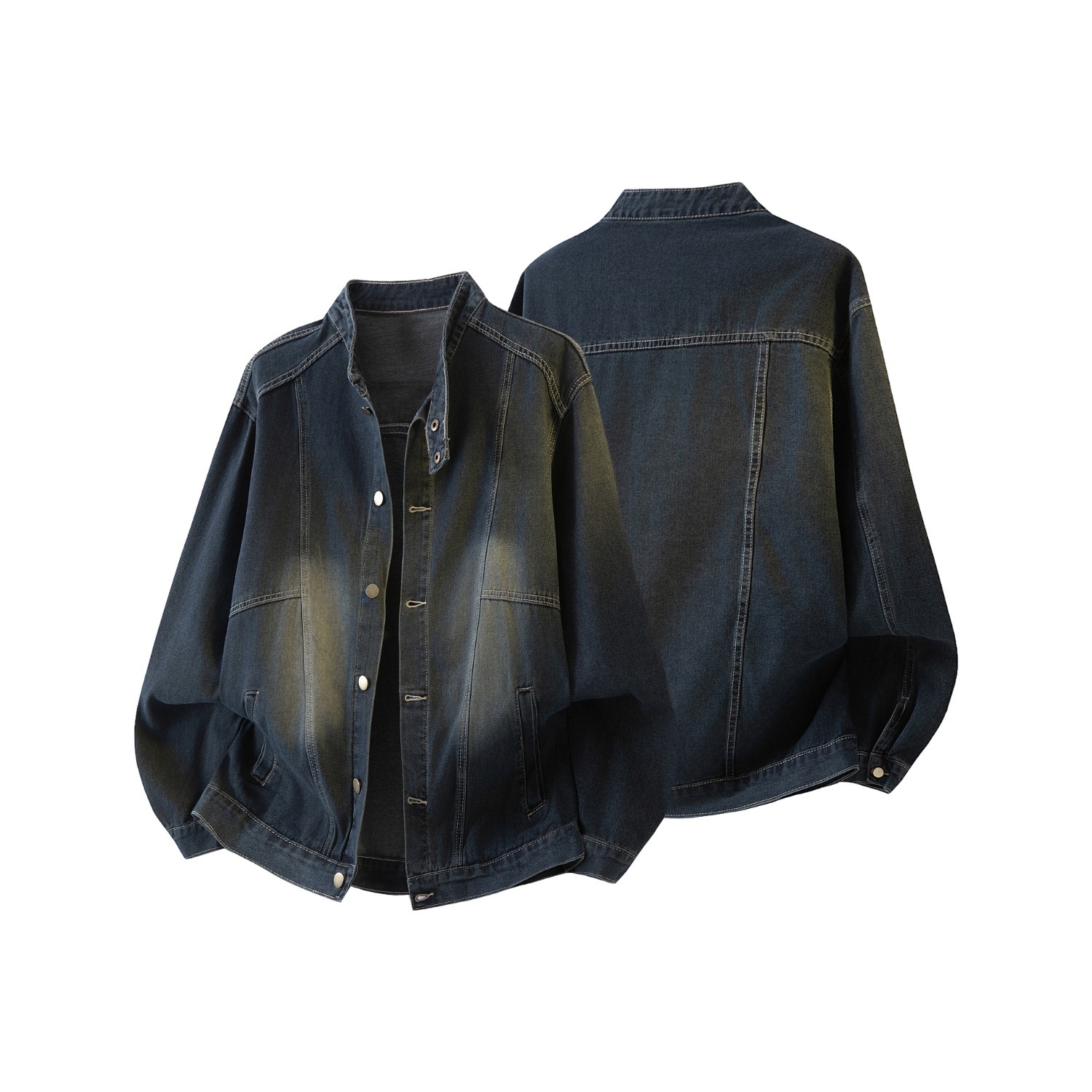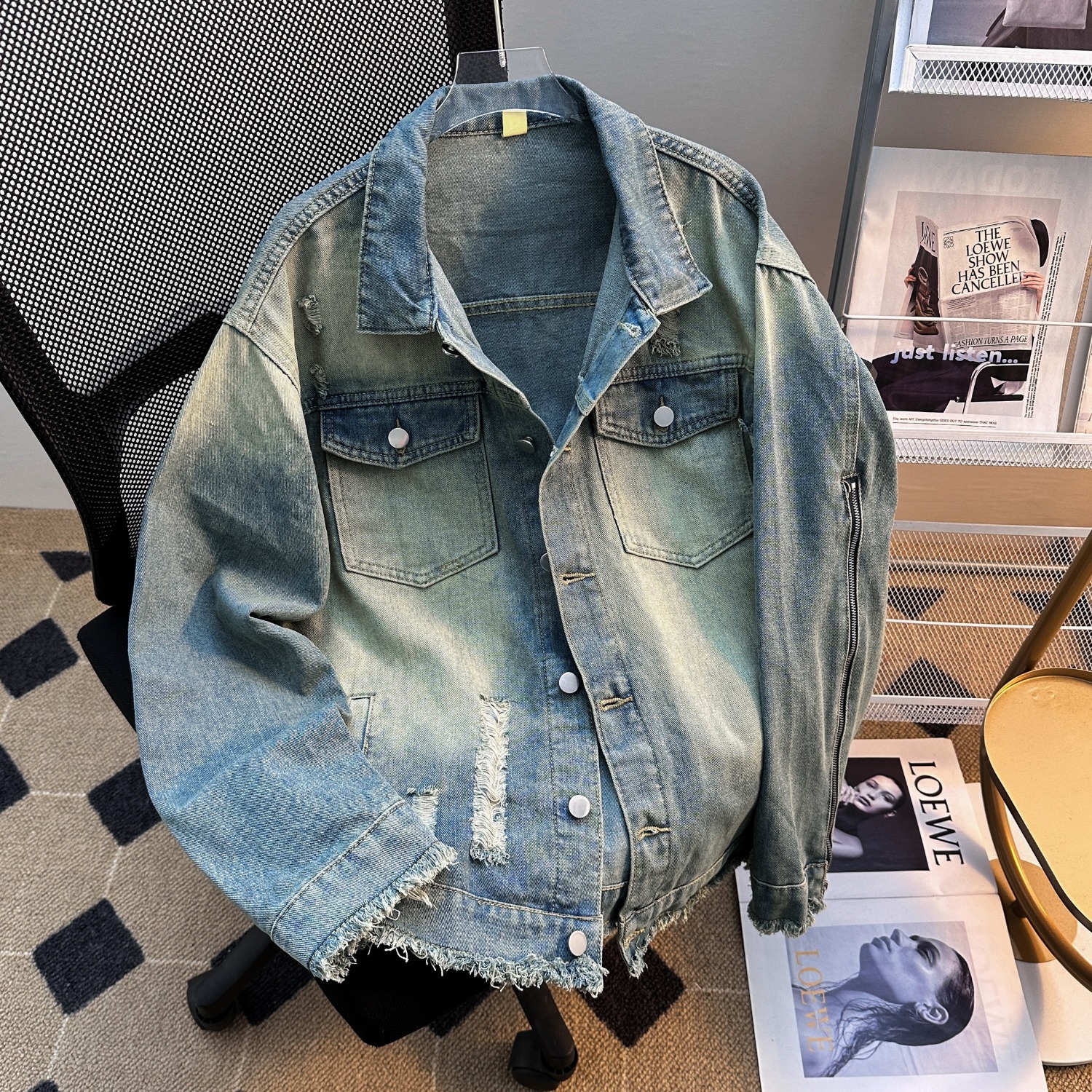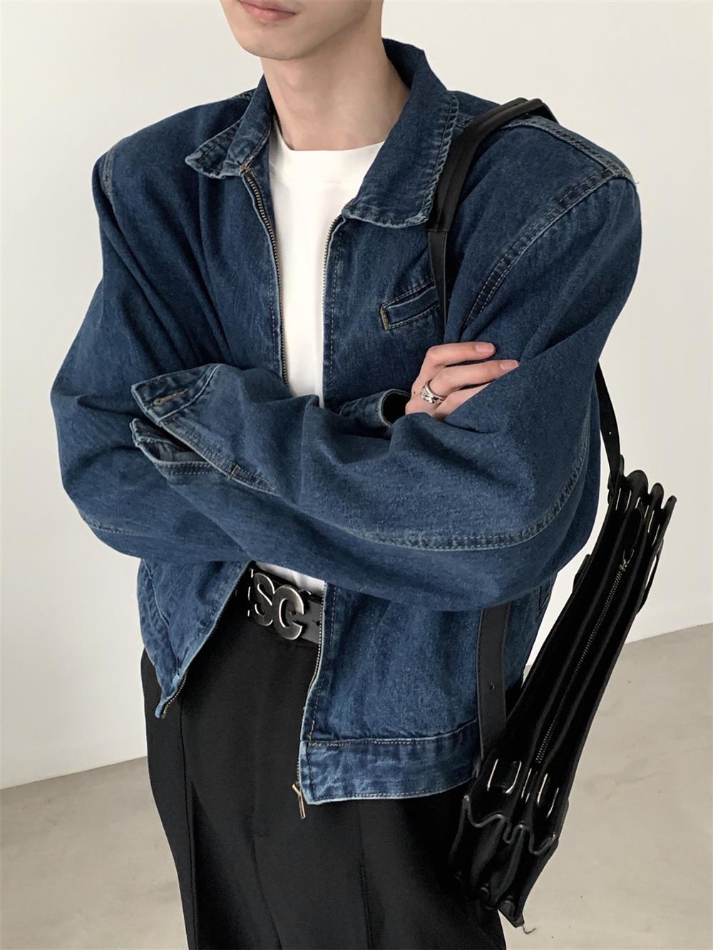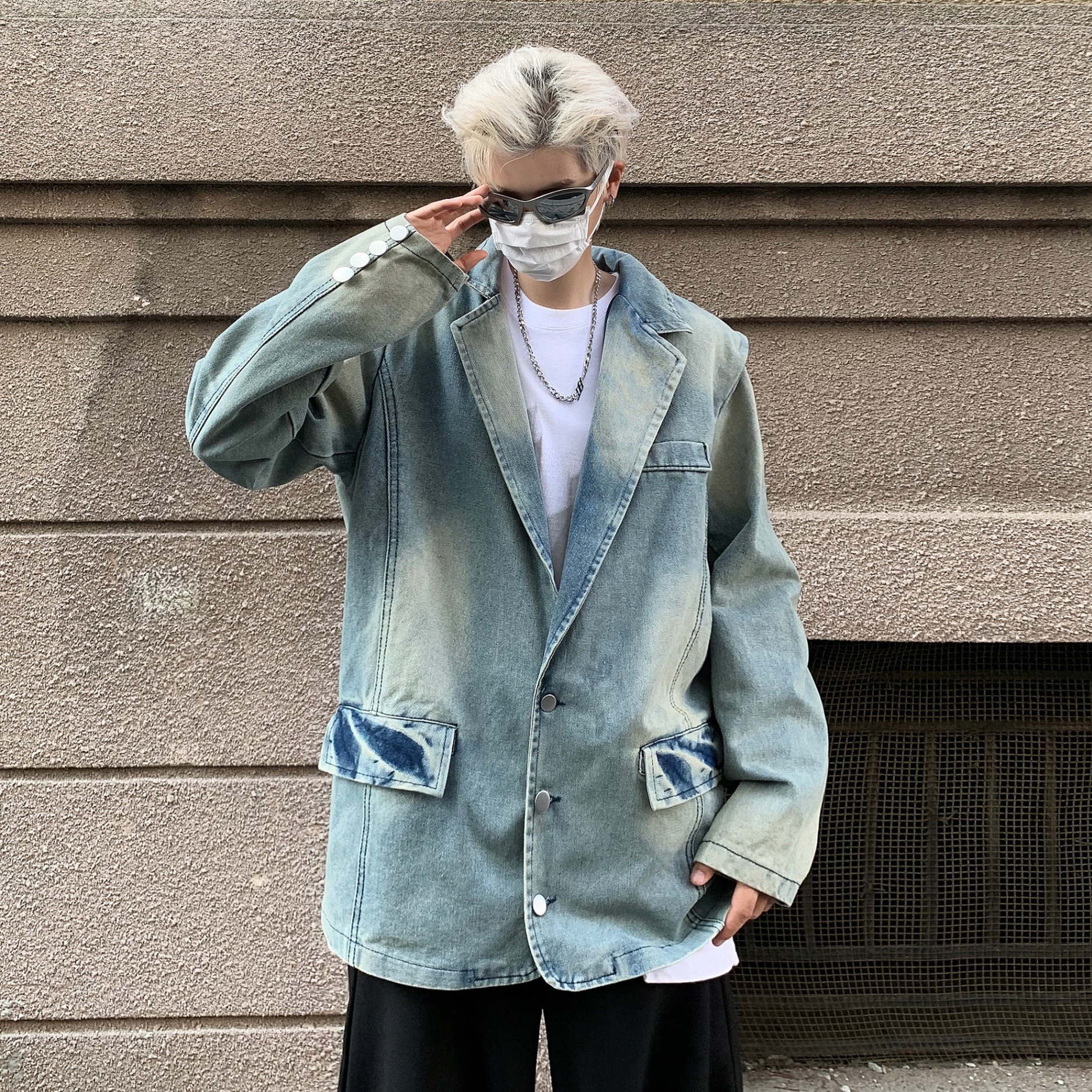 2024 새로운 미니멀리스트 프로필 틈새 하이 엔드 쇼트 데님 재킷 남자 복고풍 세탁 디자인 숄더 패드 재킷