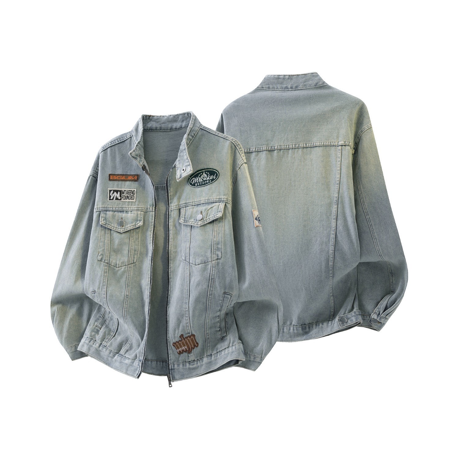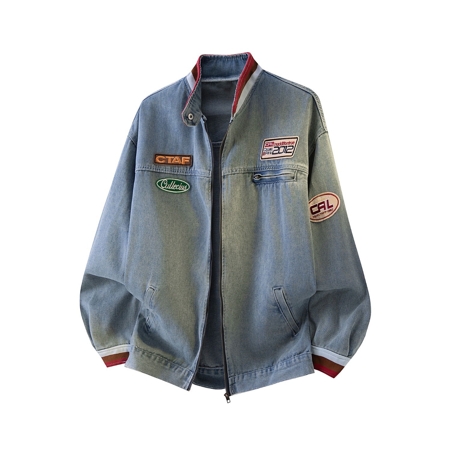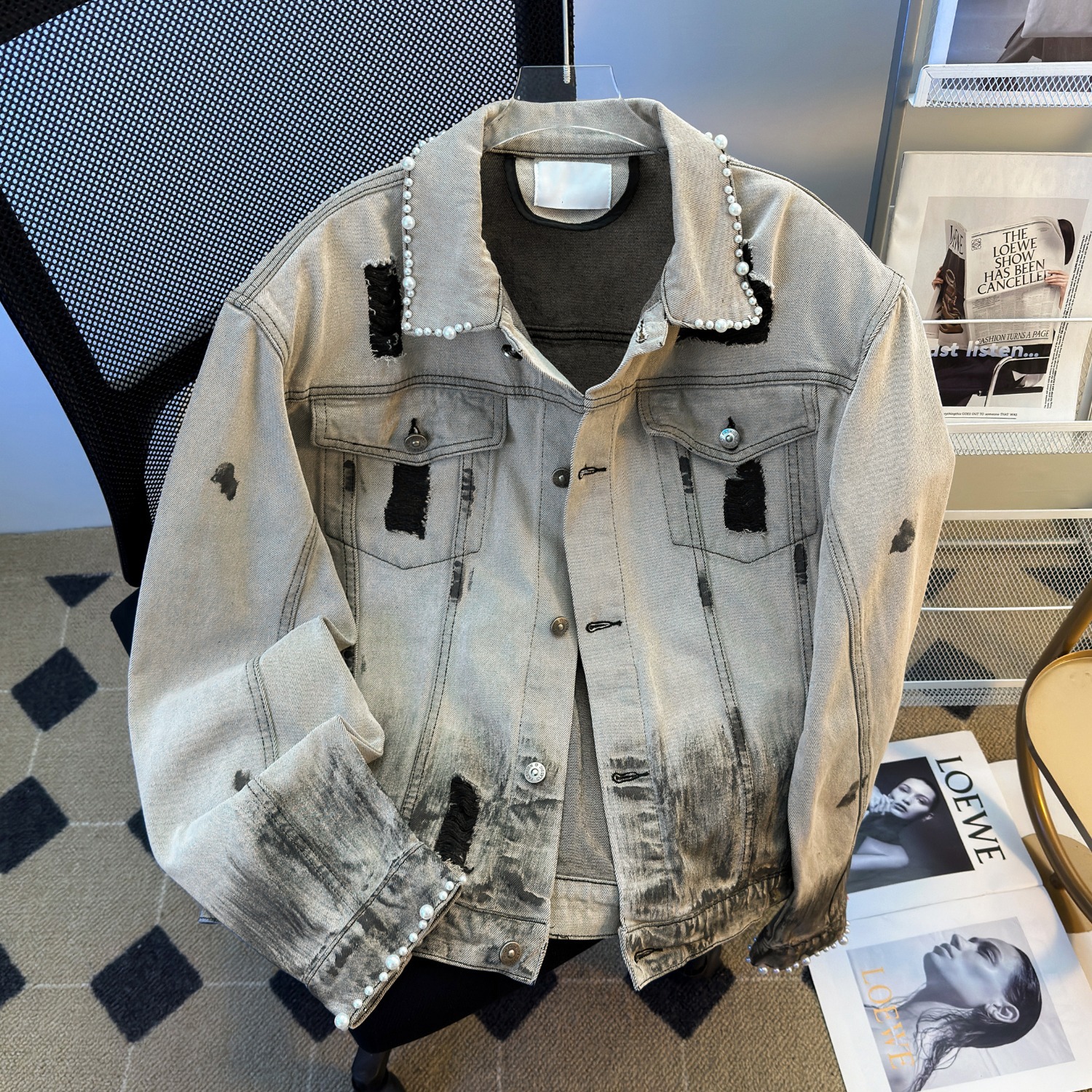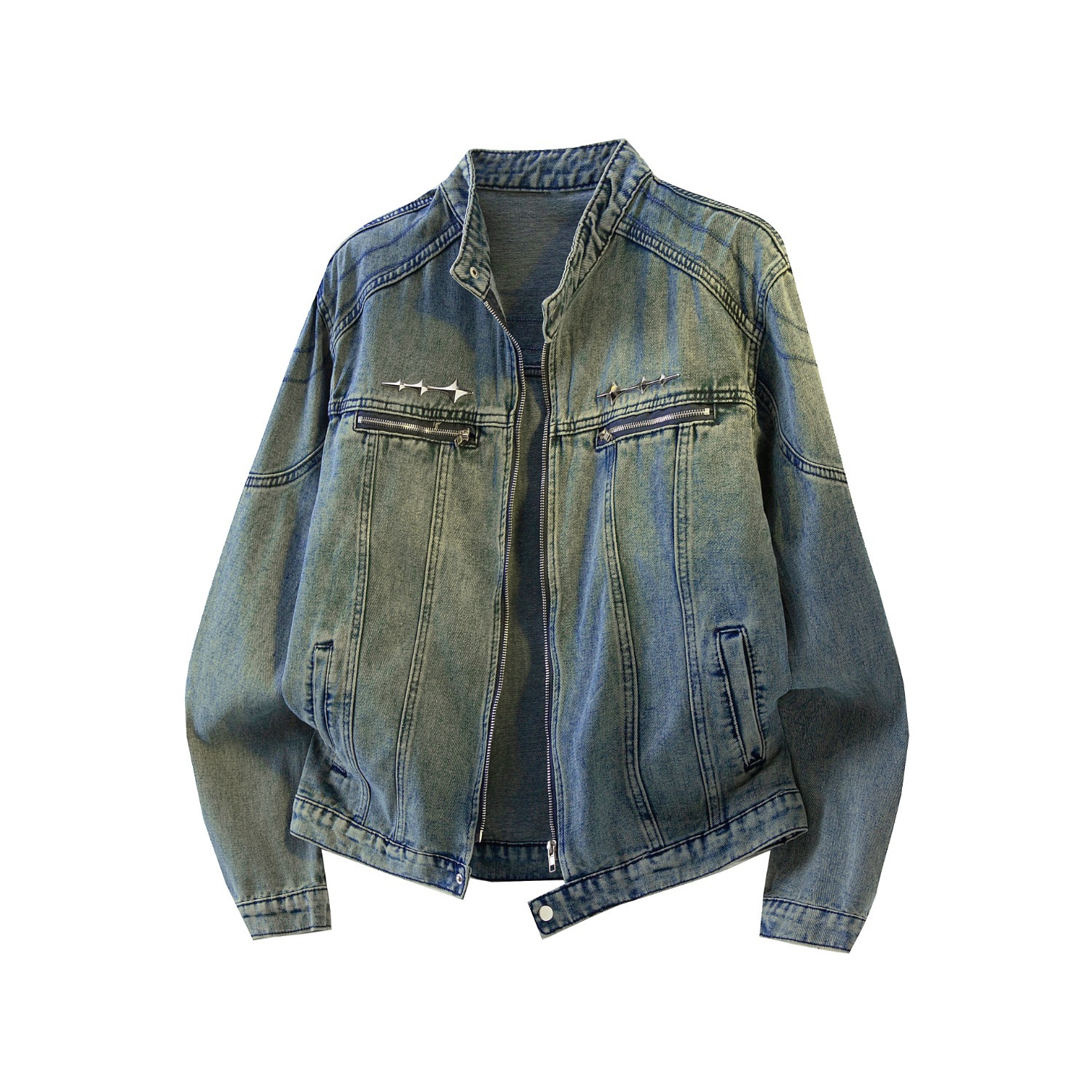 2024 새로운 미니멀리스트 프로필 틈새 하이 엔드 쇼트 데님 재킷 남자 복고풍 세탁 디자인 숄더 패드 재킷